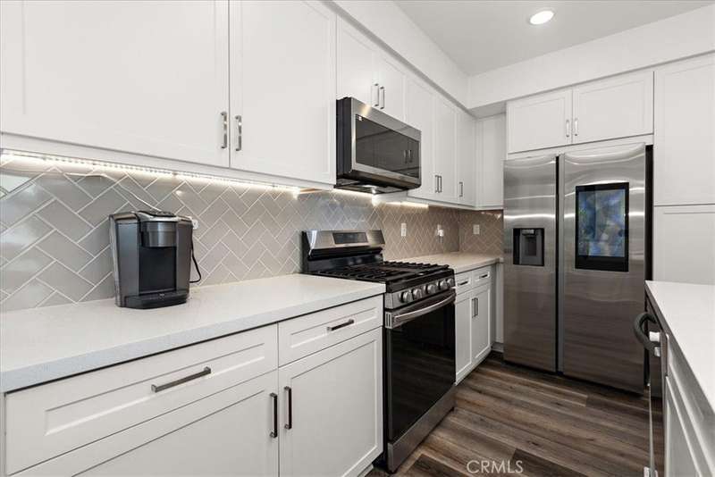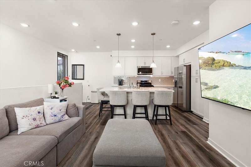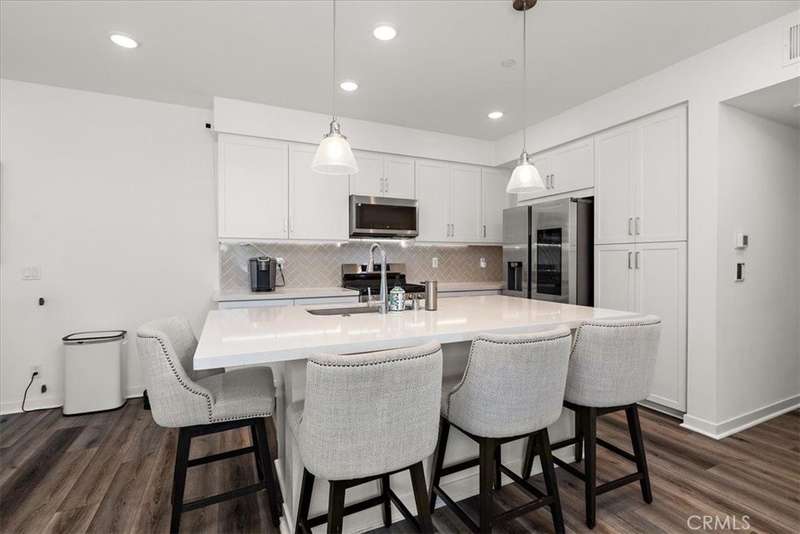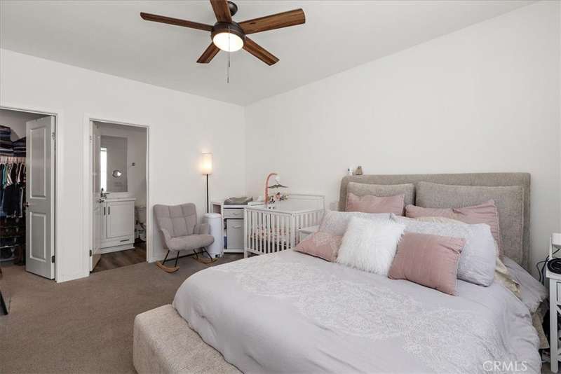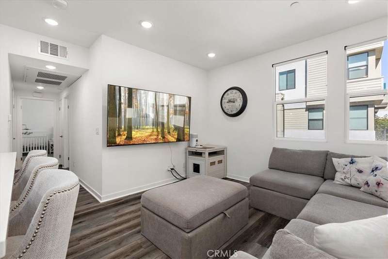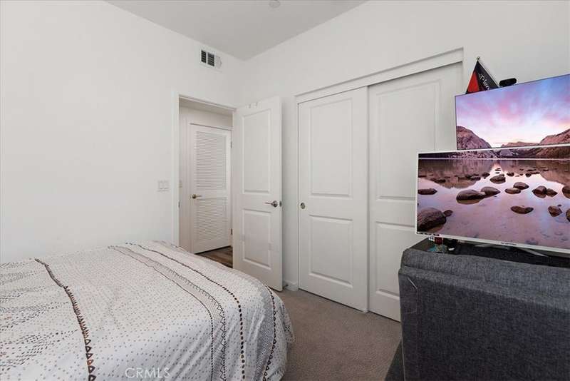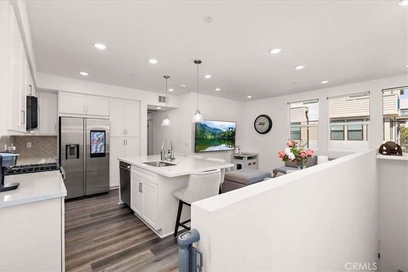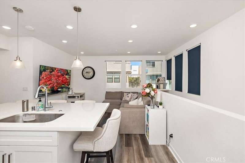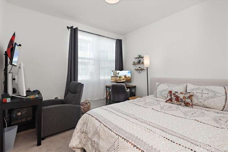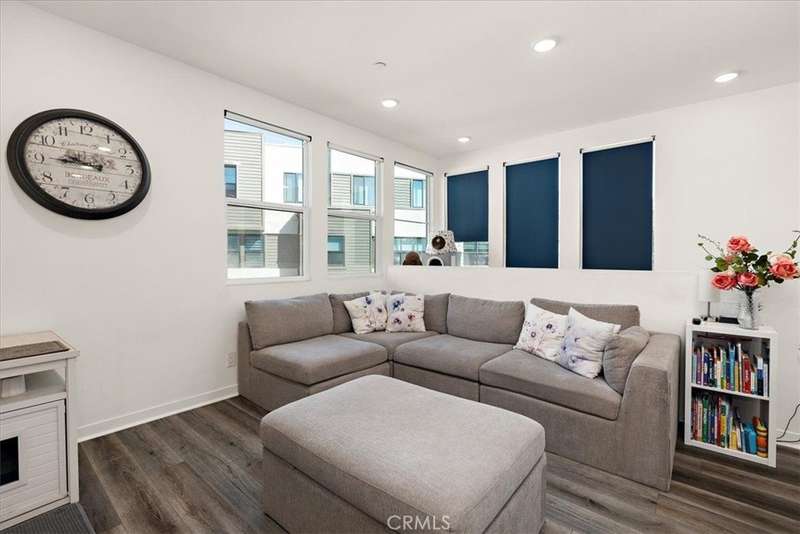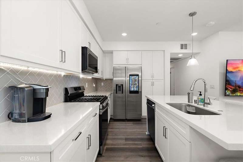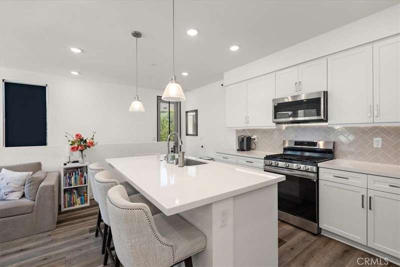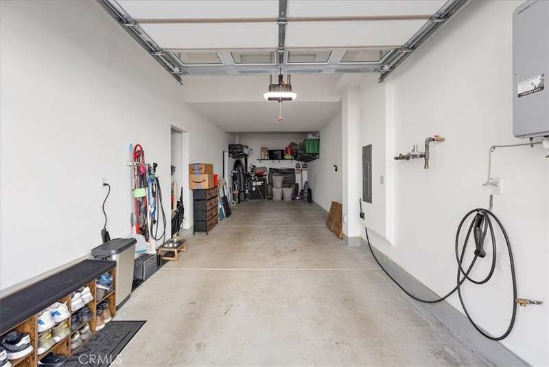 Experience modern living at its finest in this impeccable 2022-built townhome, perfectly situated in The Resort of Rancho Cucamonga. This 1,002 sq ft corner unit is designed for a stylish and convenient lifestyle. Step inside from your spacious tandem garage, featuring two extra storage areas and with standard and high speed EV charging. Upstairs, the main living area is an entertainer's dream. The dining and living area is open and spacious enough for you to land and enjoy quality time with loved ones without feeling crowded. A large island with wrap-around counter space seamlessly connects the kitchen and living room. The kitchen boasts nearly new appliances, ample storage, and a pantry, making it truly move-in ready. From your cozy, north east-facing balcony, enjoy fresh morning air with stunning sunrise views over the San Bernardino Mountains. The primary suite offers a true sanctuary, complete with a generous walk-in closet and a private ensuite bathroom. The second bedroom is perfect for a guest room or home office, conveniently located next to the common bathroom and laundry closet. Live the resort lifestyle with exclusive access to top-tier amenities, all just a short walk away. From pools, a spa, and a gym to a yoga studio and a vibrant community center, everything you need to thrive is right outside your door.