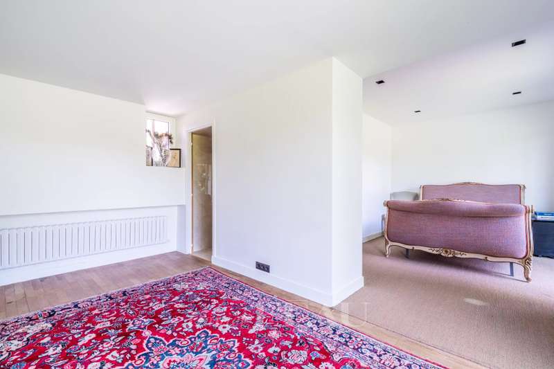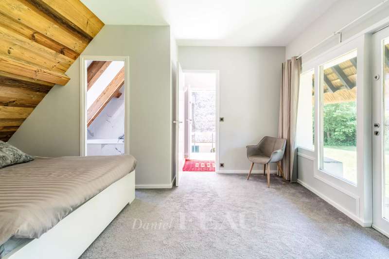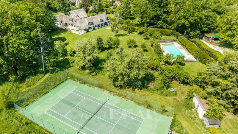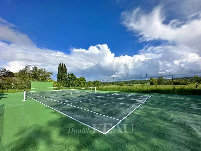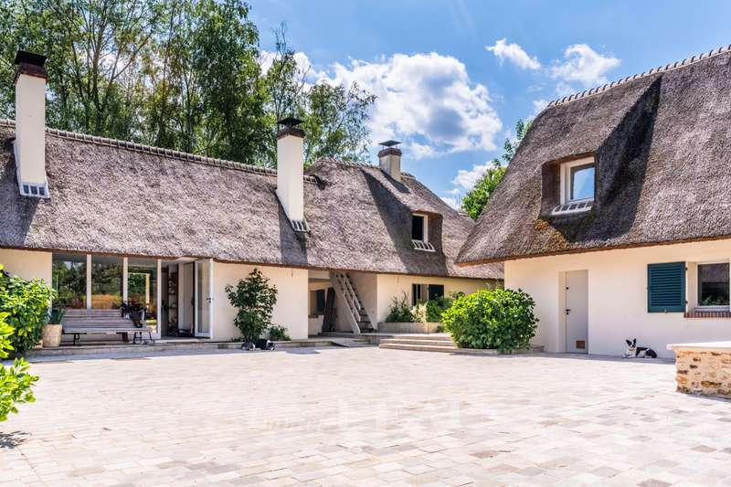 This magnificent property in a peaceful environment next to Montfort l'Amaury was renovated in 2022. Comprising a 350 sqm main house, an 80 sqm guest house, a studio apartment and a caretaker's lodge, it is set in about 8000 sqm of leafy grounds with an orchard, a swimming pool and a renovated tennis court. It would be possible to acquire a further 1,5 hectares of meadows. The main house includes a living/reception room and dining room witha fireplace, a spacious kitchen, two suites, two bedrooms, and a bathroom. The guest house comprises a living room with an open-plan kitchen, two bedrooms and a bathroom. Under 10 minutes from the station, and near the schools, a golf course and equestrian facilities.
