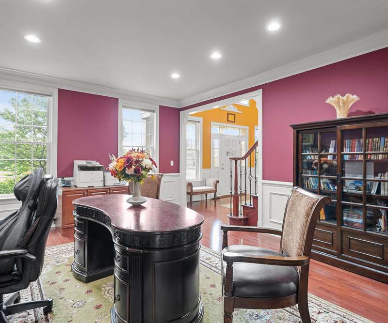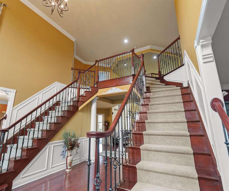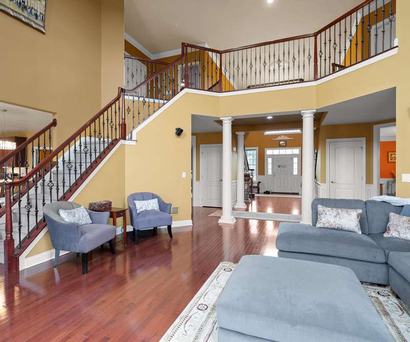 Experience one of Steeplechase’s crown jewels a masterpiece of timeless elegance and modern luxury. This extraordinary 5-bedroom, 5-bathroom estate sits proudly on one of the community’s largest lots, commanding attention with its striking brick-and-stone façade, lush professional landscaping, and undeniable curb appeal. Step through custom double doors into a dramatic two-story foyer with a sweeping staircase adorned with iron spindles, setting the stage for grandeur. The main level is thoughtfully designed with rich hardwood floors, a formal dining room with tray ceiling, and a versatile study with French doors perfect for a home office or private guest suite. The great room is a showstopper, featuring soaring ceilings, sun-soaked windows, and a floor-to-ceiling stone fireplace. Entertain in style with a chef’s kitchen boasting custom cabinetry, granite countertops, a gas cooktop with a custom hood, stainless steel appliances, and a generous island. Additional highlights include a formal living room, bright library, and an expansive conservatory that’s ideal for hosting gatherings. Practical luxury abounds with 10-foot ceilings, a spacious mudroom, and a well-appointed laundry room. Upstairs, a bridge hallway overlooks the great room and leads to a serene owner’s suite complete with a private sitting area, spa-inspired bath with soaking tub, dual granite vanities, and a massive walk-in closet. Each additional bedroom features its own private bath and sitting area for ultimate comfort and privacy. The 3,300 sq. ft. walkout lower level with 9-foot ceilings offers endless possibilities for customization. Outside, enjoy tranquil views from the Trex deck while taking in the beauty of the meticulously landscaped backyard. This is more than a home it’s a rare opportunity to own one of Steeplechase’s finest estates, where timeless architecture meets modern sophistication in one of the area’s most coveted communities.