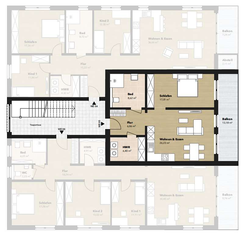 We are delighted to present this new-build project to you: An exclusive residential complex on a quiet plot with a view of Bultkamp Park. A total of 4 houses with high-quality condominiums are being built here. This project offers different apartment sizes with well thought-out floor plans and varying numbers of rooms. DESCRIPTION CONDOMINIUM | HOUSE 4 | APARTMENT 5 | UPPER FLOOR This apartment is located in House 4 on the upper floor and has a bedroom, a spacious bathroom with walk-in shower and an open-plan kitchen with dining room and lounge area. On the adjoining balcony you can enjoy the hours of sunshine with family or friends and enjoy the peace and quiet of this high-quality residential area. A highly efficient air heat pump and a solar thermal system are planned to ensure a sustainable heat supply and resource-saving living. All apartments are heated via underfloor heating. The exact features of this project can be found in the construction and service description. We will be happy to send you these documents on request. Have we aroused your interest? We would be happy to provide you with detailed information about this property and its prospects in a personal meeting.