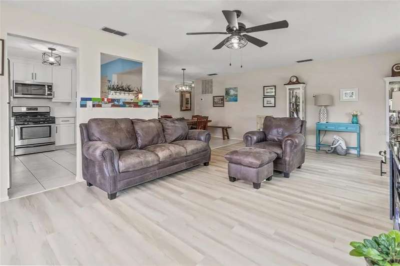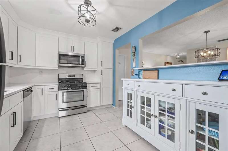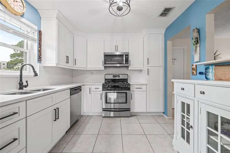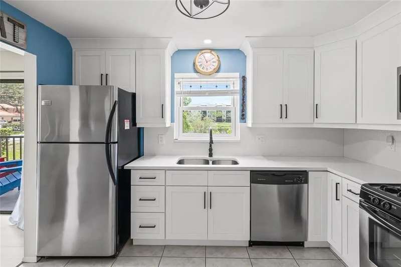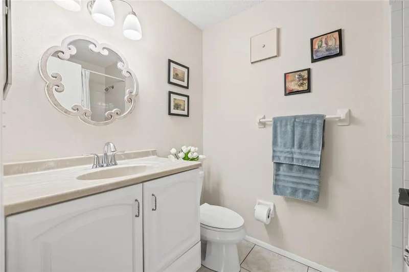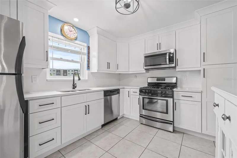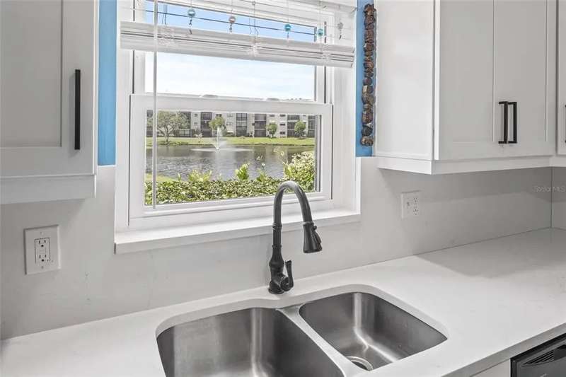 Move-In Ready Water View Condo in the sought-after 55+ community of Five Towns. Discover carefree living in this beautifully updated first-floor END/CORNER UNIT with tranquil water views, located in the desirable, pet-friendly Princeton building of Five Towns. This spacious 2-bedroom, 2-bathroom condo spans 1,360 square feet and is designed for comfort, style, and minimal upkeep. Natural light pours through hurricane-impact windows (2020), highlighting the neutral color palette and tasteful new light fixtures throughout. AC unit (2022) with blue light filter, oversized in-unit laundry room with full-sized washer and dryer add modern convenience. Renovated kitchen is a true standout, featuring updated cabinetry with pantry pull-outs, soft-close drawers, quartz countertops, stainless steel appliances, and a coveted gas range—ideal for any home chef. Just off the kitchen, enjoy a bright laundry room with pond views and ample storage. The living room, located next to the kitchen, has plenty of seating for guests- Enjoy watching movies on the 76 inch TV which conveys! From the living room, step outside to your screened porch and take in peaceful pond views while sipping your morning tea. The primary bedroom offers generous space for a king-sized bed, plus a walk-in closet and an updated en-suite bath with an easy step-in shower. A second spacious bedroom is located adjacent to the guest bath which features a full size tub. Additional highlights include: BRAND NEW ROOF (2025), designated parking spot, guest parking and a completed milestone report. Princeton is also fully funded. Indulge in the Five Towns extensive amenities: 6 swimming pools, fitness center, tennis courts, pickleball, walking trails, bocce ball, billiards, and various clubs and educational groups. Located just minutes from the Gulf beaches and under 30 minutes from two international airports, this home offers comfort, convenience, and community. Best of all, no damage or flooding from Hurricane Helene and Milton. Schedule your private showing today!