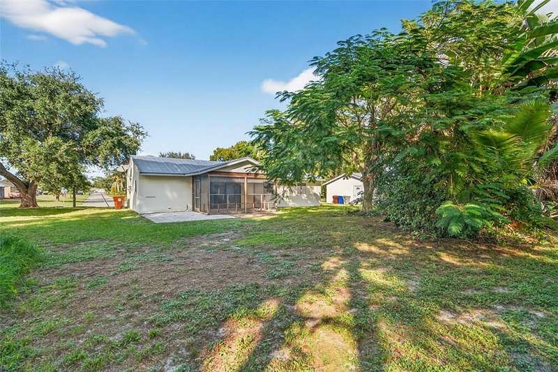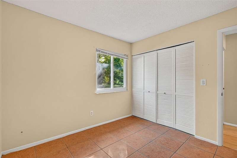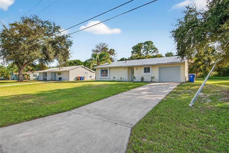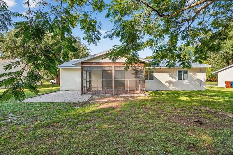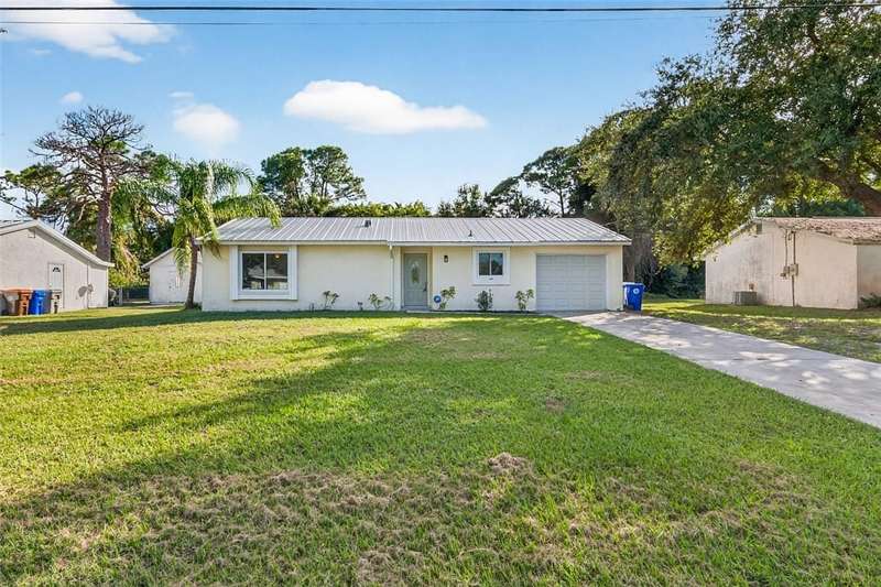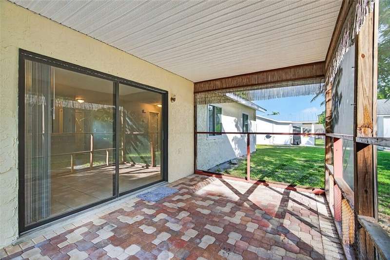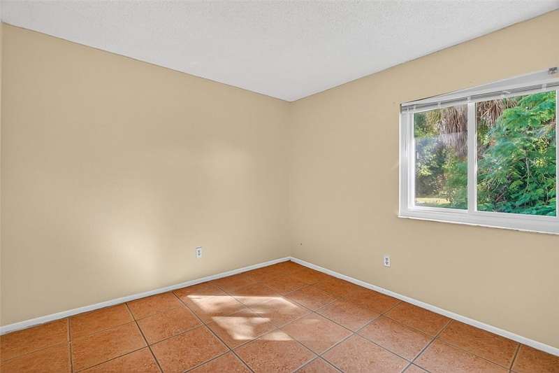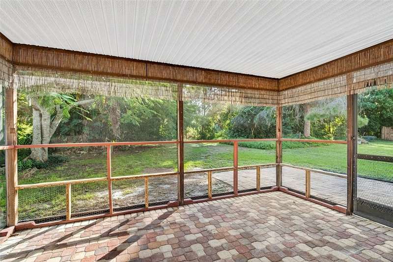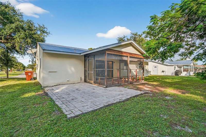Adorable 2-bedroom, 2-bathroom home in the Highlands. Updated kitchen cabinets with white appliances. Primary bedroom with ensuite bathroom. Guest bathroom has an updated vanity. Laundry is located in the 1-car garage. Hurricane-ready with impact glass and a metal roof. Oversized screened porch with pavers, open patio, and spacious backyard. Room sizes are approximate and subject to error.