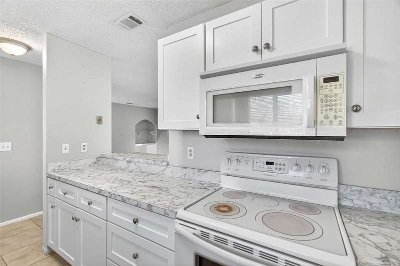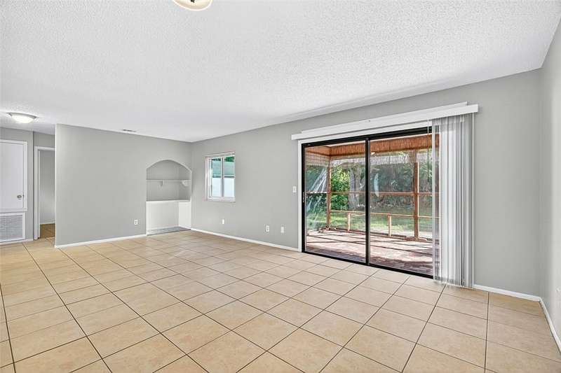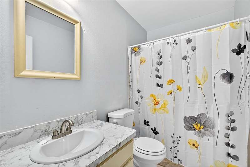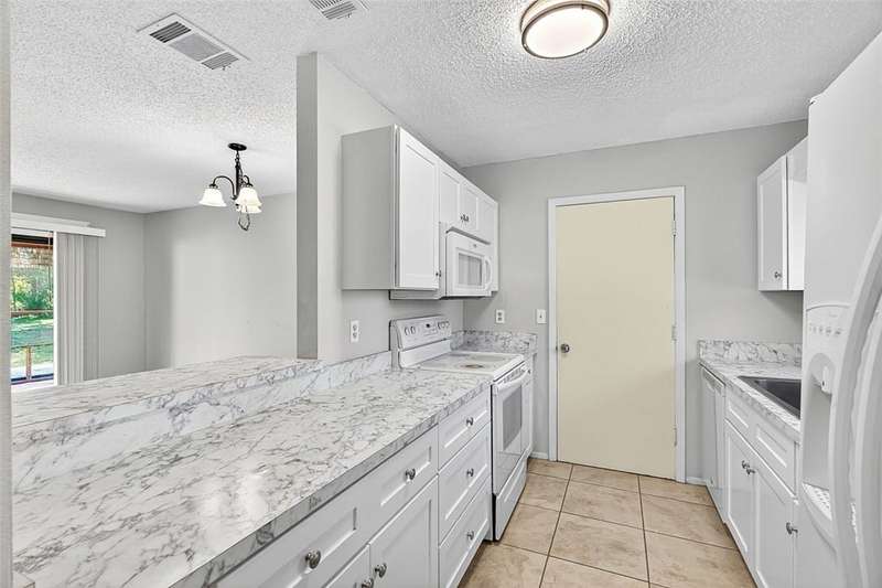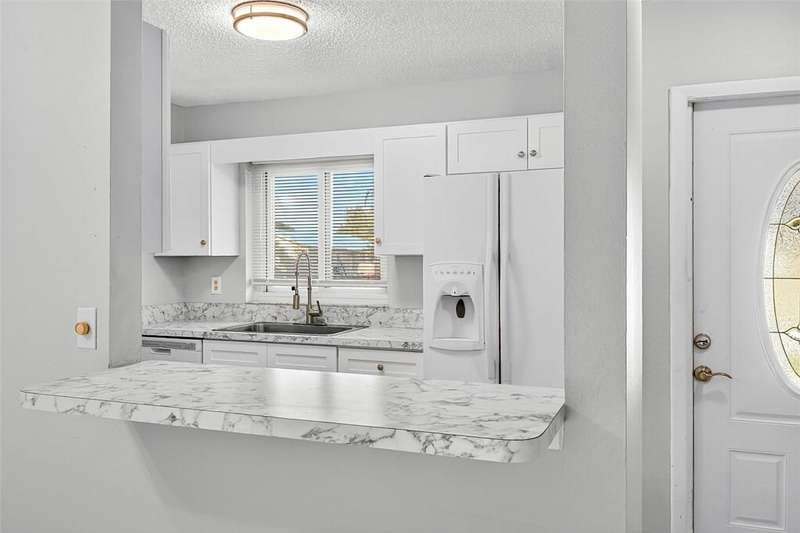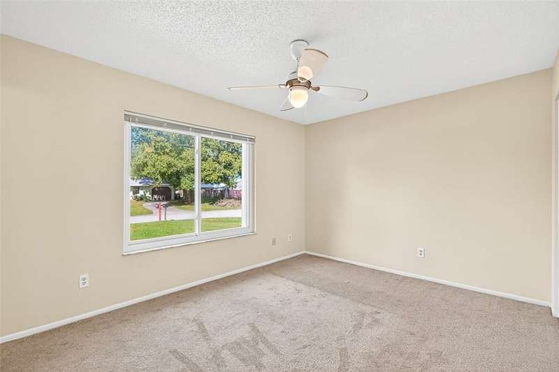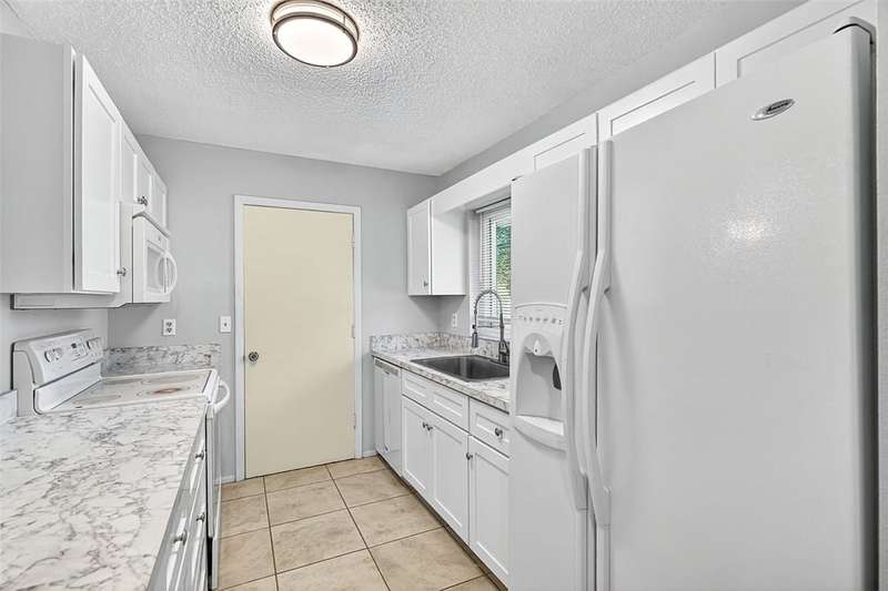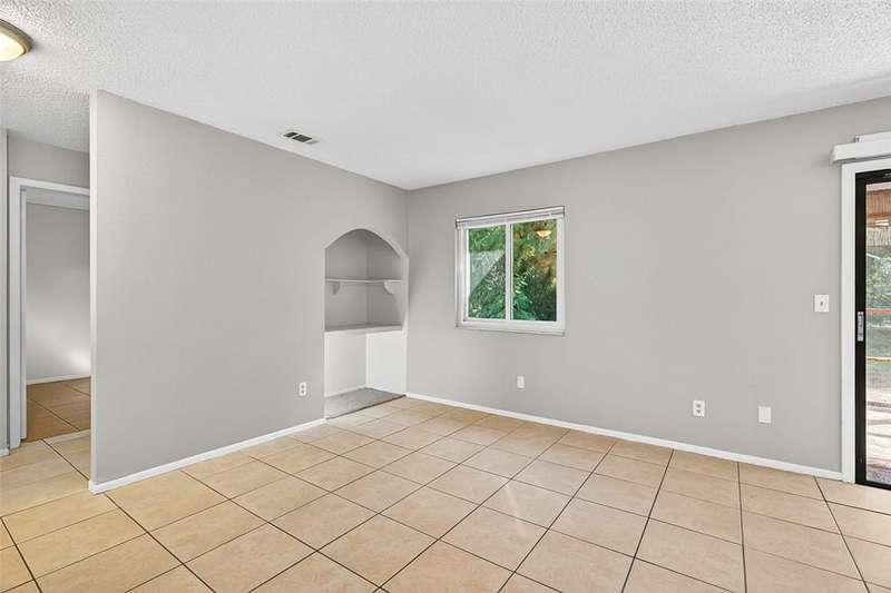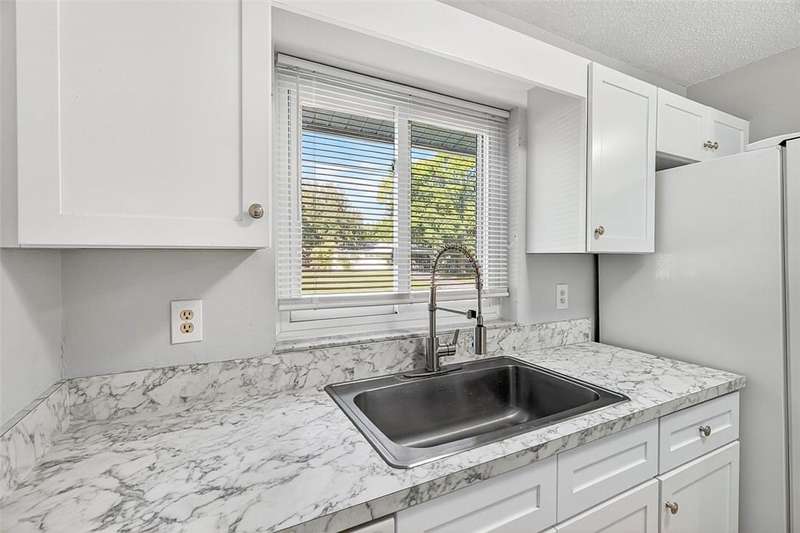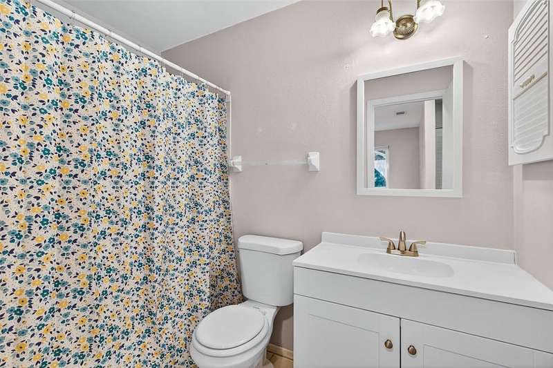 Adorable 2-bedroom, 2-bathroom home in the Highlands. Updated kitchen cabinets with white appliances. Primary bedroom with ensuite bathroom. Guest bathroom has an updated vanity. Laundry is located in the 1-car garage. Hurricane-ready with impact glass and a metal roof. Oversized screened porch with pavers, open patio, and spacious backyard. Room sizes are approximate and subject to error.