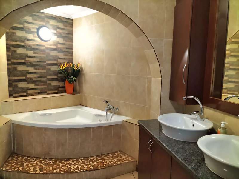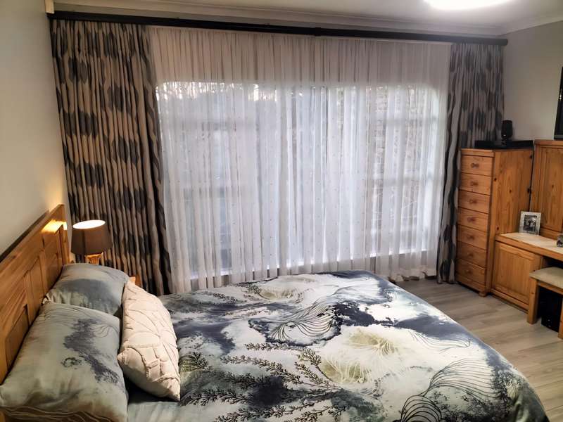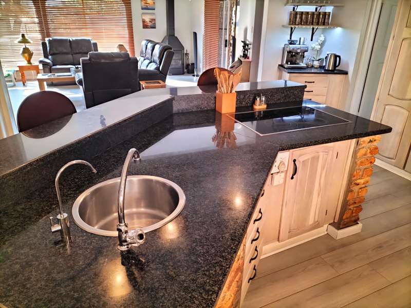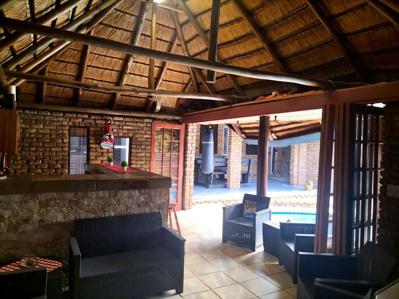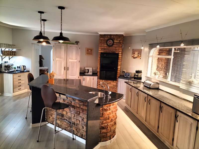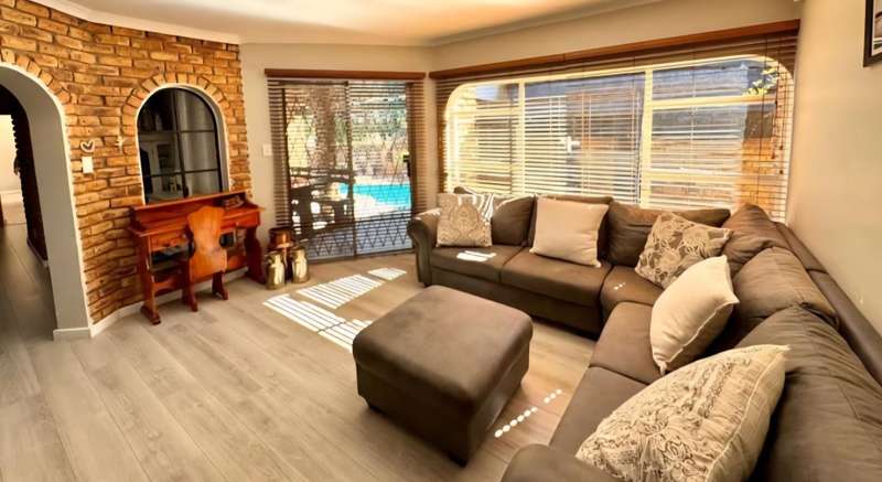 Luxurious 4-Bedroom Home with Pool and Patio Welcome to your dream home! This stunning 4-bedroom residence offers a luxurious and comfortable lifestyle, nestled in a peaceful green area with a lovely view. Key Features - 4 spacious bedrooms with built-in cupboards - 3 modern bathrooms, including an en-suite and separate guest toilet - 2 lounges, dining room, and study/home office - Modern open-plan kitchen with center-style island and water filtration system - Separate scullery and pantry - Laminated floors and sophisticated decor Outdoor Living - Sparkling saltwater pool with solar heating - Inviting patio and tile-covered thatch Lapa with built-in braai and bar area - Abundant security beams and outside lights Security and Convenience - Complete solar system with 3 Dyness batteries and 3 Growatt inverters - Borehole for independent water source and cost savings - Fully automated irrigation system - Double garages and extra carports for secure parking Perfect Location - Adjacent to picturesque green area with stunning views - Conveniently located close to top schools and amenities Schedule a Viewing Don't miss out on this incredible opportunity! Contact us today to schedule a viewing and experience the luxury of this?ástunning?áhome.