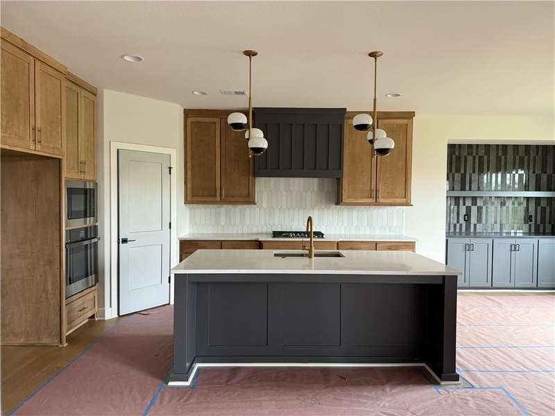 The Riviera Prairie by SAB Homes sits beautifully on Lot 71 in Bristol Highlands Manors, offering a walkout homesite that backs to green space for added privacy and peaceful views. With an estimated completion of December 2025, this Reverse 1.5 story home with 4 bedrooms, 3.5 baths, and over 3,000 square feet will ready to enjoy the holidays! Balancing thoughtful design with modern comfort, the main level includes a spacious primary suite, a second bedroom and full bath, and laundry room just off the 3-car garage. In the heart of the home, the kitchen impresses with a quartz island, stainless steel appliances, 5-burner gas cooktop, and stylish finishes. The Great Room opens to a covered deck—ideal for relaxing or entertaining with a view. Downstairs, the walkout lower level includes a large family room with a wet bar, two additional bedrooms, a full bath, half bath for guests, and generous storage. Designer touches throughout include black hardware, shaker-style doors, Moen fixtures, Benjamin Moore paint, and hardwood flooring. Bristol Highlands is nestled in the rolling hills of West Shawnee, just minutes from Shawnee Mission Park, Lake Lenexa, trails, golf, shopping, and dining—with easy highway access and located in the award-winning De Soto School District (hello Mill Valley!). Future amenities will include a resort-style pool and clubhouse, sport courts, and playground. Homes like this don't last long!