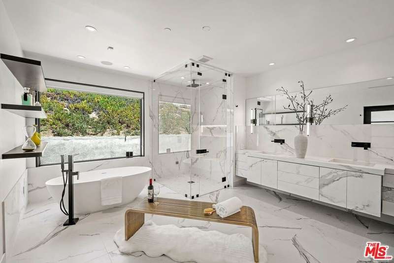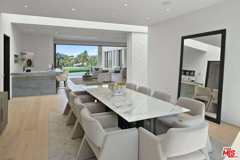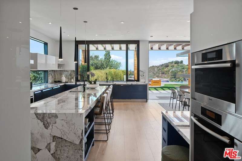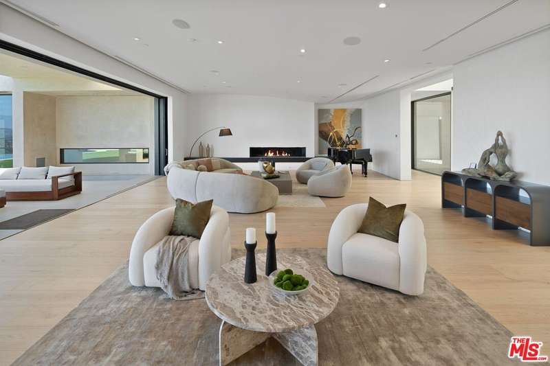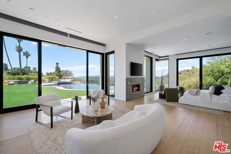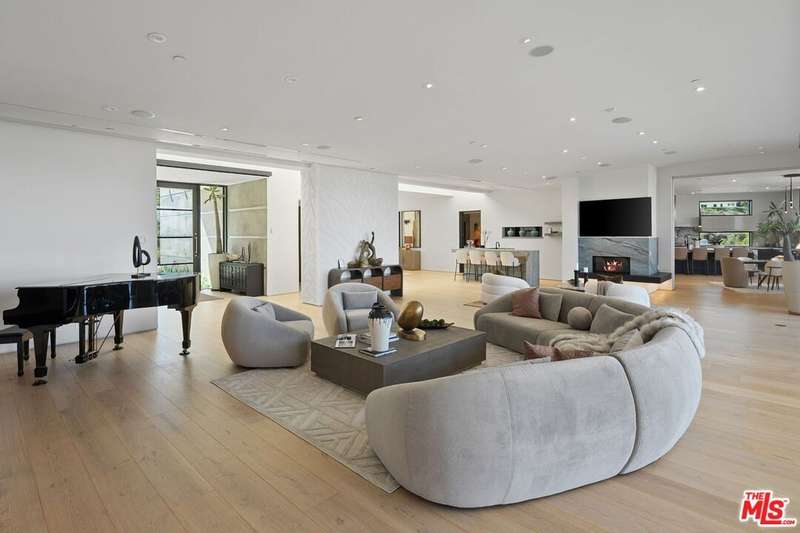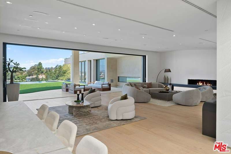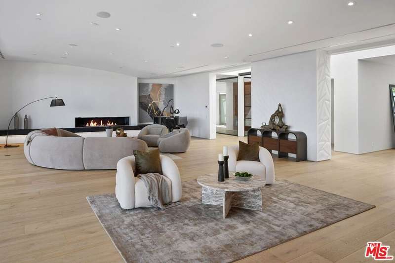 The Castle | A Signature Estate in Trousdale Estates. A rare offering within one of Beverly Hills' most prestigious enclaves, The Castle is a newly renovated masterpiece that artfully combines timeless design with modern sophistication. Nestled on a quiet cul-de-sac, this expansive 8,600-square-foot residence delivers extraordinary scale, absolute privacy, and uncompromising luxury. Originally built in 2008 and recently reimagined with the finest finishes, the home welcomes you with soaring ceilings, a dramatic skylight, and walls of floor-to-ceiling glass that dissolve the boundary between indoors and out. Inside, white oak hardwood floors, custom stone walls, and multiple fireplaces create an atmosphere of warm refinement. The chef's kitchen, outfitted with state-of-the-art appliances and a generous island, is designed to accommodate both intimate daily living and grand-scale entertaining. A skylit corridor leads to the expansive primary suite featuring a private sitting area, designer closets, a spa-inspired bath, and direct access to the pool and gardens.No detail has been overlooked in this residence, which includes a private home theatre, wellness center with sauna and steam shower, massage room, climate-controlled wine cellar, sophisticated bar, executive office, and well-appointed staff quarters.Set on over 20,000 square feet, the grounds are crafted for true resort-style living, boasting a newly completed stone hardscape, lush landscaping, an infinity pool, multiple fire features, and expansive outdoor lounge and dining areas. Sweeping canyon, city, and peek-a-boo ocean views provide a breathtaking backdrop from nearly every vantage point, with stunning sunsets that bathe the surroundings in a warm, golden glow, offering an unparalleled lifestyle of tranquility, elegance, and natural beauty. Located just minutes from world-renowned dining destinations such as Spago, The Polo Lounge, and Matsuhisa, residents enjoy effortless access to Beverly Hills' vibrant culinary scene. Combined with close proximity to Rodeo Drive's luxury shopping and cultural landmarks, The Castle offers not only a stunning home but a lifestyle defined by sophistication and exclusivity. This turnkey statement residence in Trousdale epitomizes unmatched quality, scale, and exclusivity, an opportunity for the most discerning buyer.