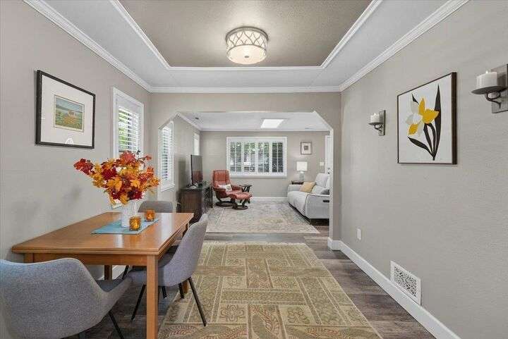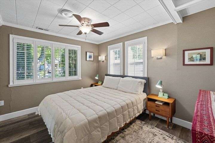 Charming 2 bed/2 bath home on a desirable corner lot with a 1-car garage plus shop area, offering both comfort and functionality. Recent upgrades include a brand-new roof with transferable warranty, newer A/C unit, and fresh paint throughout. Inside, you’ll find thoughtfully designed California Closets for smart storage and organization. The single-level layout makes for easy living, while the backyard feels like a garden oasis—perfect for relaxing or entertaining. Nestled in a convenient location near coffee shops, the post office, bank, grocery store, dry cleaner, library, and local eateries, this home blends charm, modern updates, and everyday convenience. A rare combination of charm and modern updates, ready for you to move right in.
