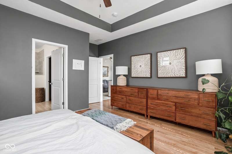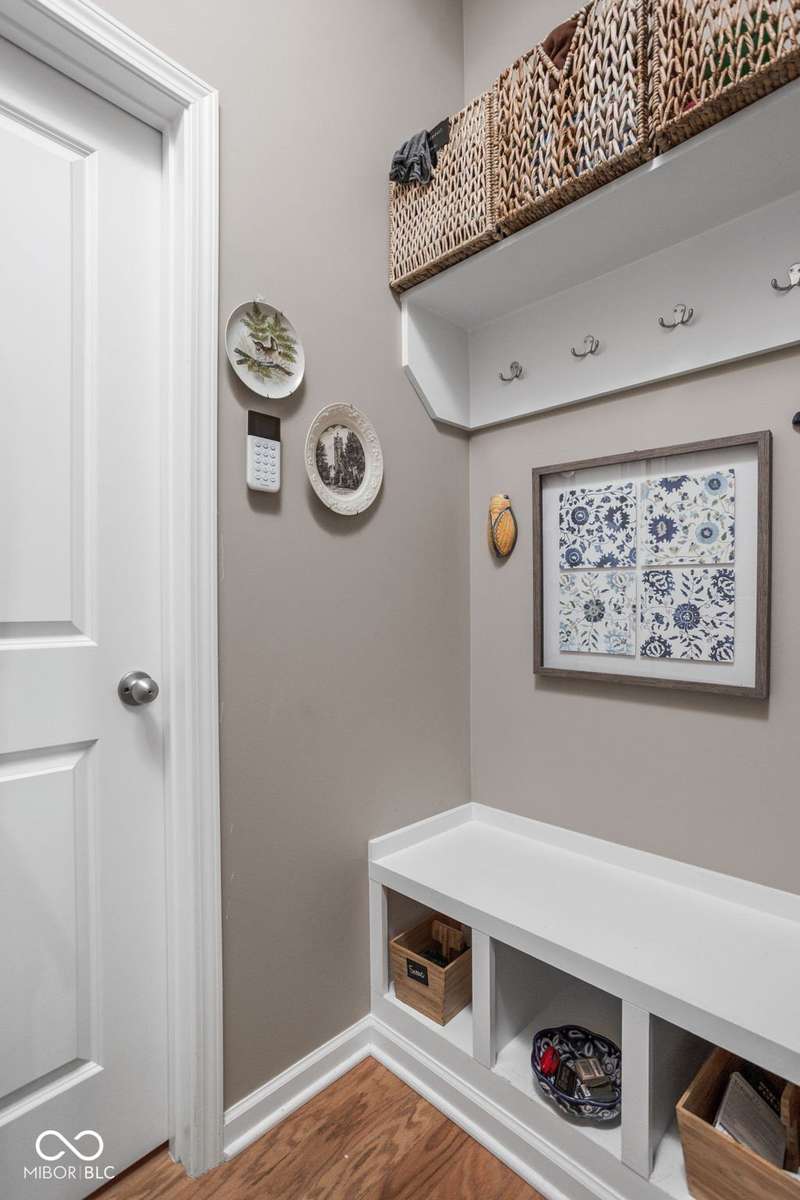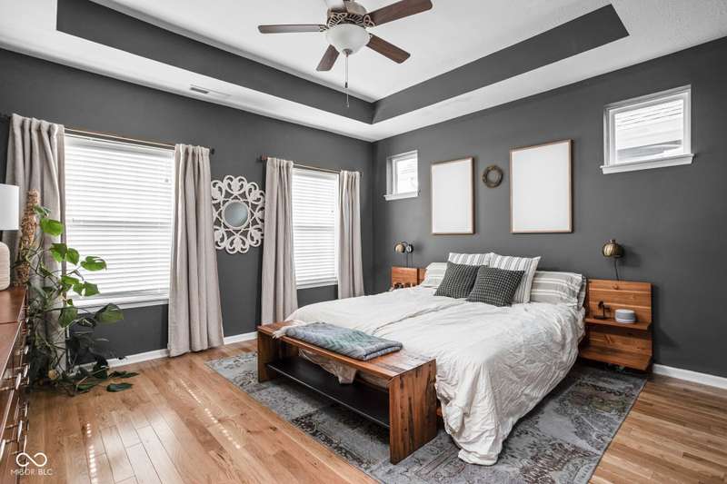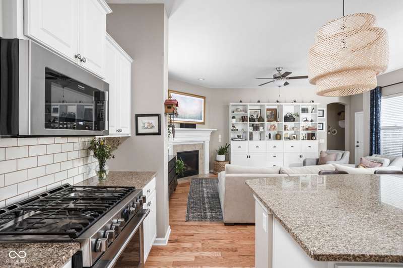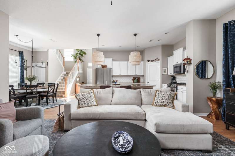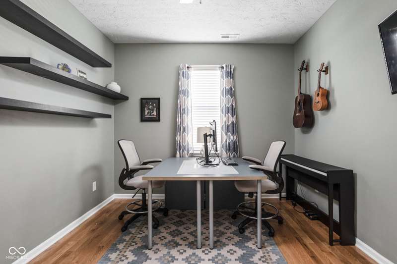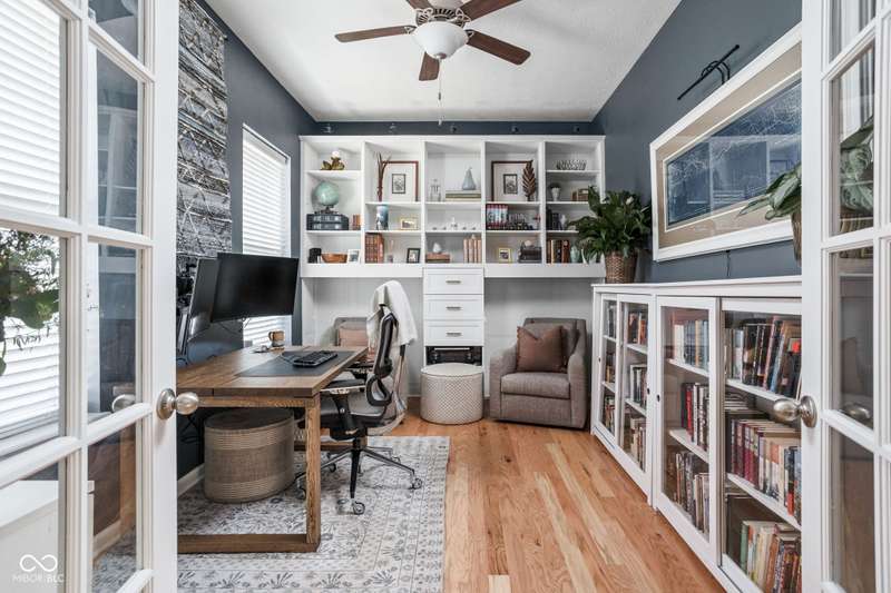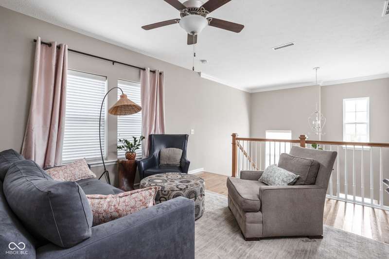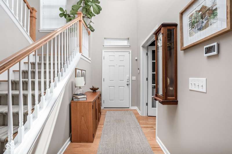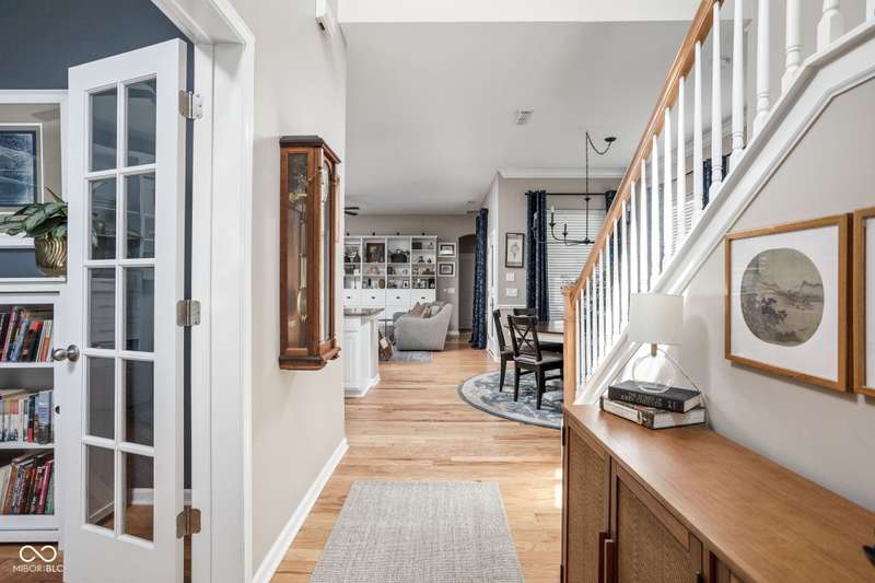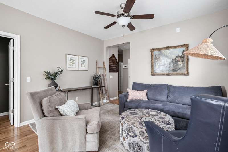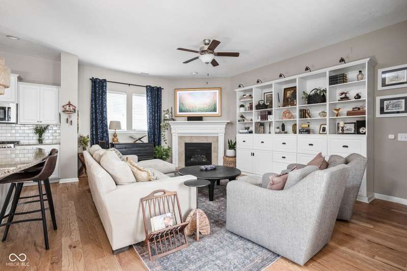 Charming 3 bed, 2.5 bath home nestled in the vibrant heart of Fort Ben. Step inside to find beautiful hardwood floors throughout. A chef's kitchen with newer appliances and plenty of counter/cabinet space. Open living area with high ceilings and built-ins create a comfortable and inviting environment. Gas fireplace, screened in patio and 1/2 bath on main level. Functional office or flex space on first floor with new built-in shelving. At the top of the stairway you will find a versatile loft space-perfect for work or relaxation. Spacious primary suite with a large walk-in closet, tile floors in bath and ample natural light. Additional full bath and laundry upstairs add to the functionality of the home. Complete with an oversized 2-car garage and fresh landscaping. Within walking distance to Fort Harrison State Park, The Fort Golf Course (Pete Dye designed), YMCA, Jockamo's Pizza and so much more. Incredible opportunity to own this meticulously maintained home with a modern aesthetic and quality throughout. Schedule your showing today!