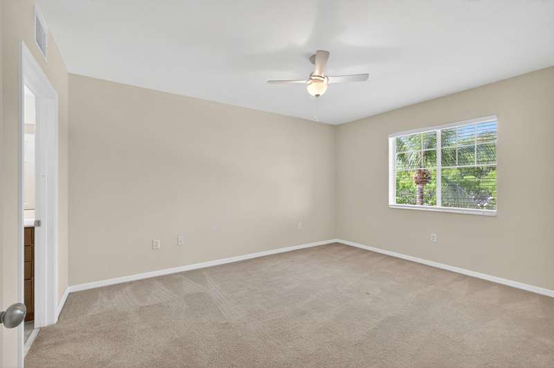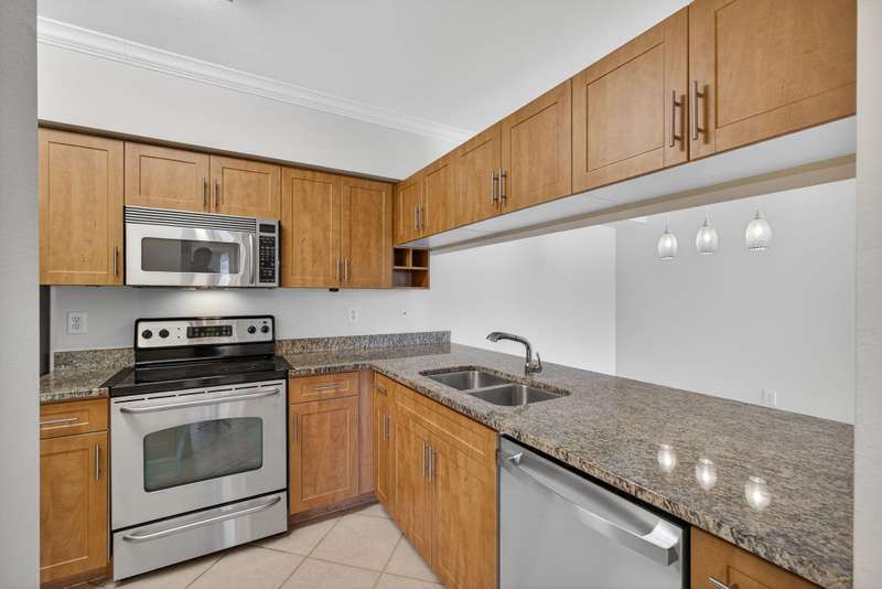 Immaculate unit available at the Villas at Emerald Dunes. This 2/2 offers over 1,000 sq ft living in a split floor plan. The kitchen includes stainless-steel appliances & upgraded countertops. Dedicated laundry room off the kitchen with full-size W/D (brand-new dryer). High ceilings throughout, crown molding in the kitchen & living area. The primary en suite has a walk-in closet. A large balcony space overlooks the 2 assigned parking spots: 1 covered, 1 open, both convenient to the unit.Villas at Emerald Dunes offers a dizzying list of amenities: 2 clubhouses; 2 Olympic-sized pools with BBQ areas; 2 hot tubs; 2 gyms; yoga/aerobics room; lighted tennis court & putting green; party room with kitchen; library; conference room; business center; car wash area;