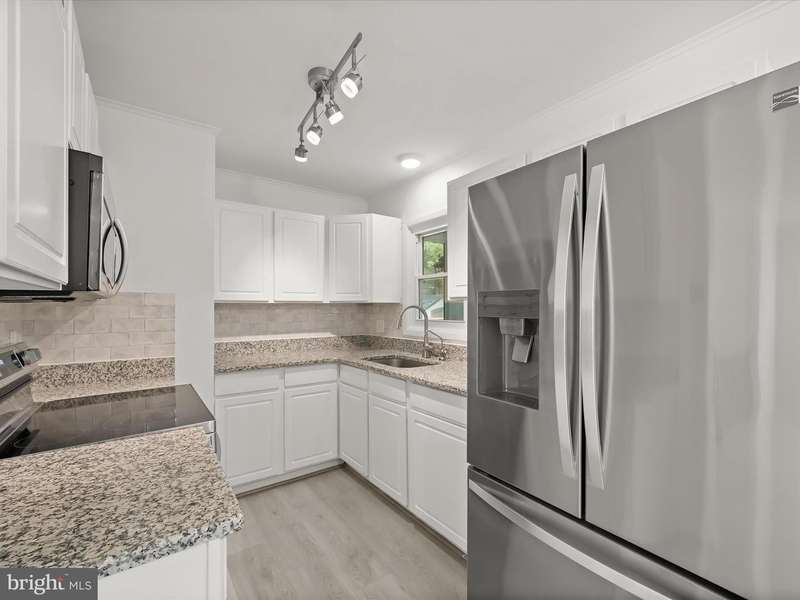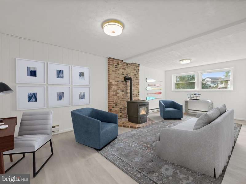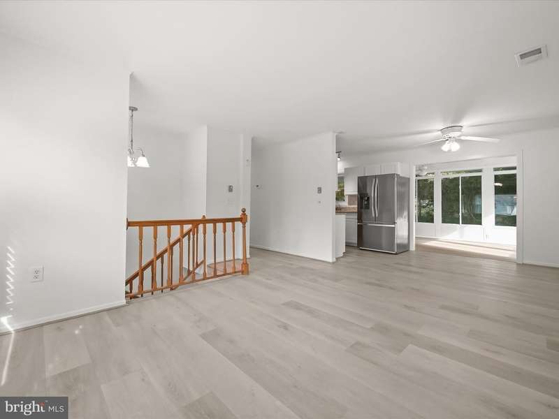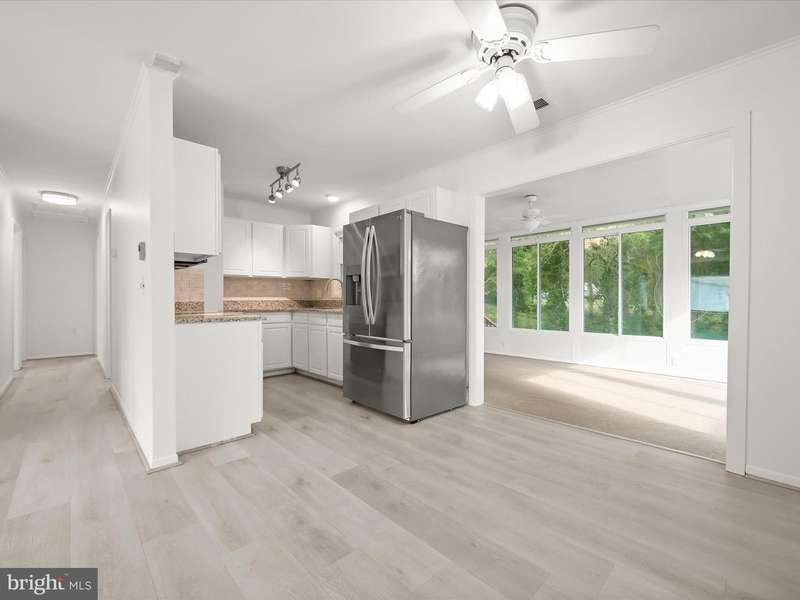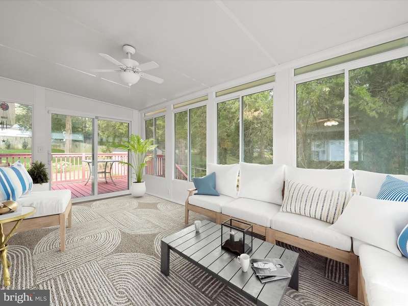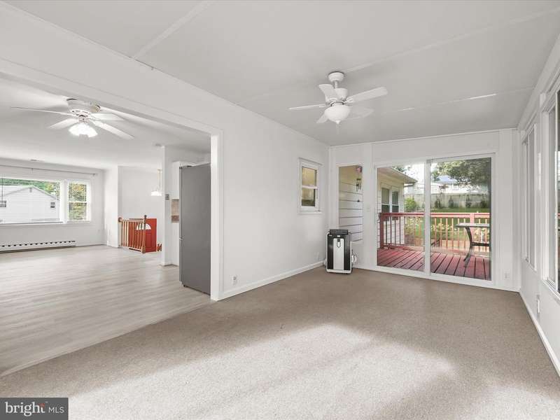 Tucked within the water-privileged Woodland Beach community, this beautifully updated home offers a lifestyle that blends coastal charm with modern comfort. Residents of Woodland Beach enjoy five private beaches, multiple playgrounds, boat ramps, picnic areas, and neighborhood marinas, while a nearby walking trail leads directly to some of Edgewater's favorite shops and restaurants. The home also rests within the sought-after South River High School district, adding to its appeal. Inside, the open floor plan serves as a versatile blank canvas, enhanced by neutral paint tones, wide-plank laminate flooring in a light finish, and abundant natural light that creates a breezy, coastal-inspired atmosphere. A large picture window illuminates the expansive living room, which seamlessly flows into a dining space just off the kitchen. The kitchen is both stylish and functional, showcasing crisp white cabinetry, granite countertops, stainless steel appliances, and a subway tile backsplash that bounces light across the space. An enclosed sunroom off the kitchen is a standout feature, offering walls of windows and a sliding glass door to the deck, making it an ideal spot for morning coffee or evening entertaining. Down the hall, three bedrooms provide comfortable retreats, including the primary, alongside an updated full bath with a large-format tiled tub and shower surround that evokes a boutique hotel feel. The vanity is accented with the same reflective tile backsplash found in the kitchen, creating a cohesive design throughout the home. The lower level expands the living space with a welcoming family room anchored by a central pellet stove, perfect for cooler days. A versatile recreation room, a laundry area, and another updated full bath with a stone-look tile surround add both comfort and convenience. A partially finished room with a walk-up to the backyard offers additional flexibility for storage, a workshop, or a hobby space. Outdoor living is equally inviting with a deck overlooking the fenced backyard, complemented by a serene koi pond. A new roof in 2024, new water softener in 2025, updated light fixtures and carpeting complete the home's thoughtful enhancements, ensuring it is move-in ready for its next chapter.