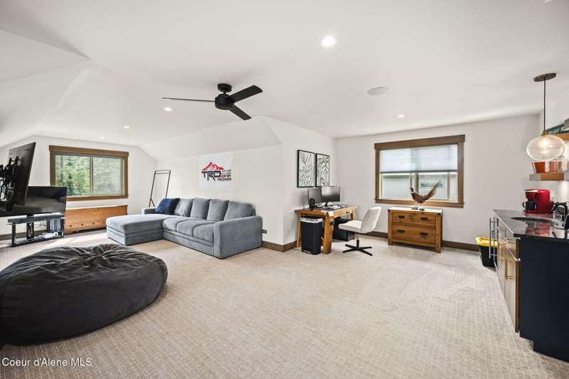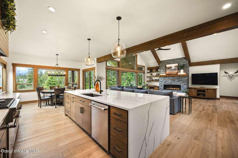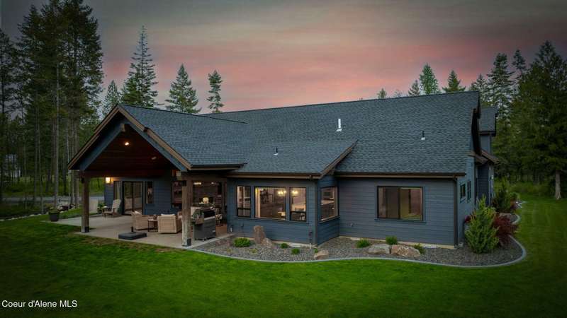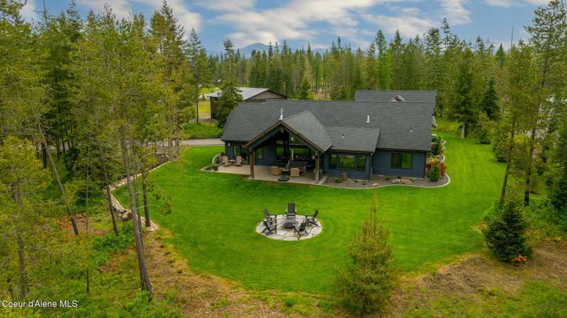 LUXURY 4 BED, 3.5 BATH, 3,290 SQ FT HOME ON 4.57 ACRES WITH STUNNING RATHDRUM MOUNTAIN VIEWS. Spacious & open main-level living with upstairs bonus room room(that doubles as 4th bedroom) + wet bar & full bath. Premium finishes include cedar fascia, timber/shingle accents, masonry exterior, and solid wood entry. Perfect for entertaining, with a chef's kitchen featuring quartz waterfall island, tile backsplash, walk-in pantry, and WiFi-enabled Thermador appliances. Enjoy the linear gas fireplace, hardwood floors, office, powder room, and whole-house audio. Spa-like primary suite with tile shower and soaking tub. Outdoors: covered patio, landscaped yard with bluetooth enabled irrigation system, natural gas fire pit with flagstone surround, paved drive, landscape lighting, and dusk-to-dawn LED exterior lights. Plus: a 30x50 heated shop with 12x30 loft, 12x15 enclosed man cave, and 12x50 lean-to. Fiber Optic internet, 20 minutes to Kootenai Health. THIS HOME CHECKS ALL THE BOXES!