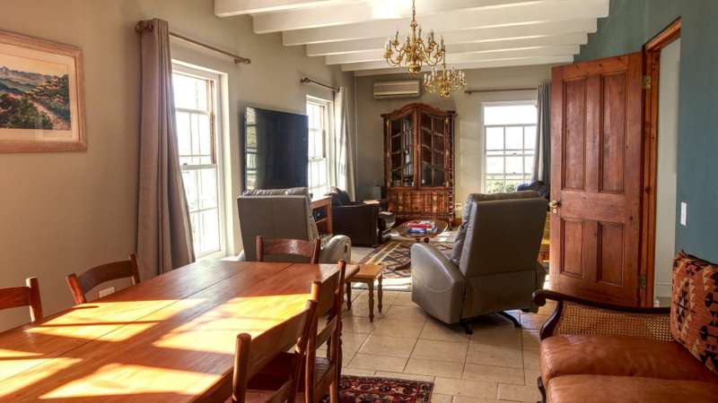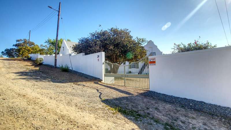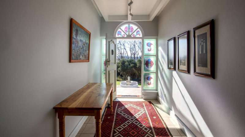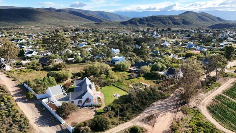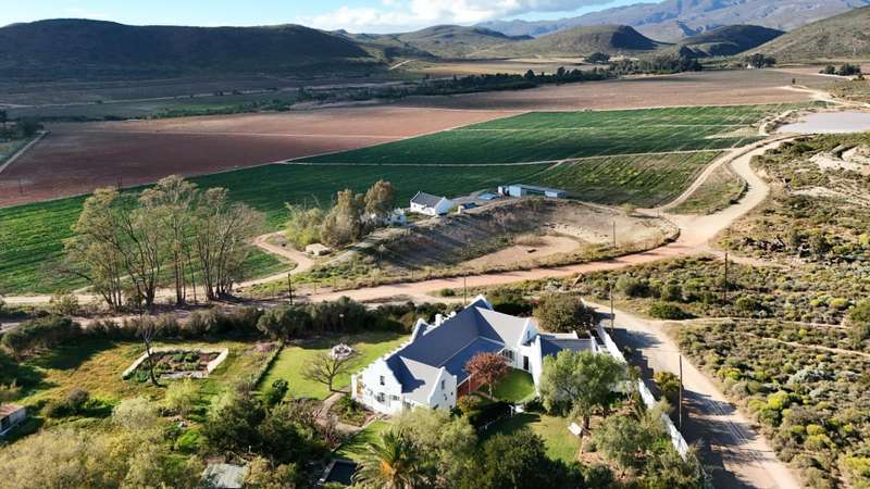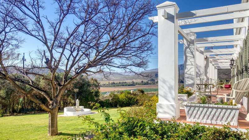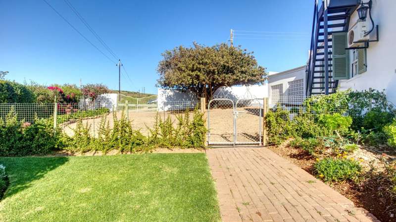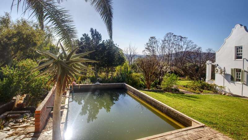 This meticulously restored and well-maintained property is situated on the eastern boundary of McGregor, enjoying an elevated position with panoramic views of surrounding vineyards and orchards. The estate offers direct access to walking trails in the hills behind the town and is located within a low-density area, bordered by expansive plots. The residence is encompassed by a mature garden featuring lush lawns irrigated via a lei water dam and is fully walled and fenced for privacy and security. The home provides versatile entertainment options with both indoor and outdoor spaces, including a covered rear patio, an open front patio, and a spacious open-plan living and dining area. The kitchen is comprehensively equipped and includes a separate laundry. Accommodation consists of a generous master suite with en-suite bathroom and dressing room, a guest bedroom, a third bedroom that can function as a study and family bathroom. Additional amenities include secure off-street parking in an automated double garage, a large, gated parking area, staff quarters, and an extensive upstairs loft suitable for storage or further development into additional accommodation.