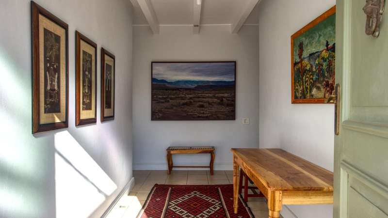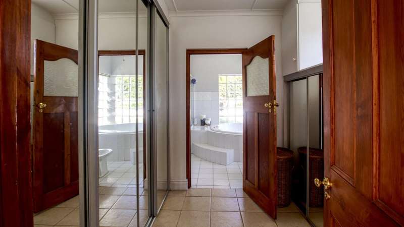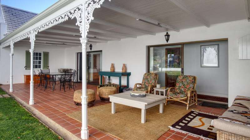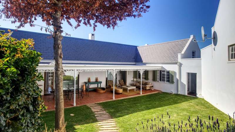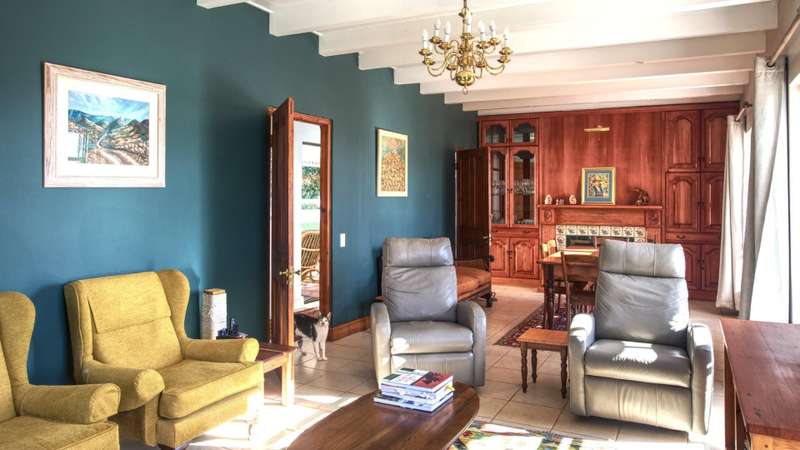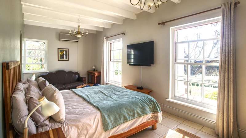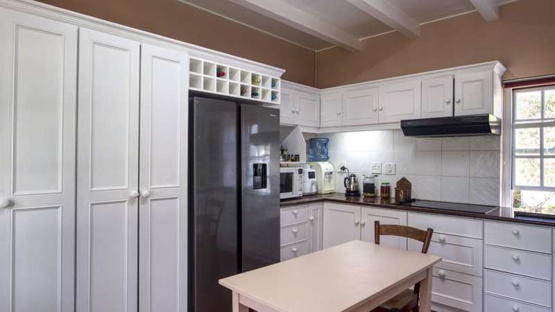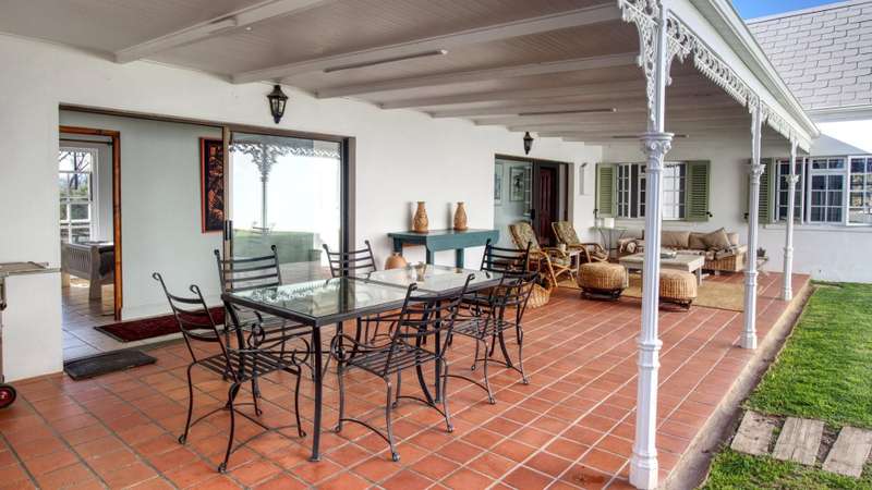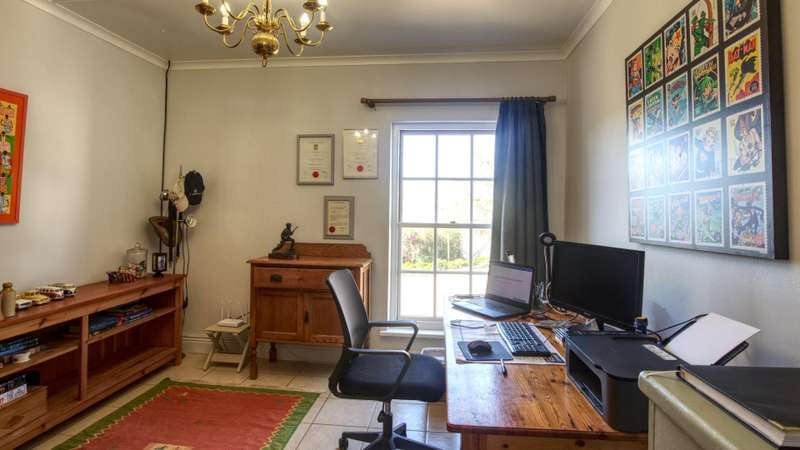 This meticulously restored and well-maintained property is situated on the eastern boundary of McGregor, enjoying an elevated position with panoramic views of surrounding vineyards and orchards. The estate offers direct access to walking trails in the hills behind the town and is located within a low-density area, bordered by expansive plots. The residence is encompassed by a mature garden featuring lush lawns irrigated via a lei water dam and is fully walled and fenced for privacy and security. The home provides versatile entertainment options with both indoor and outdoor spaces, including a covered rear patio, an open front patio, and a spacious open-plan living and dining area. The kitchen is comprehensively equipped and includes a separate laundry. Accommodation consists of a generous master suite with en-suite bathroom and dressing room, a guest bedroom, a third bedroom that can function as a study and family bathroom. Additional amenities include secure off-street parking in an automated double garage, a large, gated parking area, staff quarters, and an extensive upstairs loft suitable for storage or further development into additional accommodation.