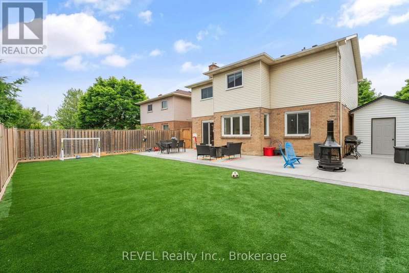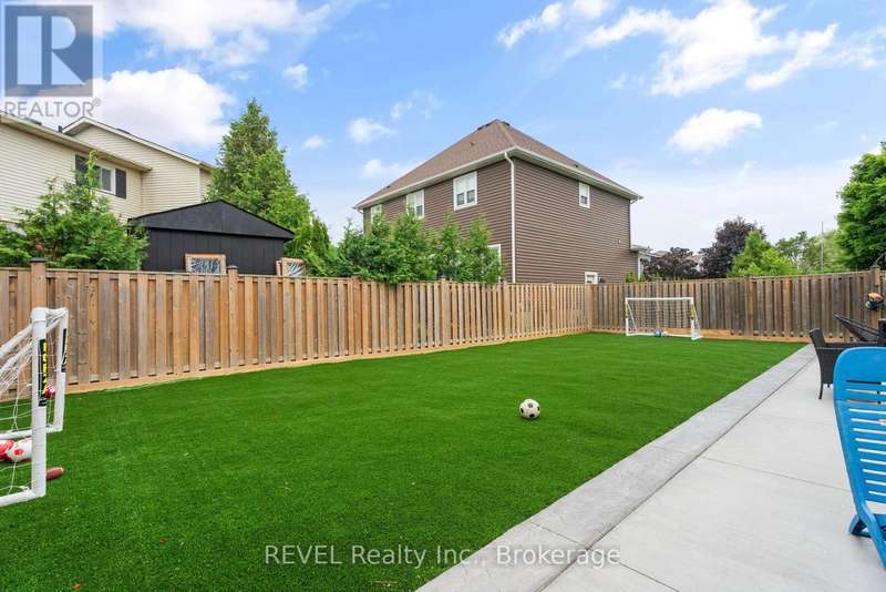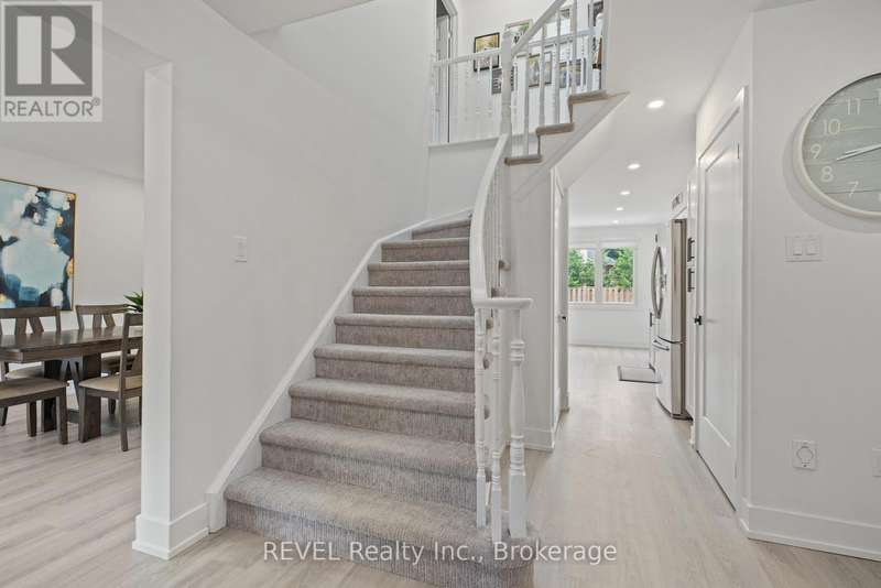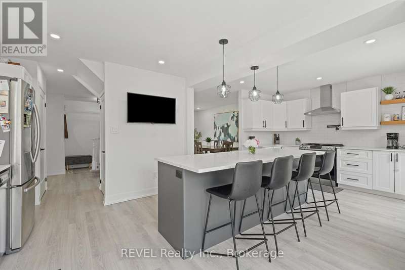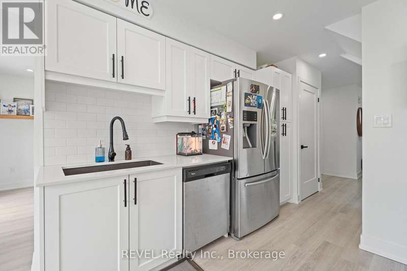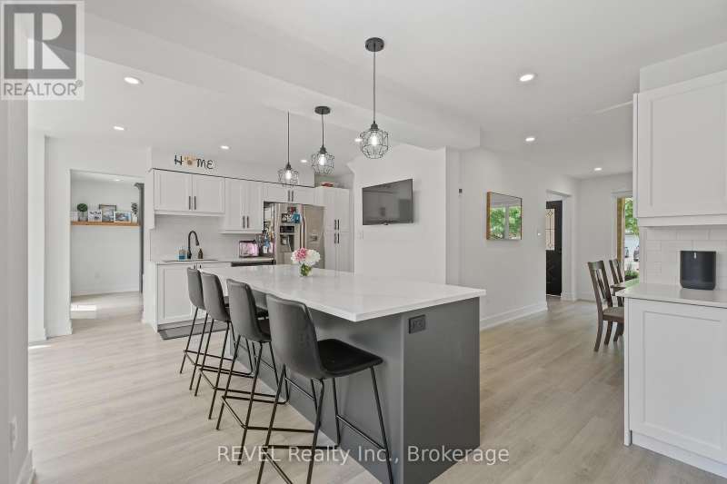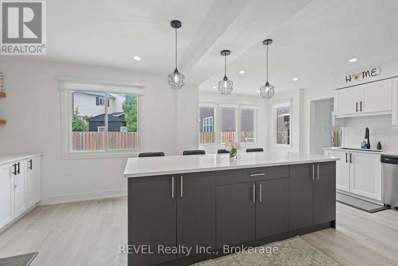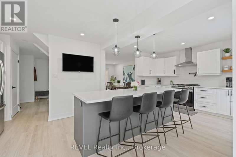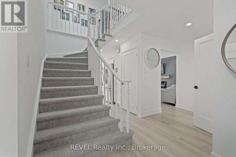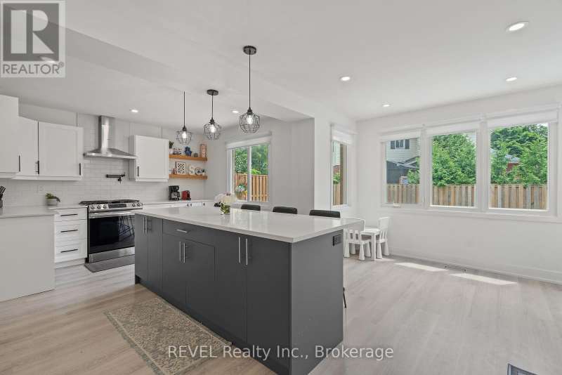 Welcome to your dream home in St. Catharines' Grapeview area! This stunning 2-storey home with over 2000 sqft of finished living space provides modern comfort and style throughout. The open concept kitchen, boasts a fully renovated space featuring a 9.5ft island, stainless steel appliances, pot lights, and elegant quartz countertops. Relax in the living room by the electric fireplace set against a shiplap accent wall with patio doors to the rear yard, perfect for cozy evenings. The main floor also offers convenience with a 2-piece bathroom and a combined laundry/mudroom area. Upstairs, you'll find three generously sized bedrooms complemented by a full 4-piece main bathroom. The spacious master bedroom includes a walk-in closet and a private 3-piece ensuite for your ultimate relaxation. Newer laminate and carpet flooring flow throughout the home, providing both durability and comfort. Additional upgrades include exterior pot lights, new main floor doors and knobs, AC, Including a fully finished basement with a large rec room, new rear concrete pad, new gas BBQ line, new utility shed, and new fully turfed yard, there's ample space for every family activity. Located close to all amenities and with easy highway access, this home combines convenience with suburban tranquility. Don't miss the opportunity to make this meticulously renovated home yours! (id:7434)