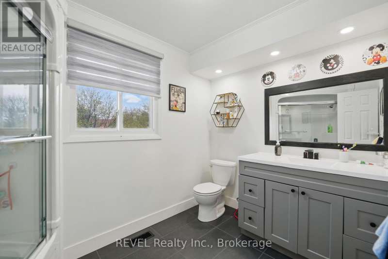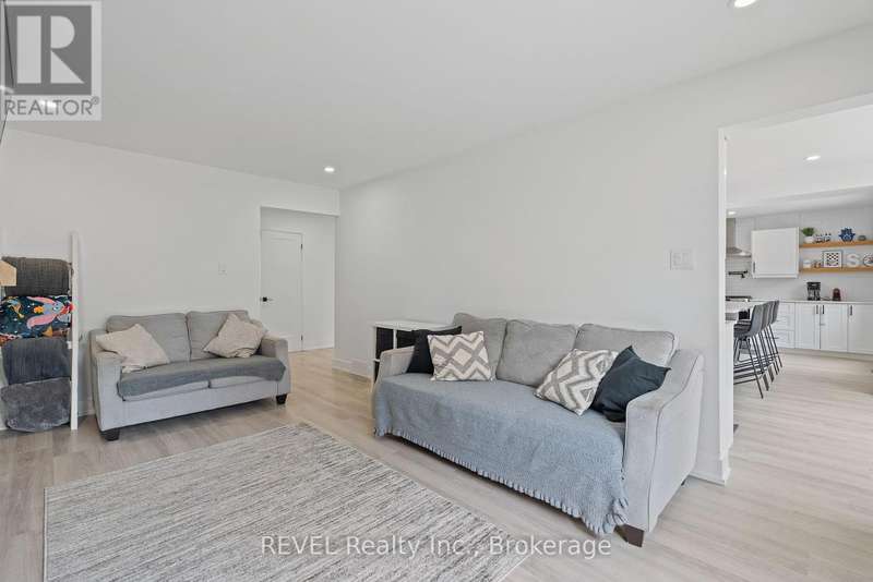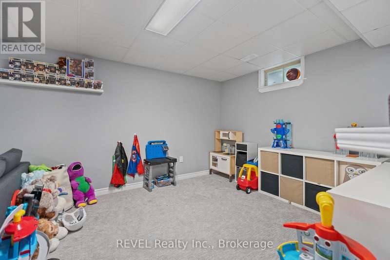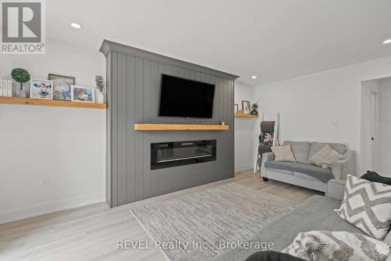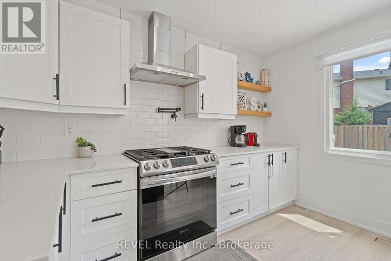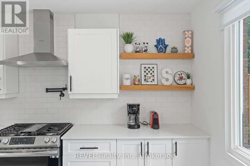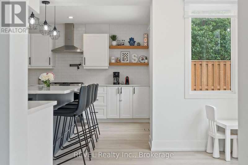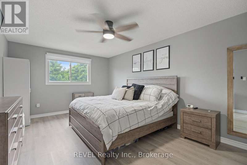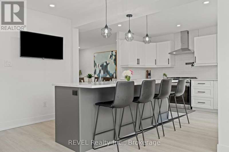 Welcome to your dream home in St. Catharines' Grapeview area! This stunning 2-storey home with over 2000 sqft of finished living space provides modern comfort and style throughout. The open concept kitchen, boasts a fully renovated space featuring a 9.5ft island, stainless steel appliances, pot lights, and elegant quartz countertops. Relax in the living room by the electric fireplace set against a shiplap accent wall with patio doors to the rear yard, perfect for cozy evenings. The main floor also offers convenience with a 2-piece bathroom and a combined laundry/mudroom area. Upstairs, you'll find three generously sized bedrooms complemented by a full 4-piece main bathroom. The spacious master bedroom includes a walk-in closet and a private 3-piece ensuite for your ultimate relaxation. Newer laminate and carpet flooring flow throughout the home, providing both durability and comfort. Additional upgrades include exterior pot lights, new main floor doors and knobs, AC, Including a fully finished basement with a large rec room, new rear concrete pad, new gas BBQ line, new utility shed, and new fully turfed yard, there's ample space for every family activity. Located close to all amenities and with easy highway access, this home combines convenience with suburban tranquility. Don't miss the opportunity to make this meticulously renovated home yours! (id:7434)