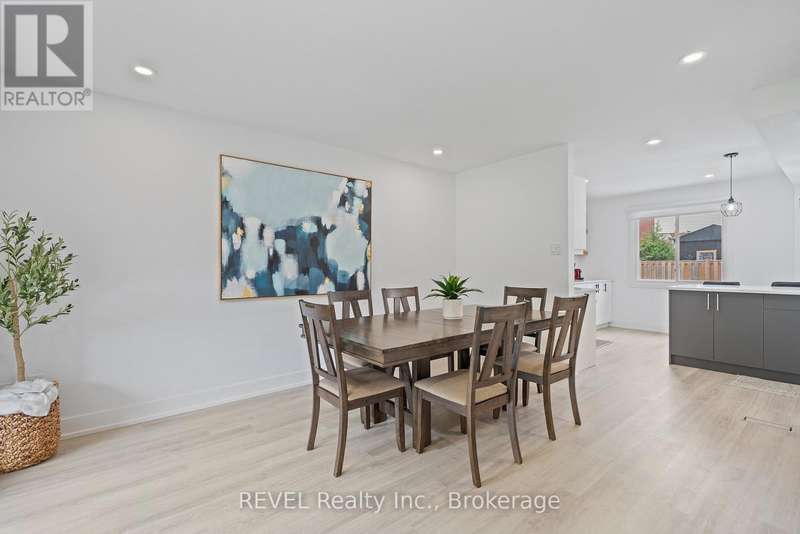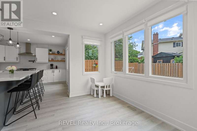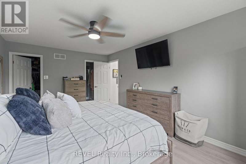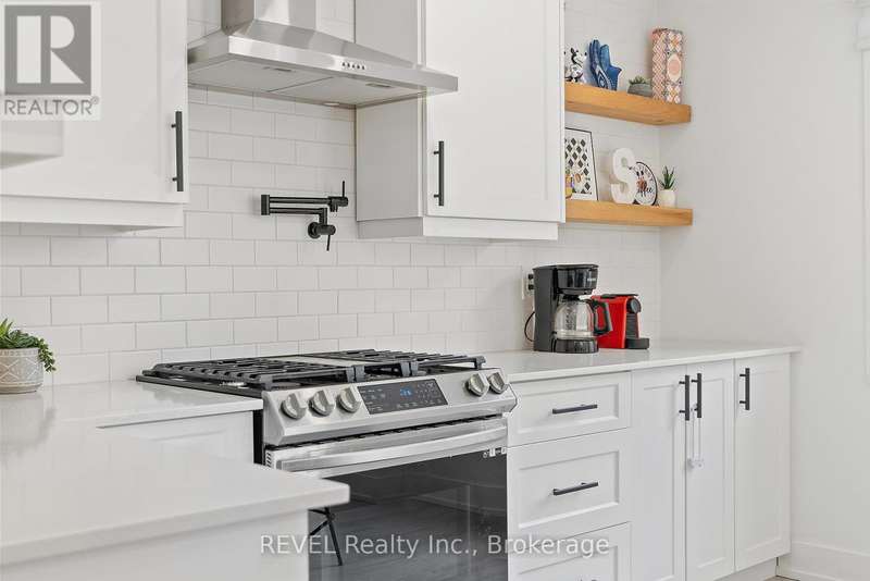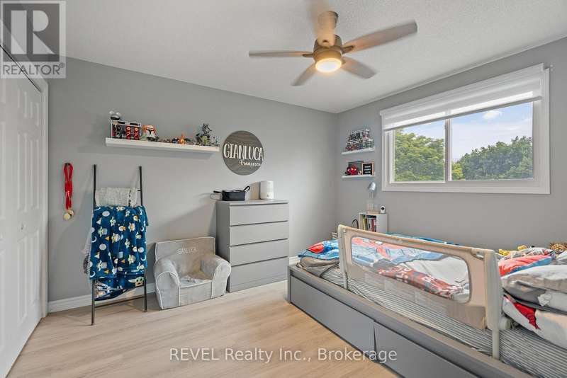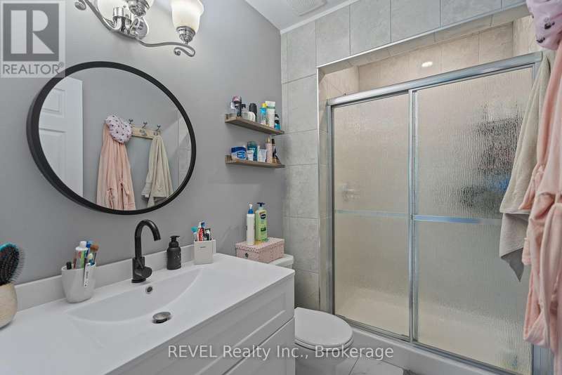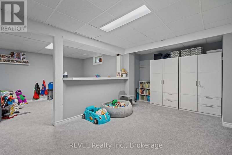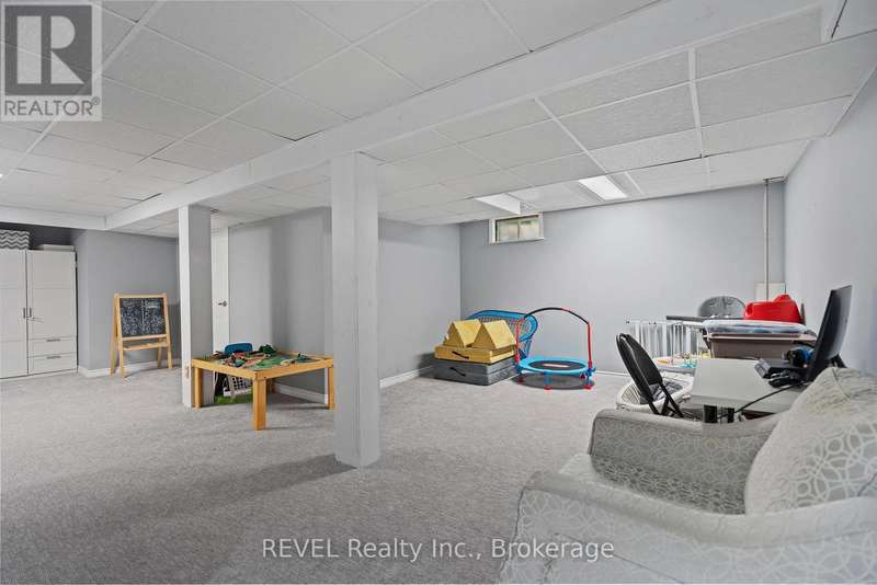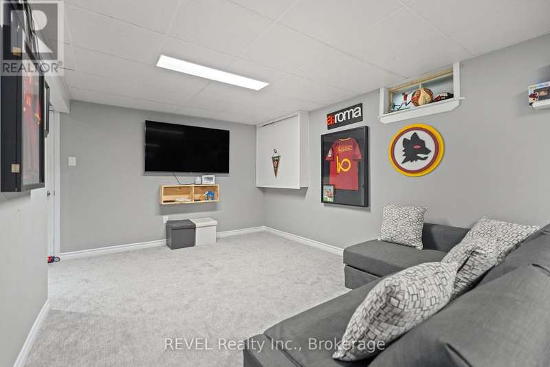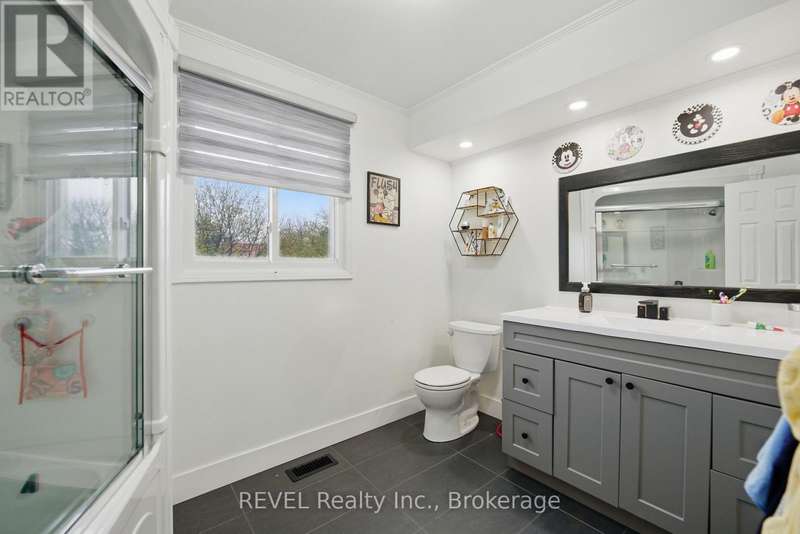 Welcome to your dream home in St. Catharines' Grapeview area! This stunning 2-storey home with over 2000 sqft of finished living space provides modern comfort and style throughout. The open concept kitchen, boasts a fully renovated space featuring a 9.5ft island, stainless steel appliances, pot lights, and elegant quartz countertops. Relax in the living room by the electric fireplace set against a shiplap accent wall with patio doors to the rear yard, perfect for cozy evenings. The main floor also offers convenience with a 2-piece bathroom and a combined laundry/mudroom area. Upstairs, you'll find three generously sized bedrooms complemented by a full 4-piece main bathroom. The spacious master bedroom includes a walk-in closet and a private 3-piece ensuite for your ultimate relaxation. Newer laminate and carpet flooring flow throughout the home, providing both durability and comfort. Additional upgrades include exterior pot lights, new main floor doors and knobs, AC, Including a fully finished basement with a large rec room, new rear concrete pad, new gas BBQ line, new utility shed, and new fully turfed yard, there's ample space for every family activity. Located close to all amenities and with easy highway access, this home combines convenience with suburban tranquility. Don't miss the opportunity to make this meticulously renovated home yours! (id:7434)