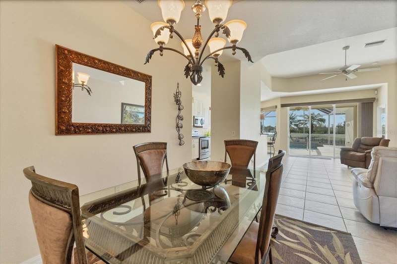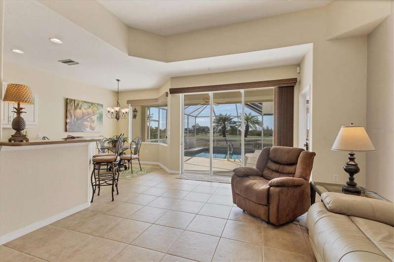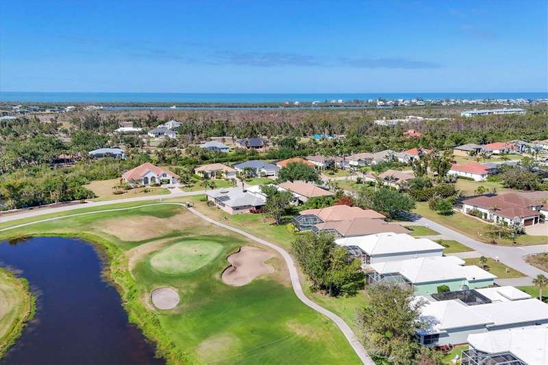 Stunning and mint condition home with an incredible golf course front location that afford spectacular views. Enjoy the perfect blend of luxury, comfort, and peace of mind in this beautifully maintained 3-bedroom, 2-bathroom home with a gorgeous swimming pool located in the sought-after community of Cape Haze Windward. This home is truly move-in ready, with major upgrades for worry-free living, including a new roof (2023), electric motorized hurricane shutters for all windows and doors, new AC system (2023), new carpet in the bedrooms, water heater (2021), most appliances replaced in 2020 and several rooms recently painted. Situated on a prime lot with sweeping southeastern views of the Cape Haze Links golf course and surrounding lakes, this home offers the ultimate in privacy, with no neighbors in sight for hundreds of yards. Step inside through elegant double glass front doors to discover a light-filled interior featuring soaring 12'+ tray ceilings with crown molding, an open-concept layout, and picturesque views from nearly every room. The formal dining area, cozy breakfast nook with aquarium glass window, and spacious living room all flow effortlessly to the covered lanai and heated swimming pool, perfect for entertaining or relaxing in the Florida sunshine. The generously sized primary suite is a private retreat with gorgeous views, the bath features a Roman shower, dual sinks, and large walk-in closet. Two additional bedrooms offer comfort for guests or a home office setup. The home is also being sold with all the wonderful furnishings and decor in the property. Technical capability to operate the shutters, ceiling fans, garage and front doors, and thermostat on your phone. The homeowner's association takes care of the landscaping maintenance. Located just minutes from marinas, boat ramps, kayak launches, state parks, historic Boca Grande, and miles of pristine sandy beaches, you'll enjoy the best of what Florida's Gulf Coast has to offer. Don't miss this rare opportunity to own a piece of paradise in one of the area's most desirable communities.