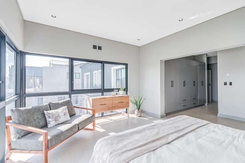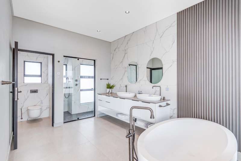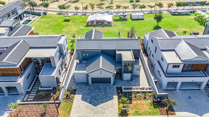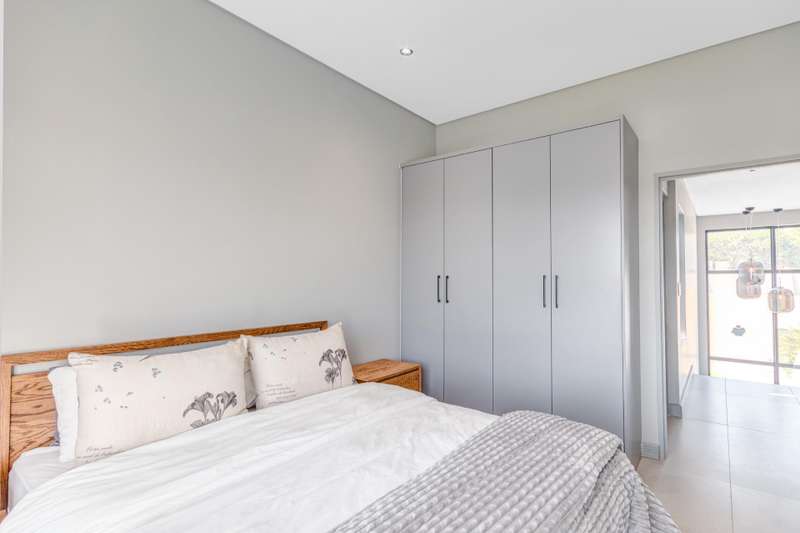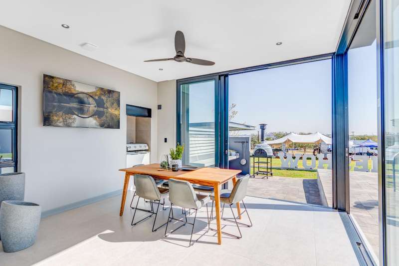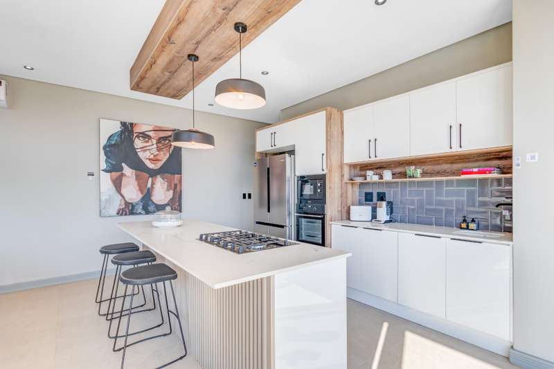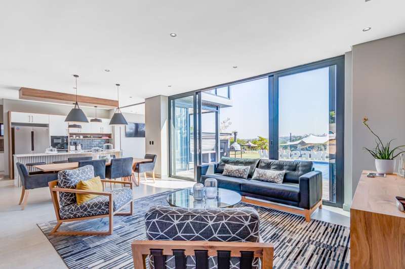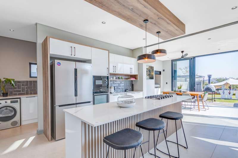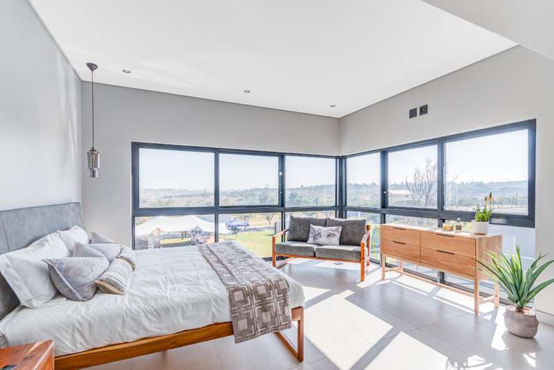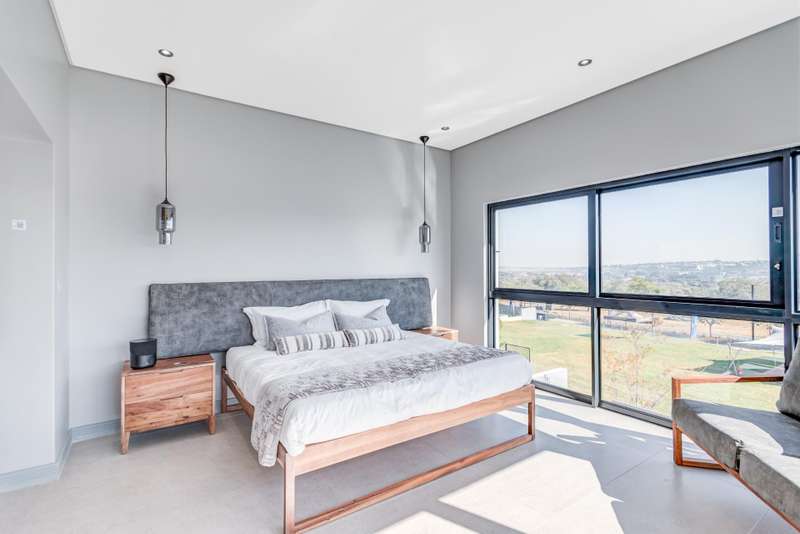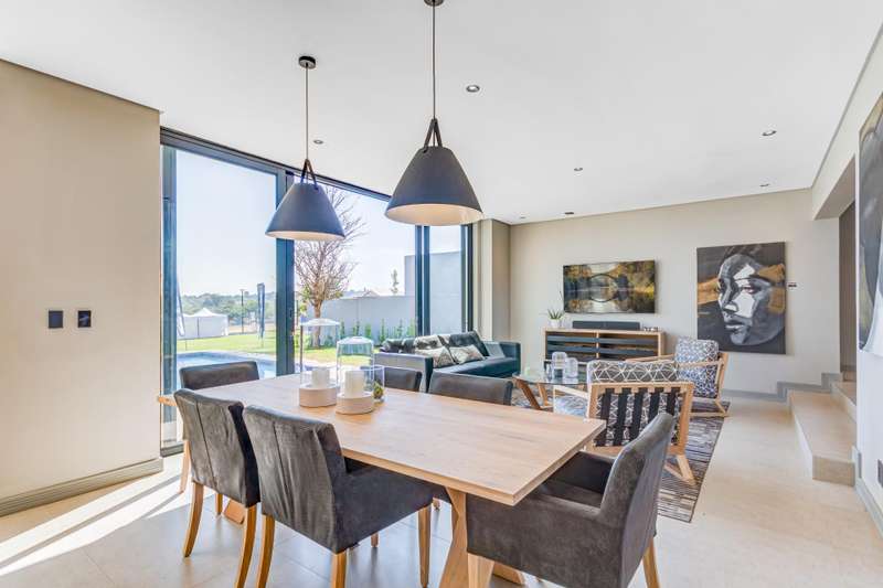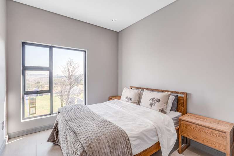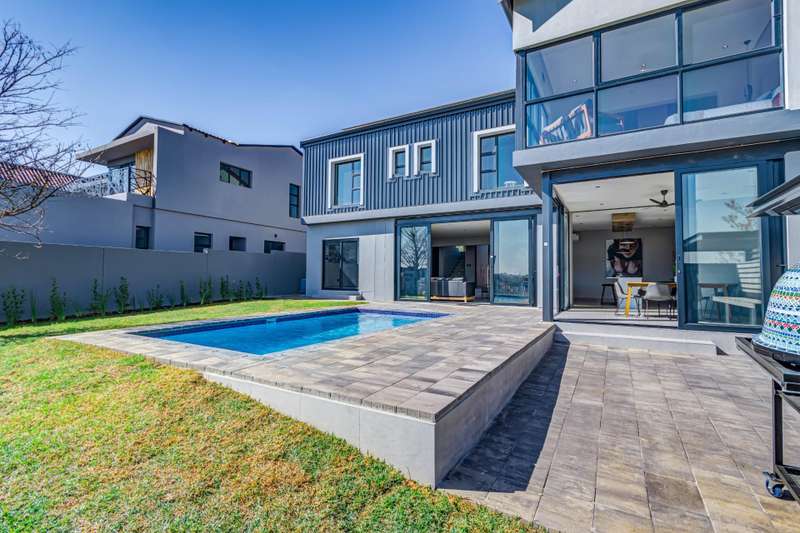 Welcome to this stunning 4-bedroom home nestled in the sought-after Helderfontein Estate. This modern residence boasts a spacious open-plan kitchen equipped with a built-in oven, microwave, gas stove, and ample cupboard space, complemented by a convenient pantry and scullery. The kitchen seamlessly flows into the dining area, lounge, and patio, featuring a built-in gas stove and extractor, perfect for culinary enthusiasts. These living spaces open up to a beautiful outdoor entertainment area with a sparkling pool and a lush garden, ideal for hosting gatherings or enjoying quiet family moments. Each of the four bedrooms is en-suite, offering a unique design for comfort and privacy. The ground floor houses the guest bedroom, while the remaining three bedrooms are situated upstairs. The main bedroom is a true retreat, boasting breathtaking views, abundant closet space, and a luxurious bathroom with a double basin, shower, and private toilet. Additionally, the upstairs area includes a dedicated space for a desk, making it perfect for a home office or study nook. Practicality meets modern convenience with a double garage that provides direct access to the kitchen, ensuring ease of living. This home is equipped with solar panels and a heat pump, making it energy-efficient and environmentally friendly. Experience the perfect blend of luxury, comfort, and sustainability in this exquisite Helderfontein Estate property. Don't miss your chance. Contact us now!!