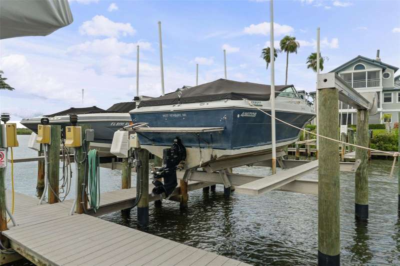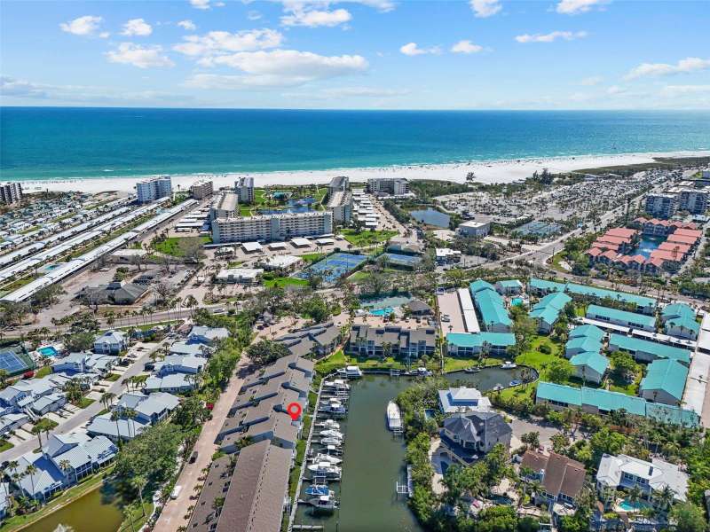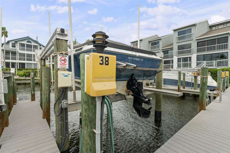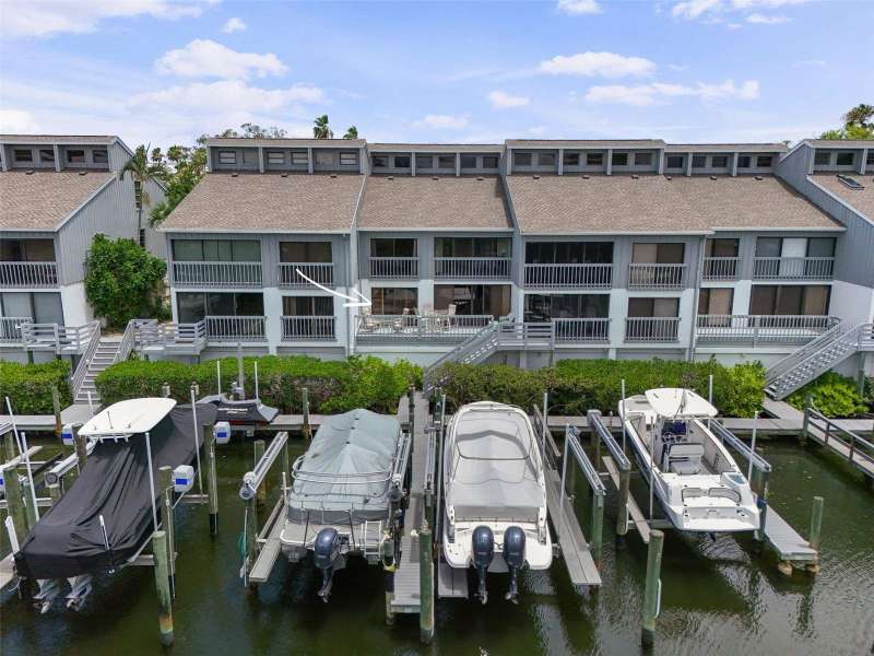 This spacious condo has easy access to Siesta Key Beach and a DEEDED 25-FOOT BOAT SLIP WITH A LIFT!! There is water and electric to the dock. Yes, this is a rare opportunity to have both your boat and a nearby world-famous beach in a nicely laid out two-bedroom, two-bath turnkey furnished condo. The master bedroom has views of the harbor while the guest room has a peaceful garden view. This condo features tile flooring throughout with both HVAC and appliances that are only a couple of years old. The roof was replaced in November 2021, and the unit has a one-car garage with storage above as well as a dedicated parking space in front. In addition, this unit has one of the few private outdoor decks in the community. Harbour Towne offers fantastic amenities, including a clubhouse, heated pool, spa, and tennis/pickleball courts. Enjoy the village by day or evening for great dining, shopping and live music. A complimentary trolley runs by the complex on a regular schedule in season. This is a great place to live and play! Look no further, this is where your fun-filled life begins.