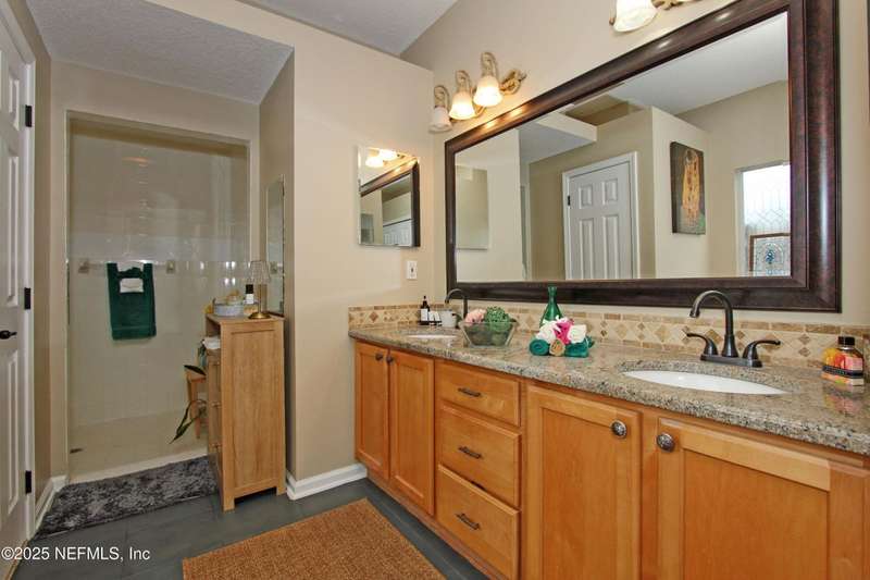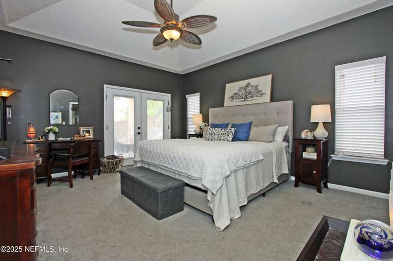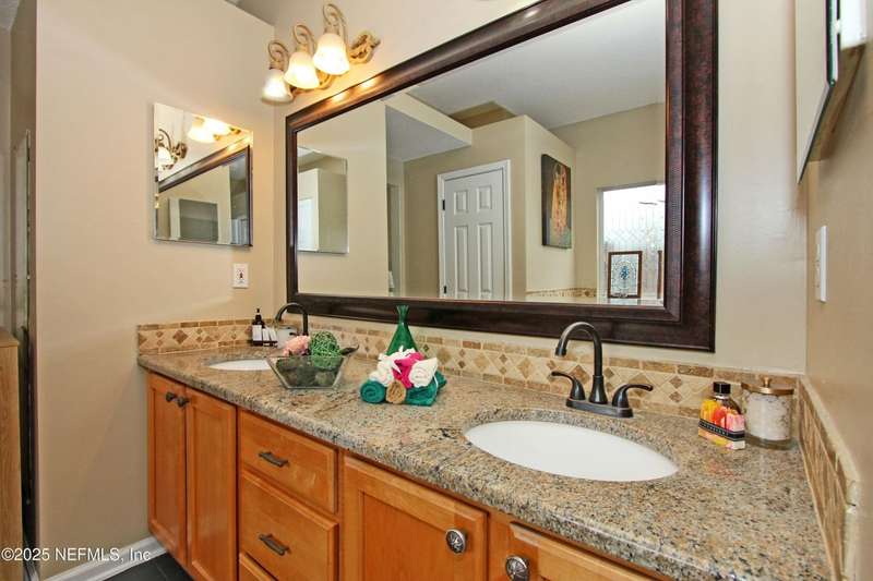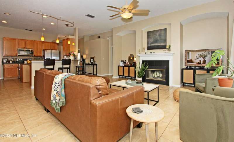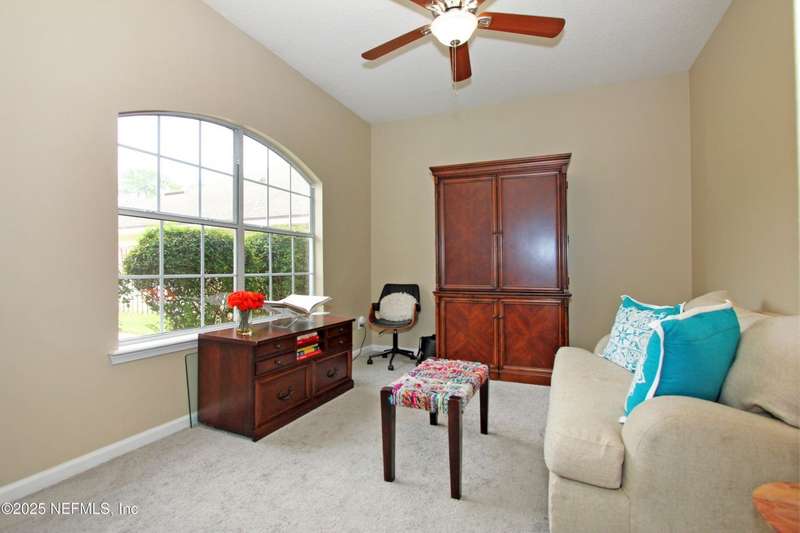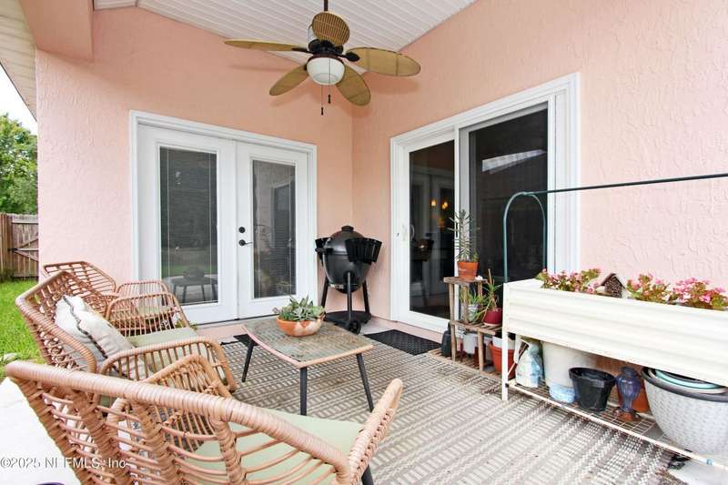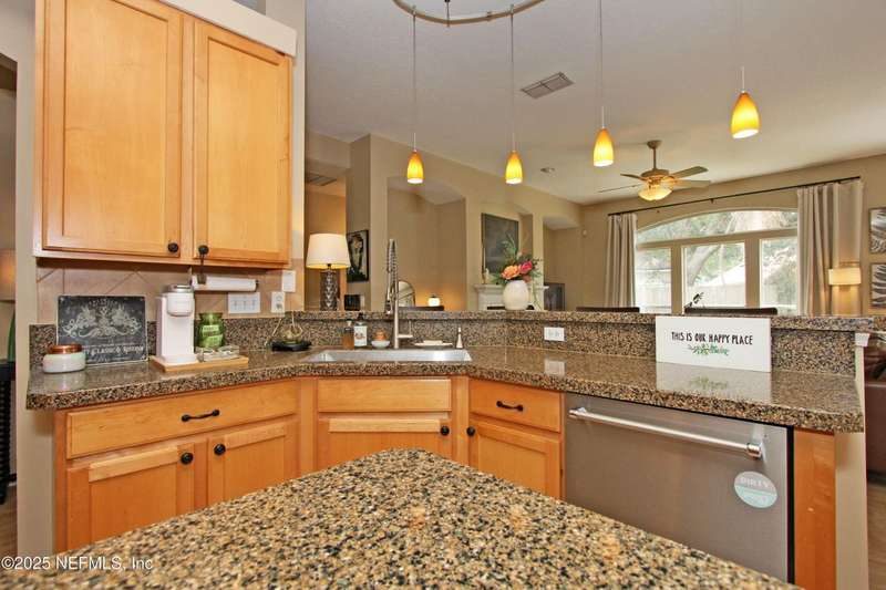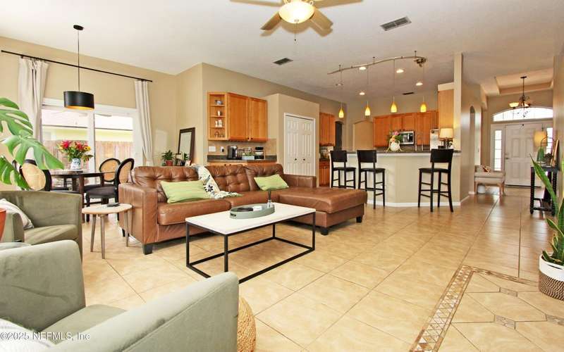 Welcome to this beautifully updated 3BR 2-BA in the Julington Creek Plantation. Formal living room w/ French doors easily used as office or 4th BR . Designed with comfort & style. This home is move in ready and full of upgrades! The Gourmet Kitchen features 42' cabinets, granite countertops, center island, pull out drawers and SS appliances,Open floor plan to Family &dining areas. Vaulted ceilings, recessed lighting, and large windows fill the space with natural light, even a beautiful fireplace. The spacious owner's suite offers a true retreat with two large custom closets direct access to the backyard, and a garden tub,complete w/ dual vanities, a walk-in shower, & relaxing garden tub. The updated second bath boast of modern finishes. .Outside enjoy Florida living, a covered lanai with ceiling fan, extended patio for entertaining, and a fully fenced backyard with room to play, garden or relax in the hammock. Roof 2017, water heater 2023, Windows 2023 & new hareward throughout Bring pickiest buyer you won't be disappointed.