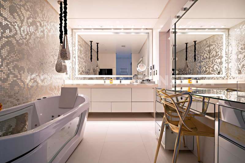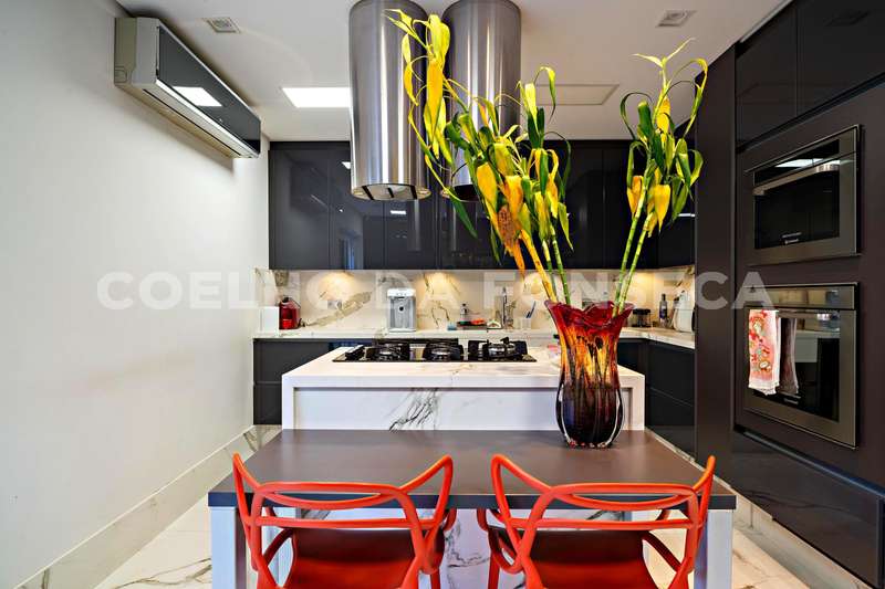 Todos os pisos em porcelanato portobello, todas as pias da sireston, armários kitchens, Piscina e área externa em mármore travertino bruto.