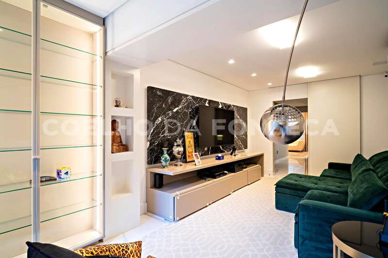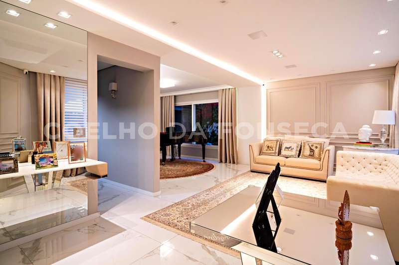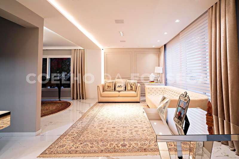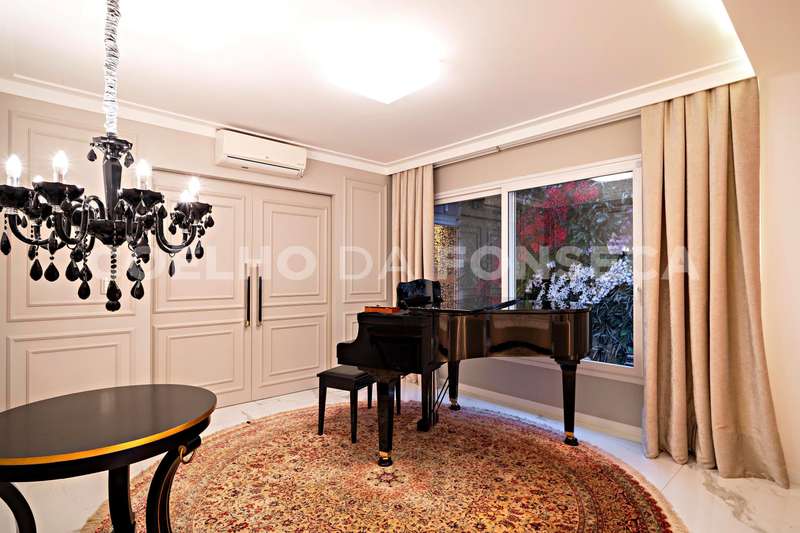 Living integrado a sala de jantar com belo piano de caldas, sala de tv com ambiente voltado para a area exerna de piscina e espaço gourmet.