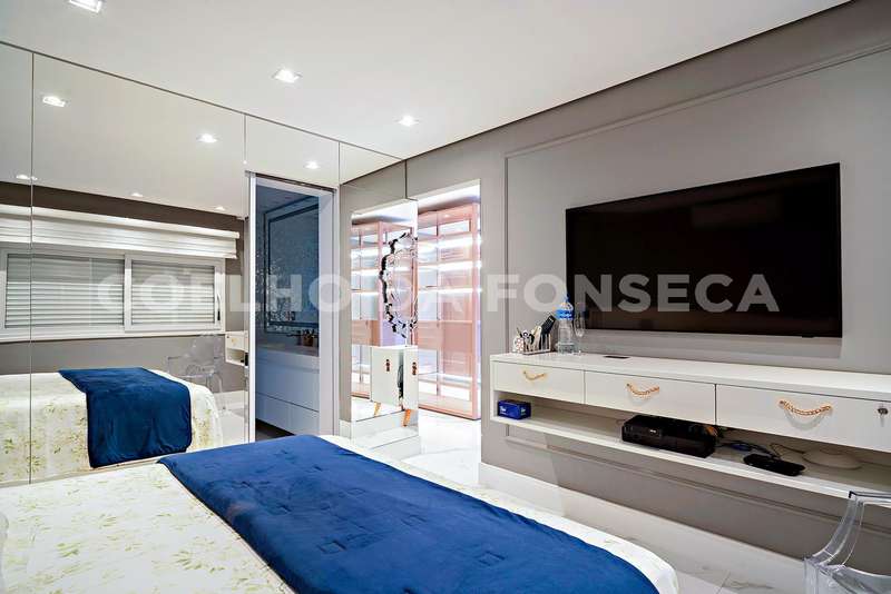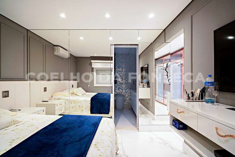 Atualmente a residência está com 2 suítes, sendo a suíte master com closet com armários em vidro rose da florese, banheiro Sr/Sra. com banheira, além de bela varanda voltada para a piscina.