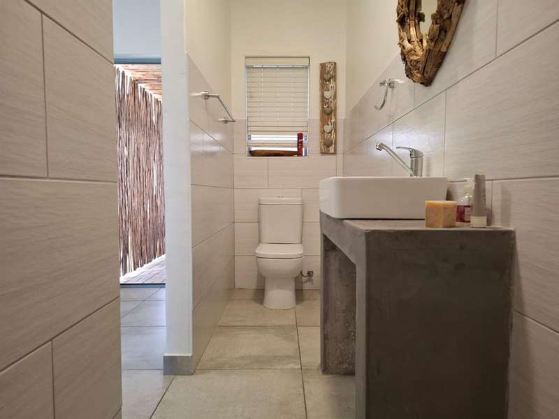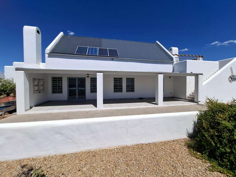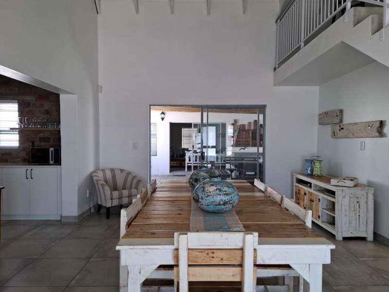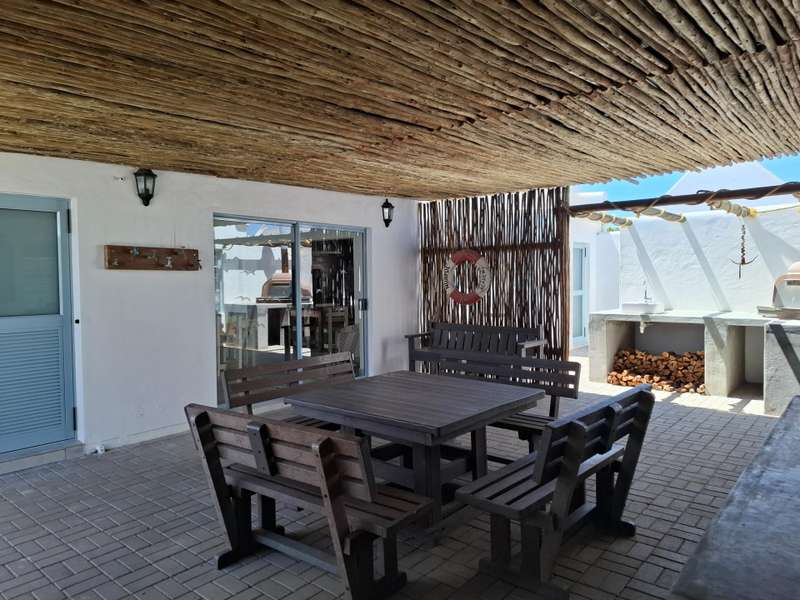 Impeccable beach house for sale in Dwarskersbos. Please watch the video. Presenting the ideal property to own in Kersbosstrand on the Cape West Coast. Furniture included! The comfortable and well-thought home offers a living abode centered around a covered inner court which connects all the living spaces -- kitchen, dining room, braai room, 2 bedrooms, guest toilet, garage, al fresco shower. The front of the house offers a protected patio entrance with a low maintenance garden. There is a side staircase to a entertainment and viewing deck overlooking the ocean. The kitchen has an inside fireplace, a scullery and outside wash basin. There are 2 additional bedrooms inside the house. One downstairs and the other one, a double room on the loft second floor. All 4 bedrooms have their own private en-suit. The home is warm and inviting and oozes space and connected flow, yet it is private and comfortable. It is a house for family, for friends and guests, a house to relax and enjoy life. Best to come and savour for yourself. Call me for a private viewing.