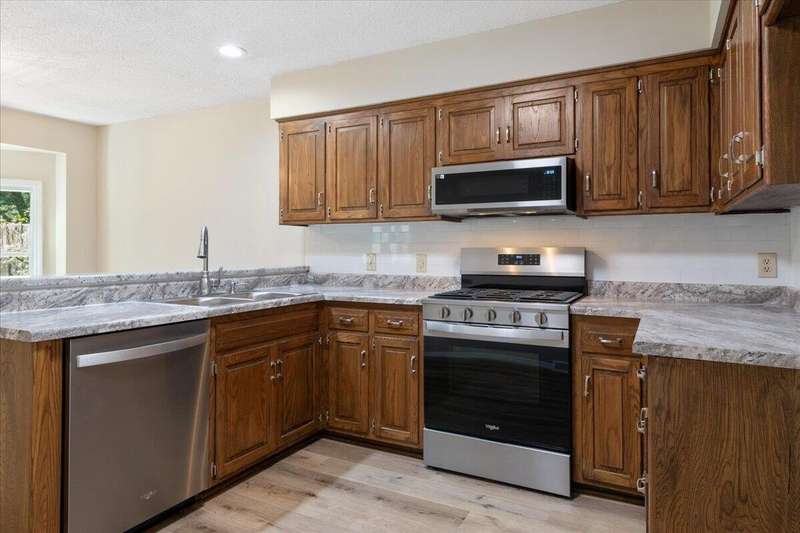 Close to hospitals and shopping! Renovated 3/2/2 ALL BRICK RANCH with large shaded yard. Prior owner says roof is 6 years old; hvac is about a year old. New carpet in living rooms, hall and bedrooms. New vinyl plank in foyer, kitchen and dining area, hall bath and separate laundry room. An extra bonus is a sunroom with a view of the spacious privacy fenced backyard. A new gas stove, microwave, disposal and dishwasher have been installed in the kitchen, along with new bright and neutral backsplash and counter tops. Windows in 3 bedrooms will be replaced prior to closing (they have been ordered). The cathedral ceiling in the living room is beamed and the living room has a wood burning fireplace (it hasn't been tested). The two car garage has ONE TINY STEP into the house so those groceries don't have to be lugged up lots of steps. This wonderful neighborhood is ready for new owners. Call today. Agent is related to seller.