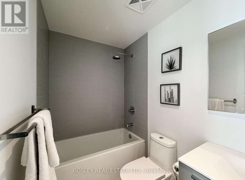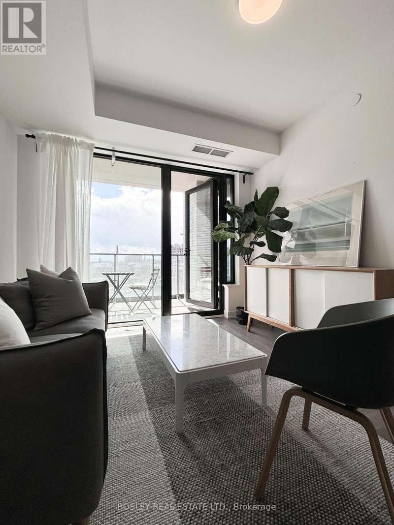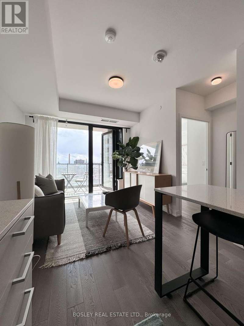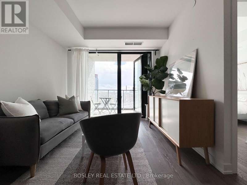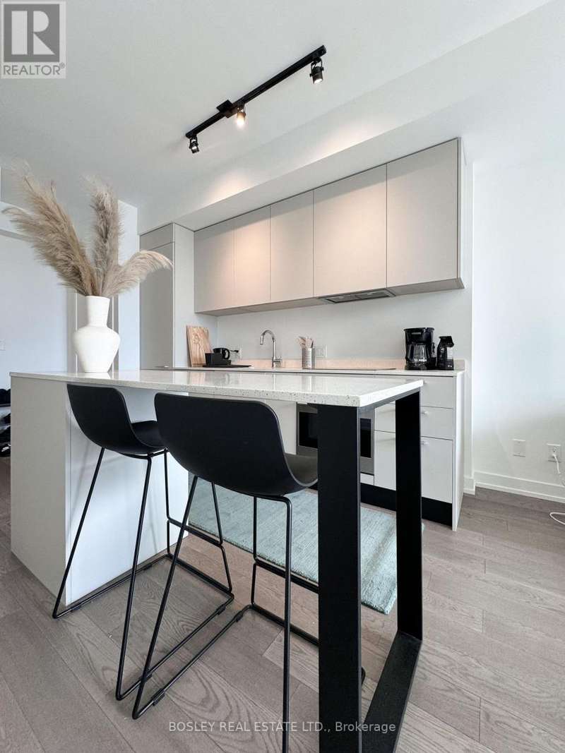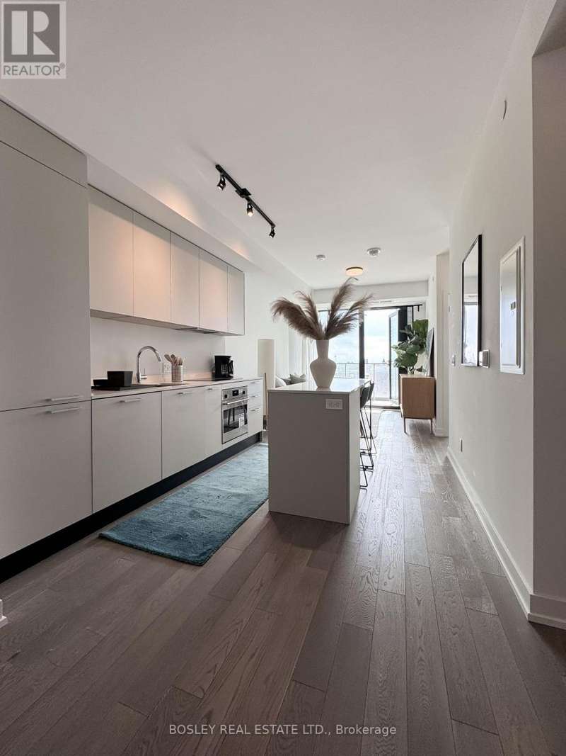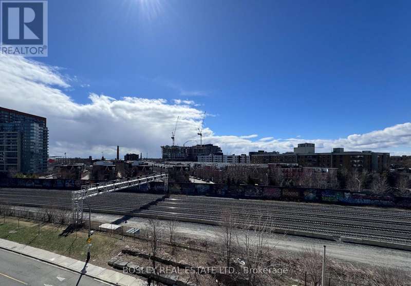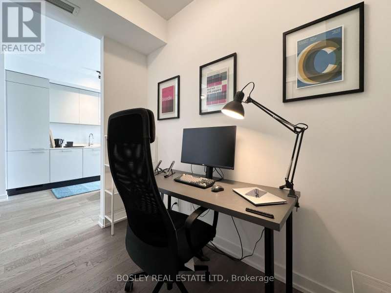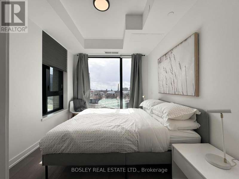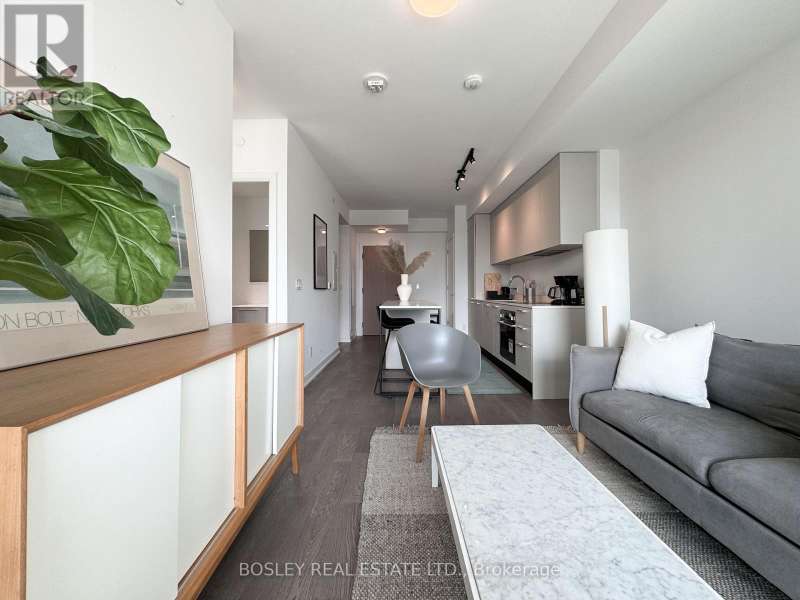 Offered for sale for the first time since the building's inception, this well-balanced and efficiently planned 624 sq ft suite is a rarefied find (just like you). Suite 602's mindfully-chosen interior design and finishes offers simplicity, functionality, and nuanced indulgence. Warm grey-oak engineered hardwood floors run throughout, grounding the open living/dining space; a setting that works as easily for solitary evenings as for small, familiar gatherings. A brick alcoved balcony extends the living space outdoors - a quiet nook perfect for summer reading, slow mornings, and moments of pause. The expansive black-framed windows draw in daylight + perfectly frames the suite's unobstructed & cinematic view of the open horizon from dawn to dusk. The Scavolini-designed kitchen is all buttery matte finishes and crisp white quartz + integrated appliances and a versatile island. The bedroom is bright and unhurried, wrapped in large windows, with a walk-in closet that quietly absorbs the evidence of daily life. A modern bathroom offers a tiled alcove tub + a sleek skirted toilet - details that are clean and simple, just like your daily cleansing rituals. The separate den is flexible: it can hold a generous desk for deep work, or a twin bed for the occasional guest (who never quite leaves on time). Amenities include a gym with thoughtfully designed equipment; a lounge setting - styled with organic-modern pieces - that invites conversation or quiet, depending on the hour; and an expansive chef's kitchen + dining setting that is perfect for larger gatherings and fêtes. The suite's calm atmosphere is quietly removed - yet is mere steps away - from the hum of West Queen West's galleries, coffee bars, buzzy eateries + late-night spots. For those longing for a home that embodies simplicity and warmth - and where the city naturally falls into the backdrop - suite 602 awaits. (id:7434)