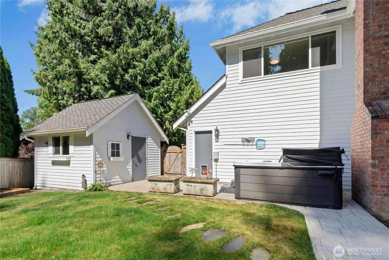 Welcome to Amesbury in Redmond! This beautifully maintained Buchan-built home has the ideal floorplan offering 4 bedrooms, 2.5 baths + dedicated office, and spacious bonus/playroom with dual staircases for added convenience. Stay comfortable year-round with heat pump/air-conditioning, and automatic Generac generator. The fully fenced, level backyard features a stamped concrete patio, hot tub, and oversized storage shed. Enjoy an updated interior with refinished hardwoods & paint (2025), newer carpet (2024/25), and a 3-car garage with 2 EV chargers and ample storage. Pre-inspected for peace of mind. Just seconds to the neighborhood playground and sports court...pickleball anyone? Come experience this amazing Ames Lake community for yourself!