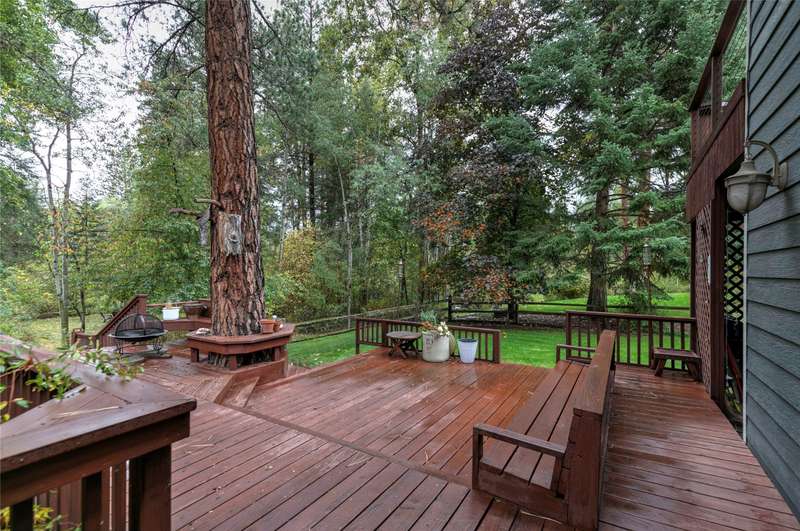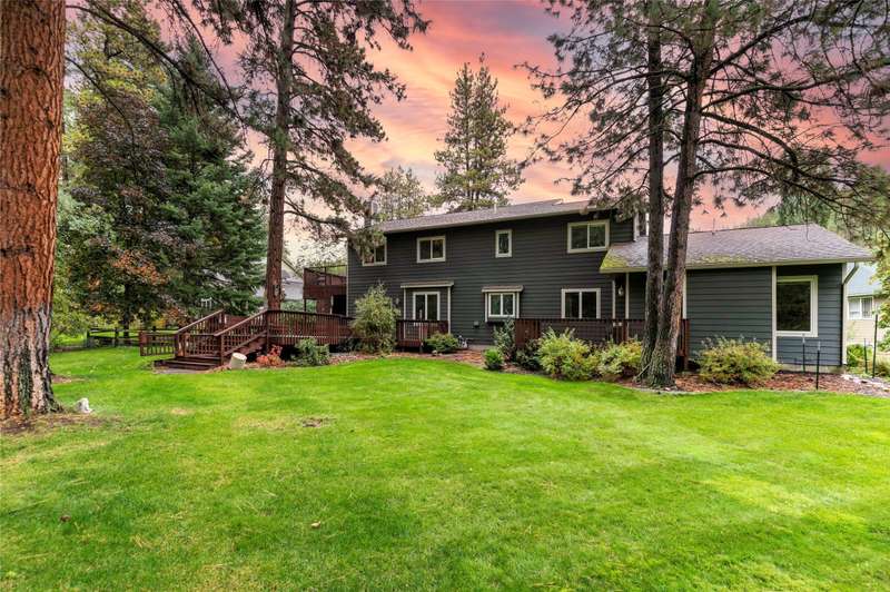 Tucked among mature pines and with the fabled Grant Creek running through the backyard, this remarkable 3,370 sq ft, 5-bedroom, 3-bath home offers a rare combination of privacy, beauty, and convenience. From the moment you step onto the expansive back deck, the gentle, bubbling sounds of Grant Creek create an atmosphere of pure Montana serenity. Whether you're enjoying your morning coffee, hosting friends beneath the trees, or unwinding at day's end, the tranquil sound of flowing water and the surrounding wooded landscape make this property feel like a private retreat. Inside, the home balances warmth and modern comfort with an updated kitchen, bright open spaces, and a cozy fireplace that anchors the main living area. Large windows frame wooded views, filling the interior with natural light and offering glimpses of wildlife drawn to the creek. With thoughtful design throughout, the layout easily accommodates family living, entertaining, or guests seeking a peaceful escape. The 5 bedrooms and 3 full bathrooms provide flexibility for home offices, multi-generational living, or hosting. Each room brings in soft forest light, and the main-level living areas flow seamlessly to the outdoor spaces, inviting you to enjoy Missoula's four distinct seasons from the comfort of your back deck, front patio, or grassy yards that surround the house. Although perfectly private, the property is just minutes from Missoula's N Reserve corridor, offering convenient access to shopping, restaurants, and everyday amenities. Interstate 90 and the Missoula International Airport are only moments away, ensuring smooth travel and connectivity while preserving the feeling of being miles from the city. This exceptional Grant Creek property captures the essence of Western Montana living-a home where nature's soundtrack plays just beyond your back door, yet the conveniences of town remain close at hand. A rare blend of natural beauty, refined comfort, and unbeatable location awaits.