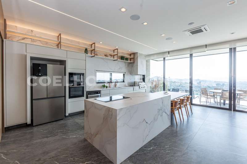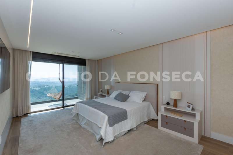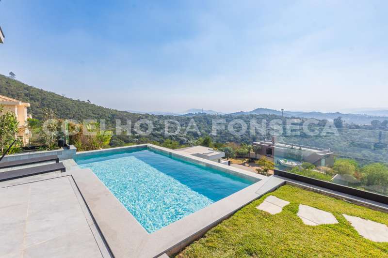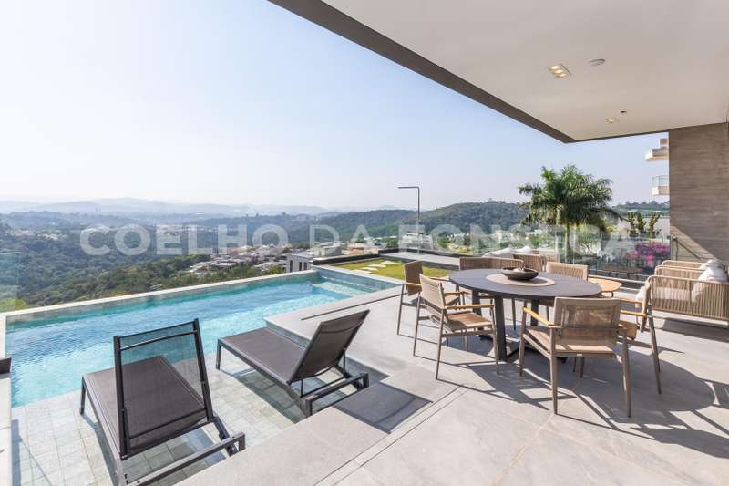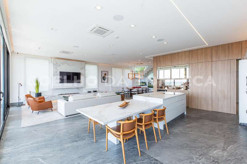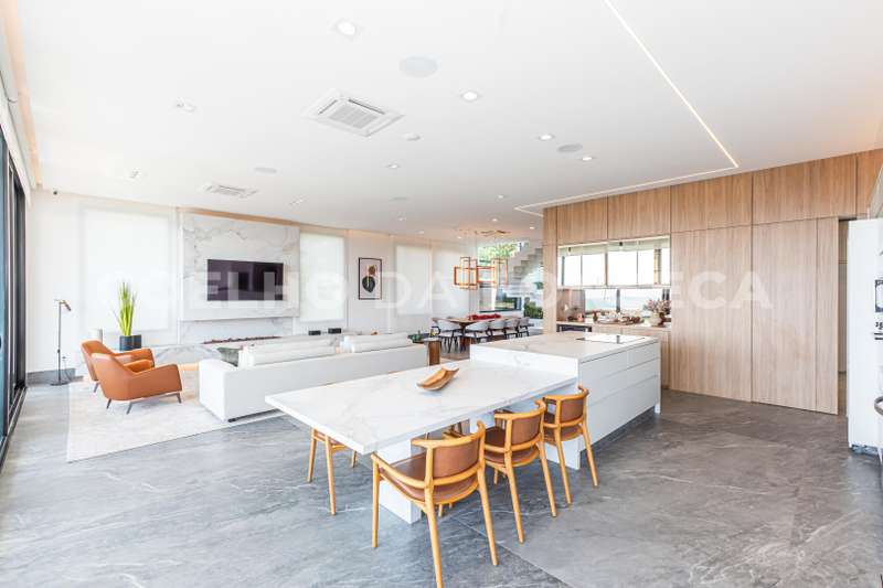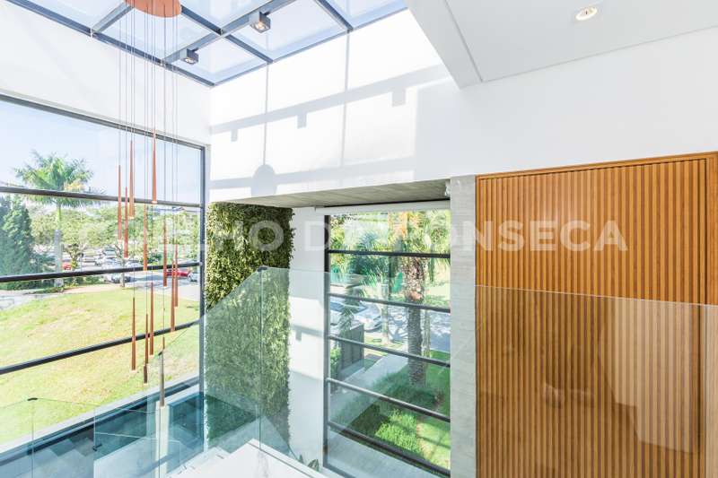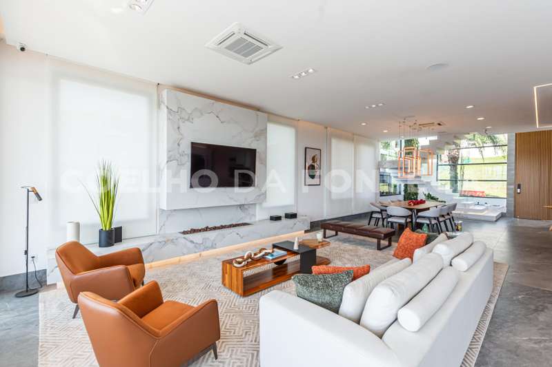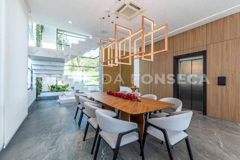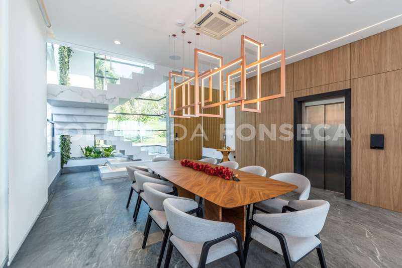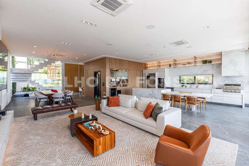 Maravilhoso Imóvel com 4 suítes, sendo uma presidencial com academia contendo Fitness 4 Banheiros 1 lavabo 4 Vagas de garagem cobertas Ar condicionado Sauna Ofurô Vestiário Duchas sendo uma circular Escritório Ateliê Living Pé direito duplo lareira Cozinha Area de serviço Sala de jantar Espaço gourmet Piscina c/ borda infinita Cascata Moveis Breton Casa equipada com eletrodomésticos Samsung Premium Automação completa Sonorização completa academia com automação Sonorização completa