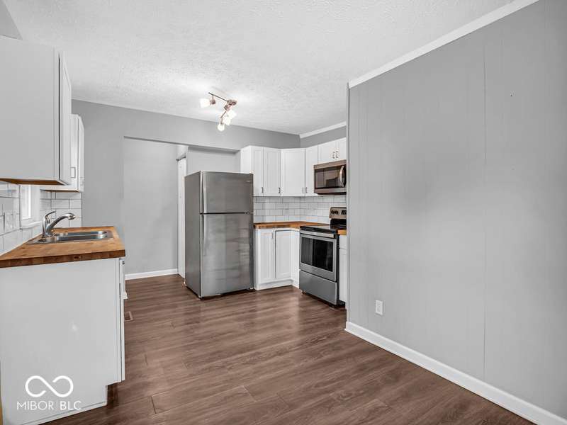 Welcome home to this charming 3 bedroom! Updates in the last 5 years include: laminate flooring, kitchen with stainless steel appliances, full bath, white shake style cabinets, butcher block counters, subway tiled back splash, windows and exterior paint. Enjoy the large fenced in back yard or relax on the covered front porch. Unfinished basement offers lots of storage. Don't miss this opportunity!