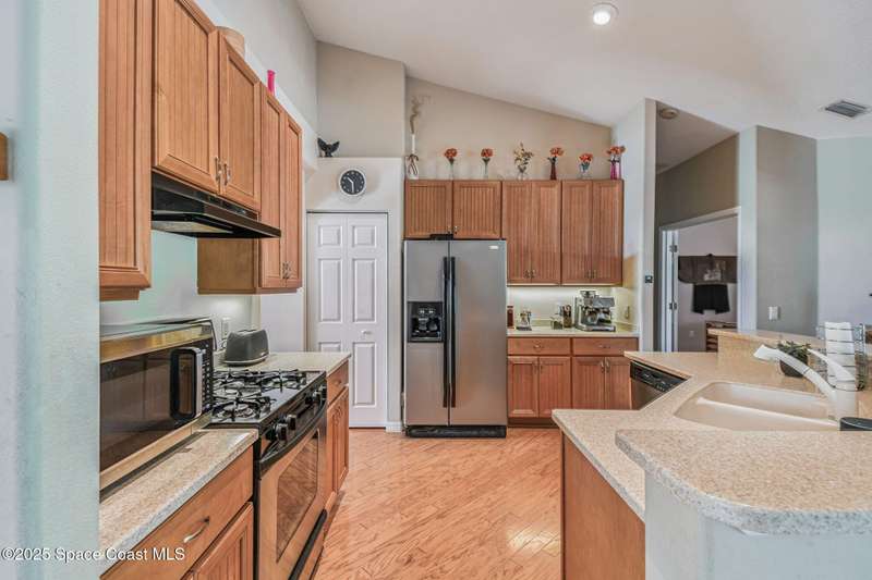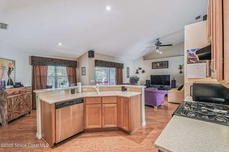 Sellers are offering $10,000 in CONCESSIONS to the buyers at closing to be used for price reduction, mortgage rate buy down, or closing costs! This beautifull 3-bedroom PLUS an office, 2-bath pool SMART HOME is ready for its next owners!. Major updates are a new roof (2020), new A/C (2023), new water heater (2025), and new pool pump (2025), ensuring worry-free living for years to come. Enjoy the screened-in pool area with a green-belt view and lots of patio space for entertaining or unwinding in privacy. Inside, you'll find a versatile floor plan with an office, formal dining room, family room, and a split-bedroom layout ideal for privacy. The kitchen shines with 42'' maple wood cabinetry, Corian countertops, gas range, and a breakfast barall overlooking the pool. Warm oak flooring runs throughout the home, adding richness and charm. Whether you're working from home, hosting guests, or enjoying a quiet evening by the pool, this home has it all. Smart, stylish and move-in ready.
