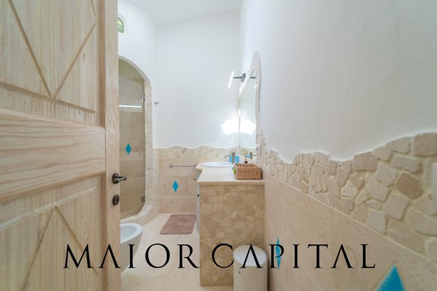 Crossing the threshold, you are greeted by a covered veranda, perfect for al fresco dining, which opens onto a hyper-bright living room. Each room is flooded with natural light and, thanks to the materials and colours used, creates a dreamlike atmosphere of total relaxation. The interiors, with their fine materials and custom-made furniture made by local craftsmen, reflect the typical style of the Costa Smeralda™. Every detail has been taken care of to offer an unparalleled living experience.
