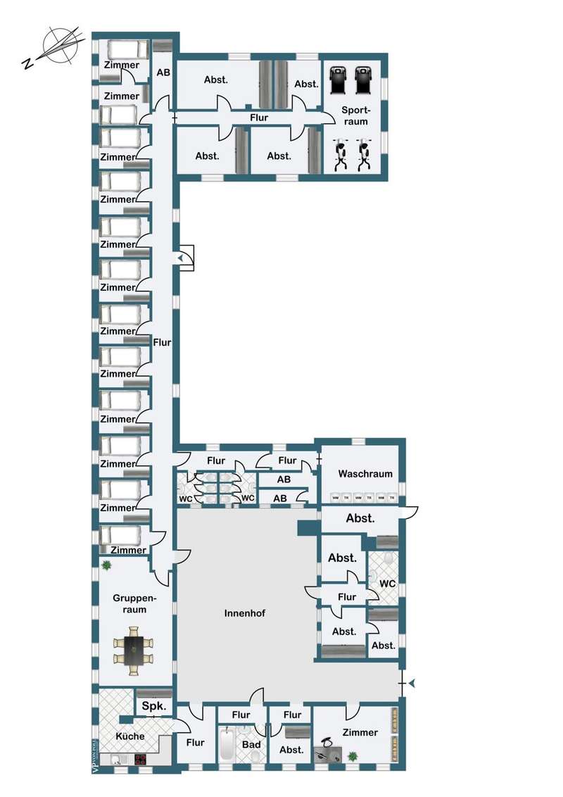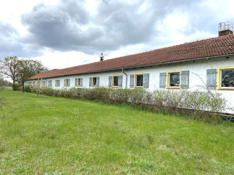 A commercial property located directly on the Oder-Damm in Wiesenau/Kunitz Loose with a total living space of approx. 915 m² on a plot of approx. 26,786 m² is for sale. The property, which was last modernized in 2022, is in a well-kept condition and has a large number of rooms. The main house has a total of 14 rooms, including 9 single rooms, toilets, laundry room, dining room and pantry. There is also a fitness room (approx. 48 m²), a TV room, a computer room, a lounge with its own bathroom and an office. There are also 4 further rooms, 2 storage rooms, a cellar and a boiler room. A 2-room apartment with bathroom and kitchen completes the offer. The property also has several outbuildings, including a workshop, a shed, 4 storage rooms and a bicycle cellar with a large shed roof for shelter and storage. During the modernization in 2022, the top floor ceiling was insulated and some of the windows were replaced (triple glazing). The property offers a pleasant living and working environment. The location is both quiet and conveniently located. Shopping facilities, schools and public transport are in the immediate vicinity and ensure easy accessibility. Thanks to the spacious plot, the property offers a wide range of possible uses and plenty of scope for individual leisure activities. The property was previously used by an association as a children's home and will become vacant on October 1, 2024. The net rent is 28,800 euros per year. Are you interested? Then we look forward to hearing from you!