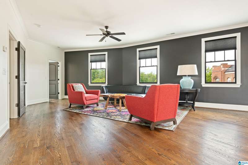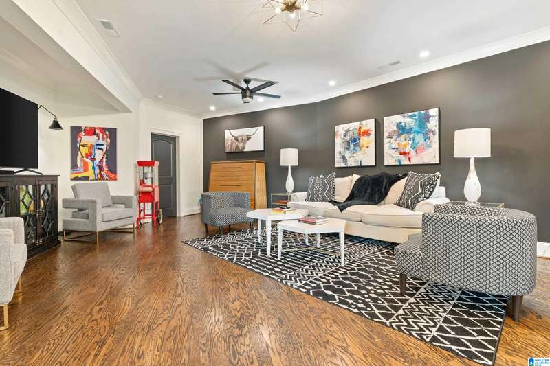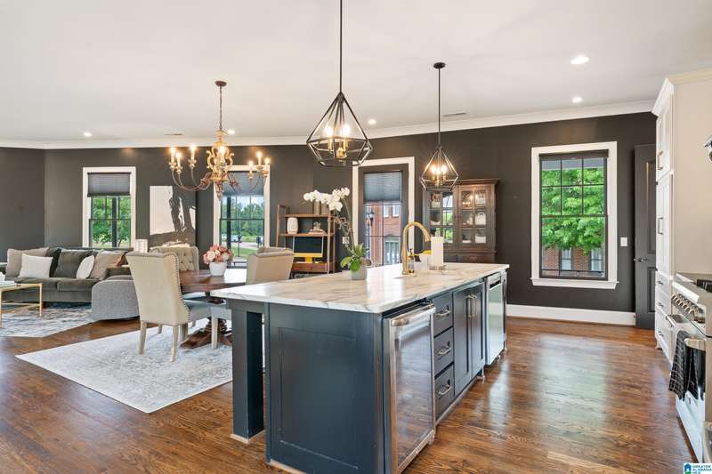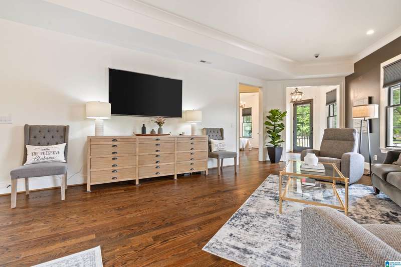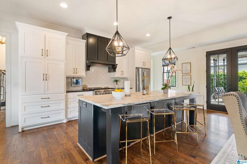 Welcome to your new home! New Orleans-inspired custom home in one of Hoover's most coveted neighborhoods—The Preserve. Approx. 6,000 sq ft, 6 beds & 6 baths, thoughtfully designed to fit the lot and blend a lofty, timeless vibe with modern comfort. The 100-ft wraparound porch is perfect for relaxing or entertaining. Inside you'll find hardwood floors, classic black and white tile, open living spaces, and a chef’s kitchen with oversized island, gas range, walk-in pantry & custom cabinetry. Main-level primary suite with walk-in closet and ensuite bath. Dedicated home office (not a garage conversion) can be easily transformed if desired. Upstairs bedrooms each have private baths, plus a finished third floor with living area, bedroom, bath, and laundry—ideal for guests, rental income, or flexible use. The Preserve has it all—parks, pool, sidewalks, restaurants, a pharmacy & top-rated schools!