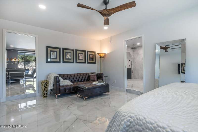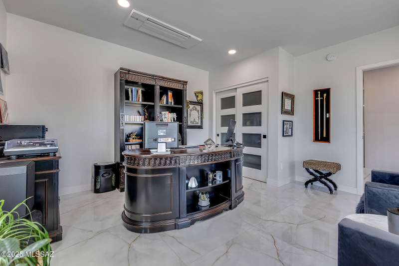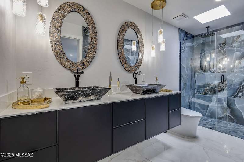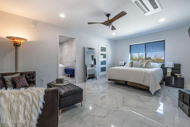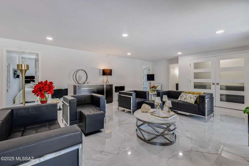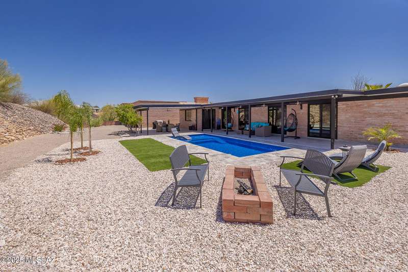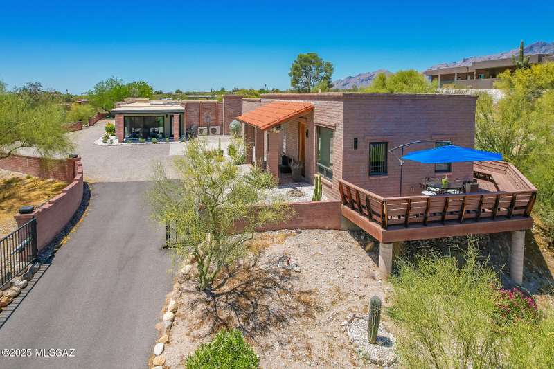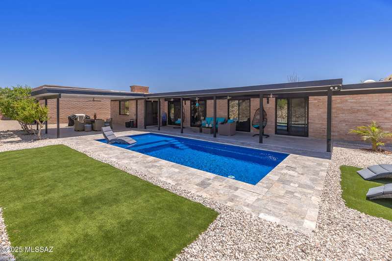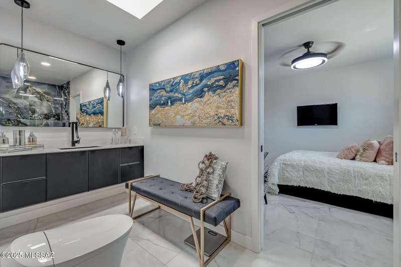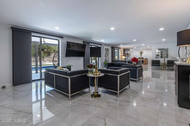 Welcome to your dream home (2,765 main house & 891 sq ft detached casita) in the coveted Catalina Foothills, an exquisitely remodeled masterpiece nestled on a private gated 1.2-acre elevated lot with mountain and city lights views. The main residence boasts 2,753 sq ft of luxurious living space, featuring 3 bedrooms, 3 beautifully appointed bathrooms and a versatile office/den with a private patio that can easily serve as an additional bedroom, home office, or creative studio. Enjoy the elegance of Brazilian porcelain tile throughout, Sile Stone countertops and all new energy-efficient windows and doors that flood the home with natural light. The unbelievable kitchen is a chef's paradise, outfitted with state-of-the-art appliances and seamlessly flows into generous great room with stylish