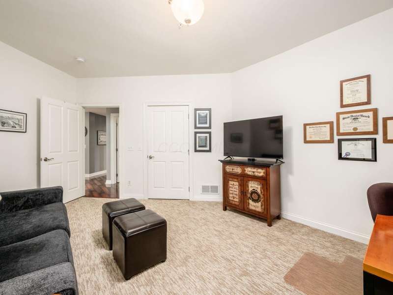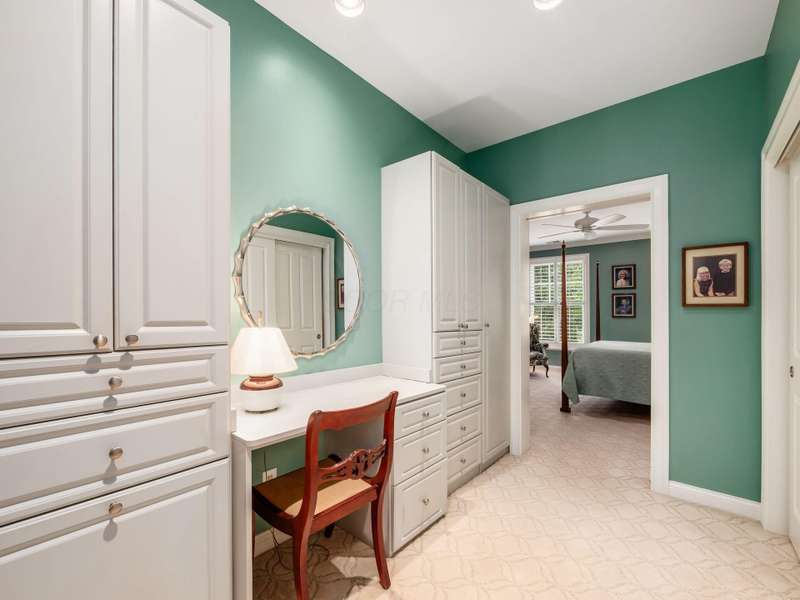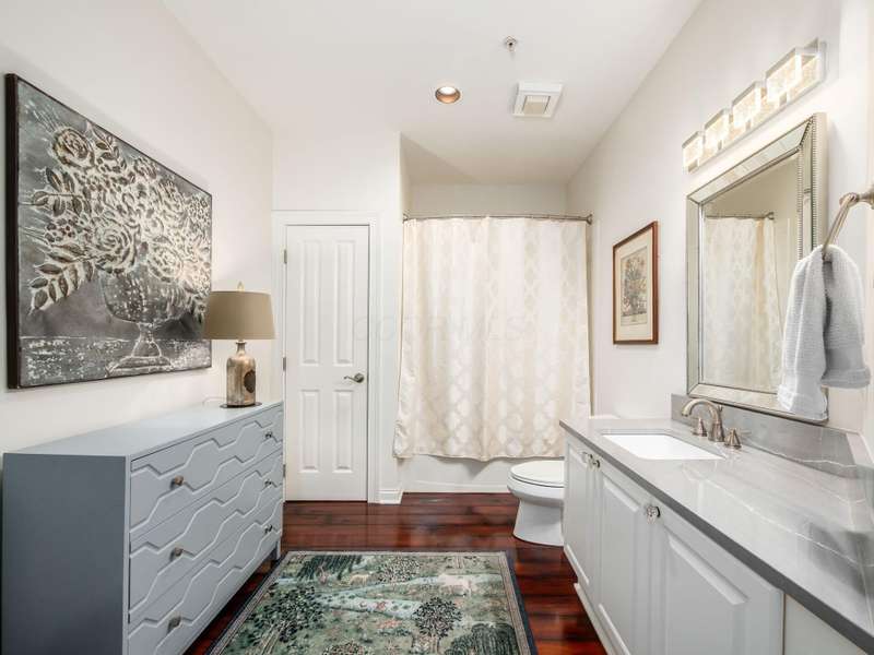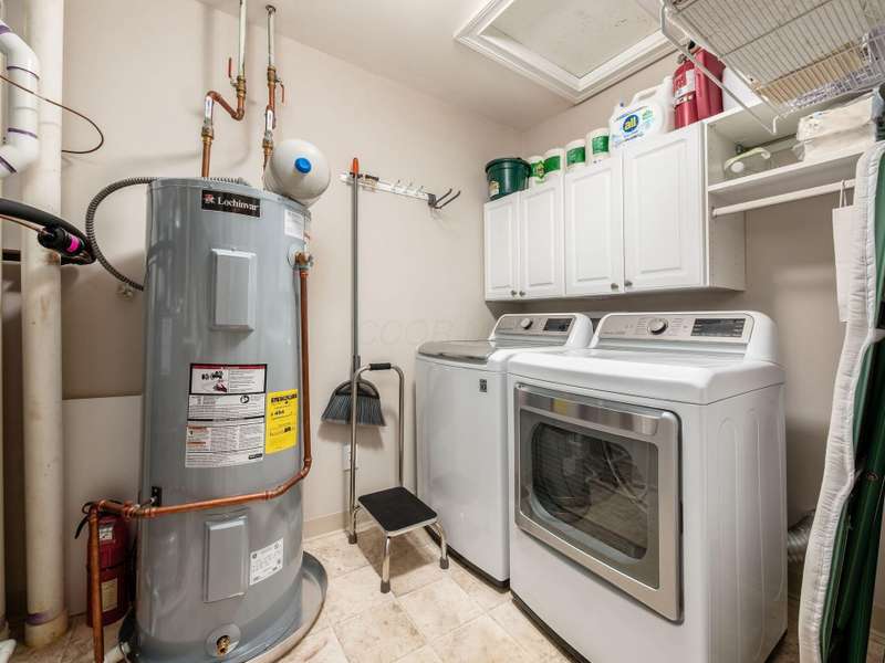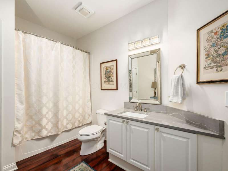 Nestled along the tranquil banks of the Olentangy River, this beautifully appointed Mount Air condo offers the perfect blend of nature, comfort, and style. Bathed in natural light and framed by peaceful wooded views, the home welcomes you with gleaming wood floors that flow through the central living area. The expansive great room is a showstopper, featuring an elegant arched ceiling, a walls of windows, and a cozy fireplace that anchors the space with warmth and charm. The open-concept design creates a seamless flow, ideal for both relaxing and entertaining. The stylish and functional kitchen boasts abundant cabinetry for all your storage needs, complemented by charming glass knobs that add a touch of character. A generous counter with seating invites casual dining and conversation. Recent upgrades include a new refrigerator (2025), ensuring modern convenience. Two sizable bedrooms offer excellent storage, while the luxe primary suite is a true retreat. Enjoy a large walk-through wardrobe complete with built-in drawers, a desk nook, and ample closet space. The ensuite bath features double sinks and a luxurious walk-in shower for a spa-like experience. Step out onto the screened balcony to take in the serene wooded views and gentle river breeze—perfect for morning coffee or evening unwinding. This home also includes two garage parking spaces and a dedicated storage locker for added convenience. Enjoy the benefits of a new water heater and HVAC system installed in 2023, along with a newer LG washer and dryer to round out the list of thoughtful upgrades. With its peaceful setting, modern amenities, and single-story ease, this Mount Air condo is a rare gem that offers both tranquility and practicality in one elegant package.