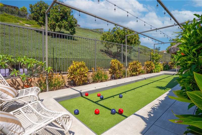 Welcome to your dream home in Esencia! This impeccably designed Plan 3 residence is in the highly desirable Brioso enclave in the award-winning community of Rancho Mission Viejo. Offering 4 bedrooms, 4.5 bathrooms, and a flexible loft space, the home is thoughtfully crafted to suit a variety of lifestyles whether you're entertaining, relaxing, or expanding. The primary suite is located on the main floor and serves as a luxurious retreat, featuring a spacious walk-in closet and a spa-inspired bathroom with a soaking tub and walk-in shower. As you step into the expansive great room, you're immediately struck by the natural light and seamless flow. The gourmet kitchen takes center stage with its oversized island, upgraded Wolf appliances, and sleek finishes, while a sparkling and filtered water system at the sink adds a touch of everyday luxury. The wide sliding glass doors open effortlessly to a private backyard retreat, perfect for hosting unforgettable gatherings or enjoying peaceful evenings outdoors. The upstairs loft offers flexibility and can easily be transformed into a fifth bedroom, home office, or media room to suit your evolving needs. Another en-suite bedroom is located downstairs, ideal for guests or multi-generational living. The home also features an owned solar system with a car charger, custom built-in cabinetry in the garage with epoxy flooring, and a backyard designed for entertaining complete with a bocce ball court, a custom Tiki Bar with built-in BBQ and fridge, and plenty of space for hosting. Every inch of this home reflects thoughtful design, upscale finishes, and a lifestyle that embraces both comfort and sophistication. This is more than just a home, it's your opportunity to live beautifully in Rancho Mission Viejo. Immerse yourself in the exceptional amenities of Rancho Mission Viejo, including the vibrant Ranch Camp, the state-of-the-art Ranch Cove community pool and gym, and countless recreational opportunities that define the unmatched lifestyle of this community. Exclusive to Rancho Mission Viejo residents are all amenities in the Villages of Sendero, Esencia, Rienda, and future Villages. There are community amenities for all from breath-taking resort-style pools and spas, Esencia school K-8, community farms, fitness centers, guest house, putting green, bocce ball courts, tennis and pickle ball courts, playgrounds, coffee shop, fire pits, an arcade and so much more!