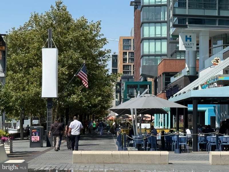 Welcome to this stunning 3-level end-unit townhome. The location is the envy of the neighborhood -just steps from The Southwest Waterfront and the iconic Wharf. This vibrant neighborhood offers an unbeatable blend of, convenience, shopping, dining and entertainment on the water. This beautifully updated home features 2 spacious bedrooms, 2 full bathrooms, and a versatile lower-level flex space-ideal as a third bedroom, home office, or cozy family room. The updated kitchen and top-floor bathroom add modern flair, while hardwood floors on two levels bring warmth and character throughout. One of the home's standout features is the charming, park-like private patio, an urban oasis, perfect for relaxing and entertaining. Enjoy being minutes from Nationals Park, Navy Yard, Audi Field, and major commuter routes like 295 and 395. 1 assigned parking space and everything you need at your fingertips, this is a lifestyle. Welcome Home!