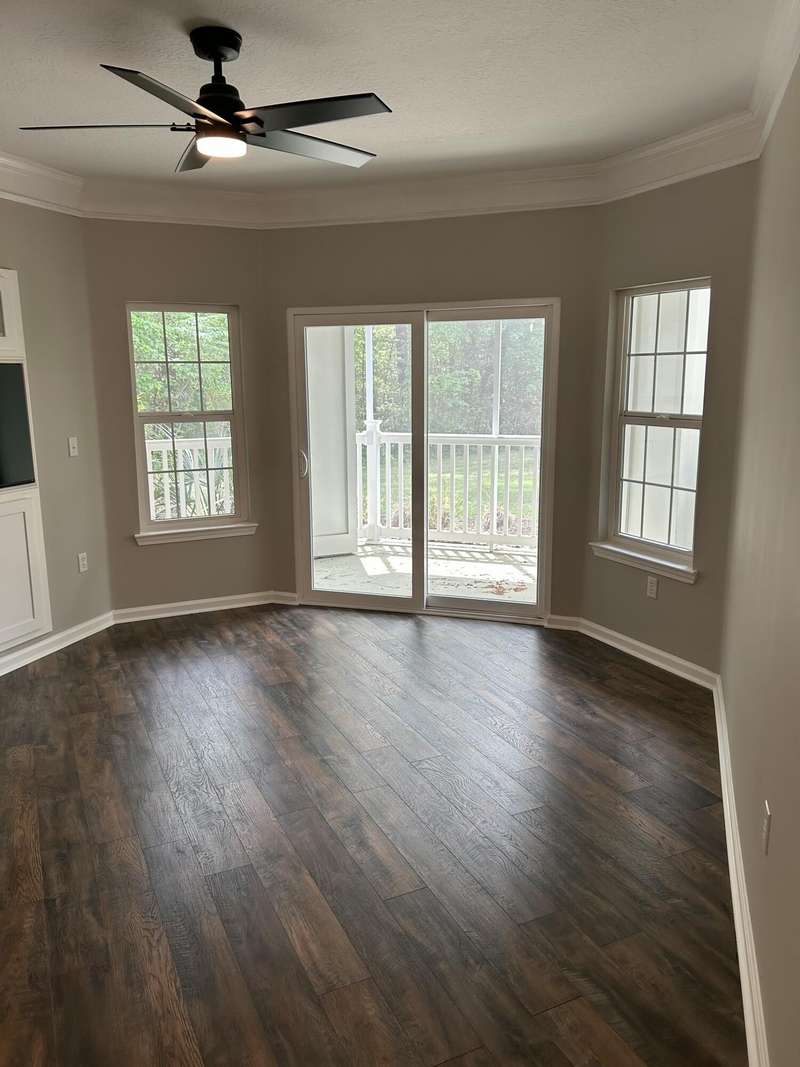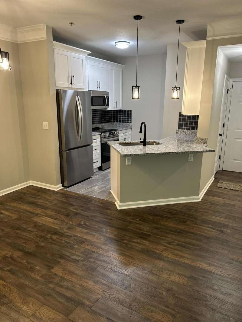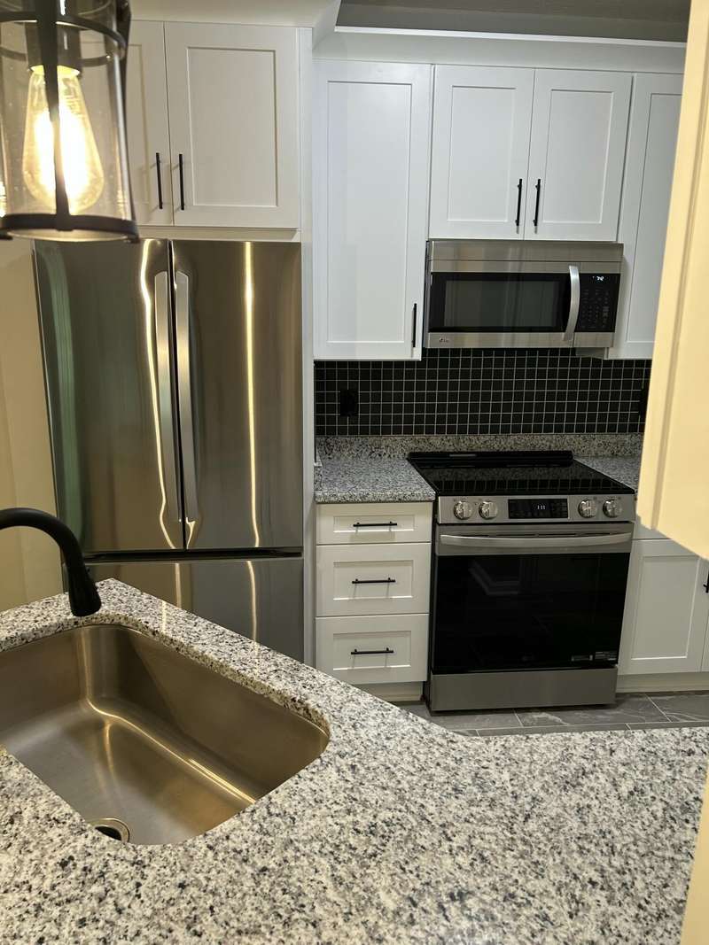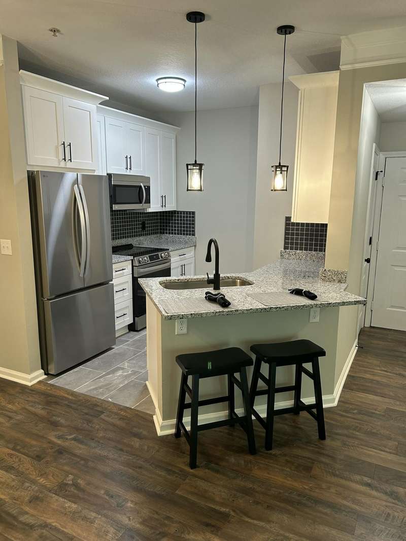 Completely renovated ground floor condo with garage! This beautifully updated two bedroom and two bath unit has been remodeled to custom level standards. Everything from the countertops, flooring and bathroom are brand new. New HVAC, all new kitchen appliances, new cabinetry plus pull out pantry. Includes new shower in guest bath, new lighting and hardware throughout, new flooring and tile and redesigned kitchen with counter-depth refrigerator. Situated in the quiet area of the Madison community, this unit comes complete with wooded views from its private screened-in balcony. The open floor plan is designed with both comfort and functionality in mind. The spacious family room flows seamlessly into the separate dining area, making it ideal for entertaining.The kitchen features modern appliances, including electric range, dishwasher, and microwave, as well as new counter space and cabinetry. The primary bedroom includes a large custom walk-in closet, ceiling fan and full bathroom featuring a luxurious shower. A second bedroom, conveniently located on the opposite side of the unit, offers privacy and is perfect for guests, a home office, or additional living space complete with a full bathroom. This condo includes a deeded one car garage, a highly sought after feature offering secure parking and extra storage space. The gated community of Madison at Park West has a swimming pool, fitness center, clubhouse, lighted tennis courts, gated dog play area, picnic area with gazebos and grills, multiple ponds and a car wash area. Madison is also near award winning schools and directly across the street from the large Park West Recreational Complex.