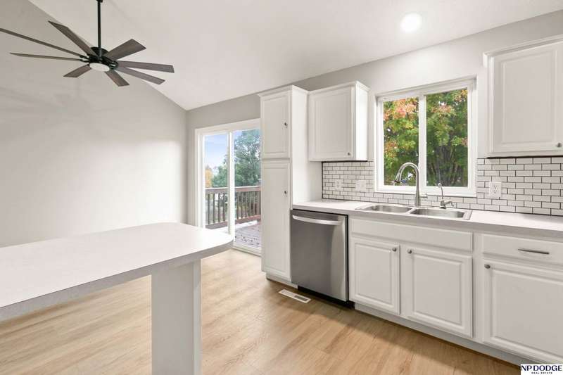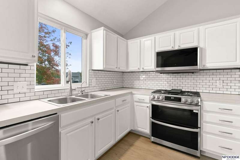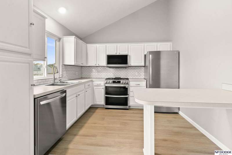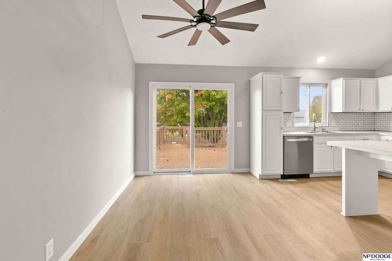 Absolutely Gorgeous Multilevel Home! Open & Airy Floorplan! Completely Remodeled! Walk into spacious entry way w/ new LVP. Beautiful living room w/ large windows, new LVP & Cathedral Ceilings flows perfectly into kitchen. Amazing Kitchen w/new LVP, breakfast bar, white cabinets, gas range w/ double oven, SS appl, eat in dining area w/ vaulted ceilings that leads to expansive deck. Primary br has new carpet, lg walk in closet & 3/4 bath w/ tiled flr. Sizable secondary brs w/ new carpets share full bath w/ tiled flrs. Cozy family room w/ gas fp & newly tiled flrs. Beautiful flat bkyd w/ fabulous deck, firepit, full wood privacy fence. Lg 2 car garage w/ NEW driveway & extra parking pad. NEW roof, gutters & Air Conditioning - 2024. Brand new LVP & carpet. NEW interior & exterior paint throughout. Water Softner. Radon Mitigation. Elkhorn Schools. Great Location. Perfect for 1st time buyers. Truly a Must SEE!