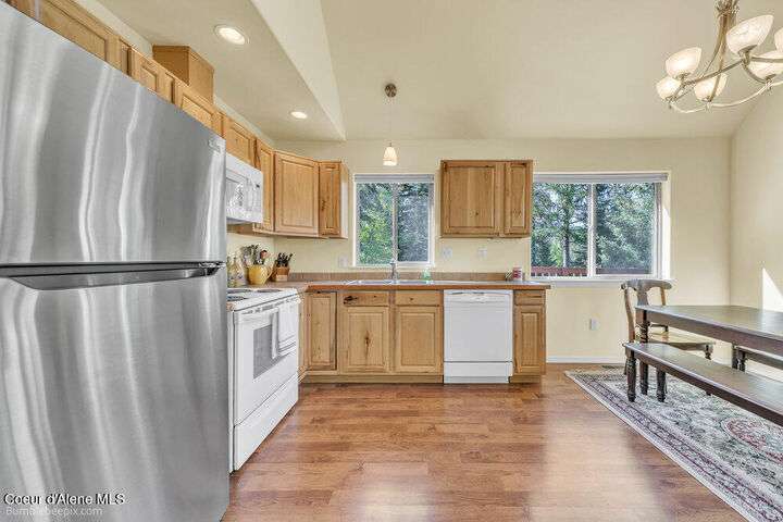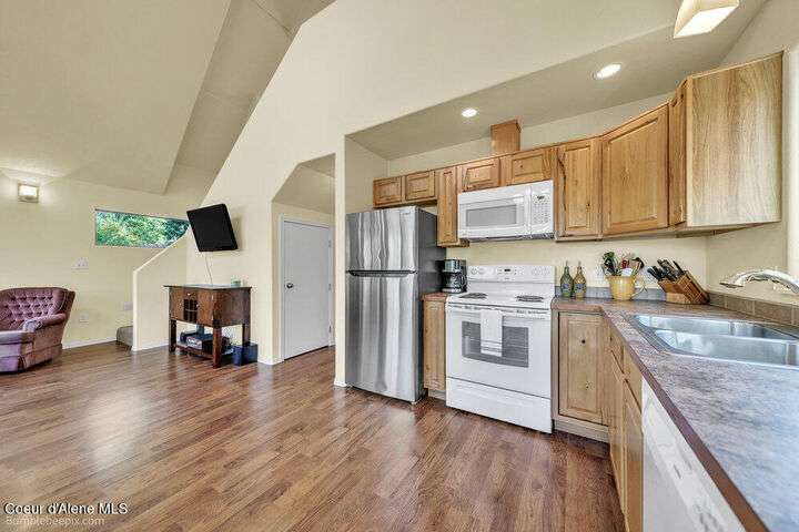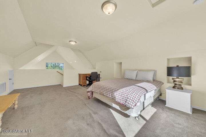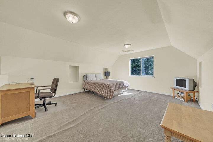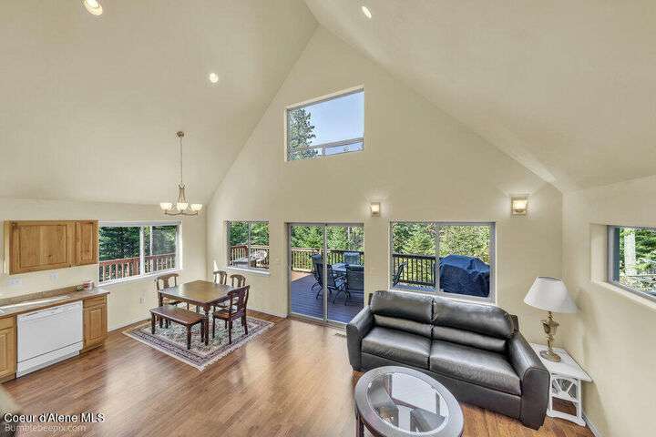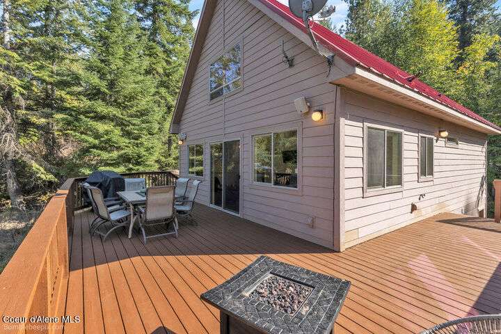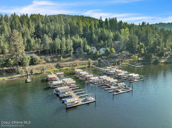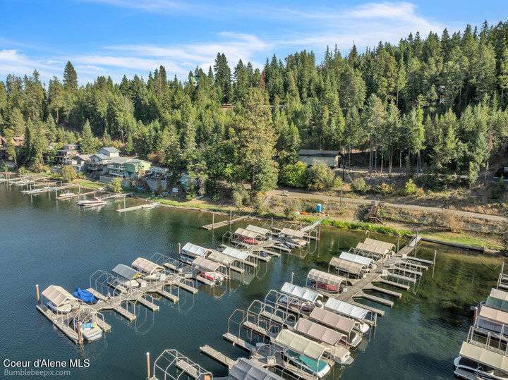 Experience true lake life in North Idaho! This fully furnished, charming home includes a boat slip and access to a private community beach. Inside, you'll find 2 bedrooms, 1 bathroom, and a spacious loft with vaulted ceilings and expansive windows that fill the home with natural light. The open kitchen, living, and dining areas create a warm, inviting atmosphere that's perfect for entertaining. Step out from the living room onto the wraparound deck and enjoy seamless indoor-outdoor living surrounded by privacy and tranquility. The 432 sq. ft. basement offers a separate entrance, full bathroom, and ample storage space. Sitting on a large corner lot, you'll also find RV parking with power, water, sewer hookups, with plenty of room to build your dream shop. Maintained roads make this property ideal for year-round living or the perfect summer retreat on Lake Coeur d'Alene. Walking distance to Marina. 20 min to CDA Casino Resort & Golf.