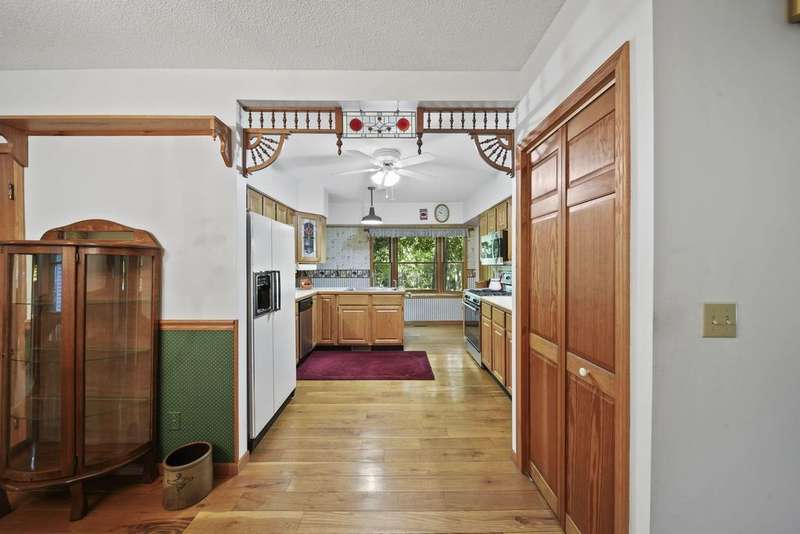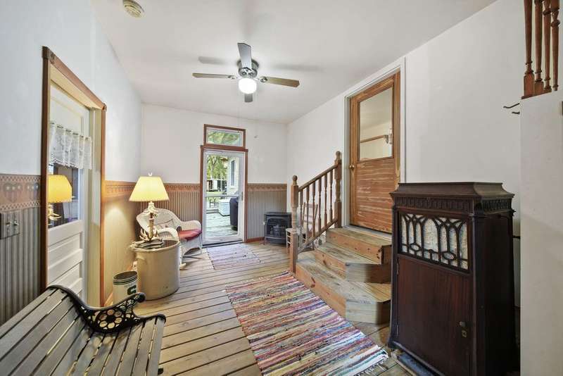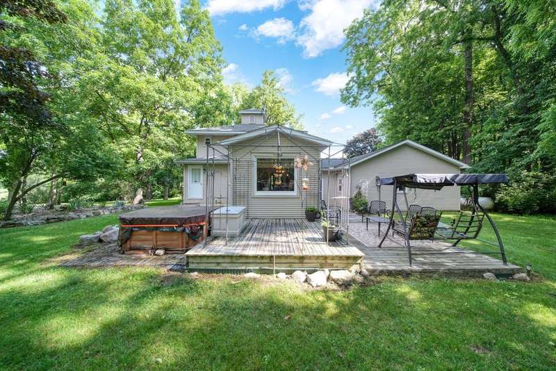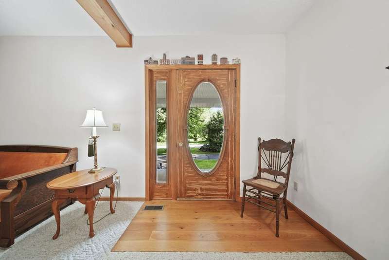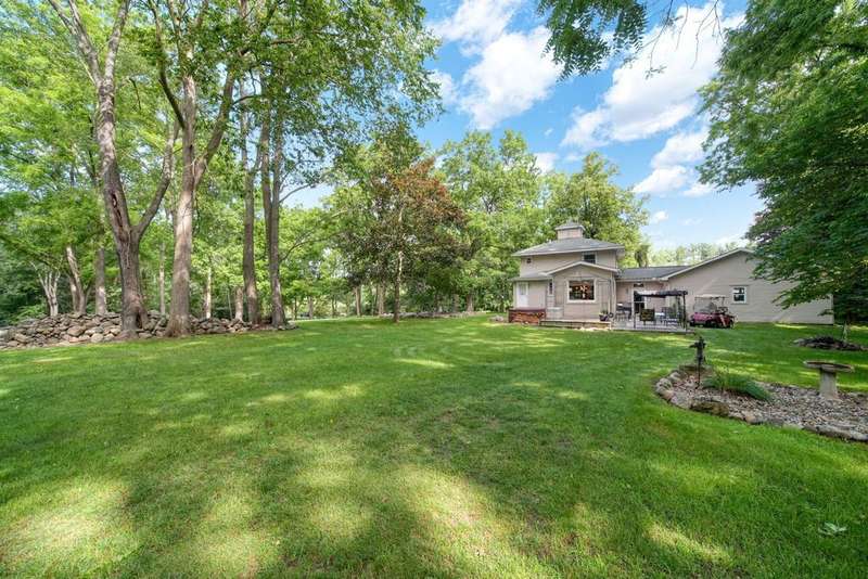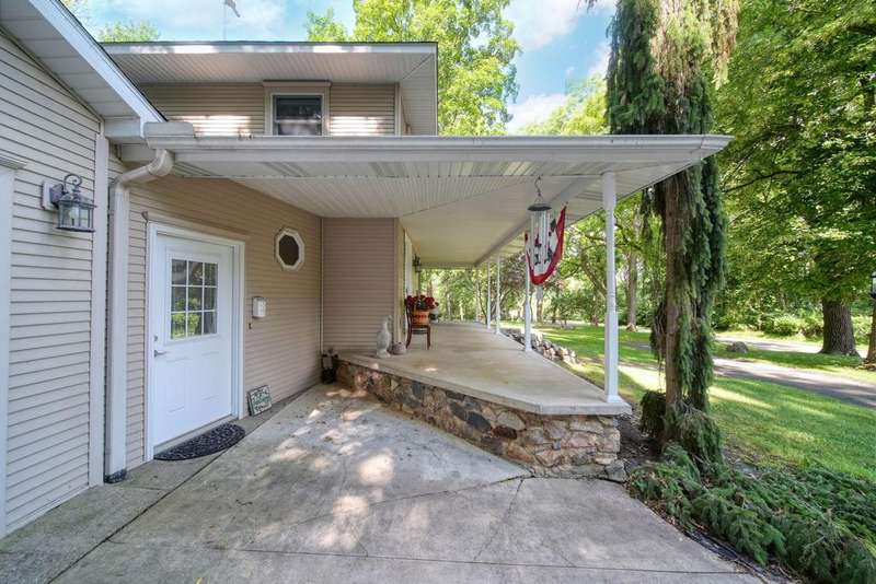 This long admired timeless beauty has been lovingly renovated. Traditional warmth & charm blends graciously with modern comfort & quality. 2 or 3 bedrooms; 2 full baths; an awesome 3+ acre park like setting nestled among mature walnut trees in Western School District. Wonderful floorplan features the spacious living room overlooking the covered front porch. The kitchen offers solid wood cabinetry, gleaming tile counters, garden window & opens to the dining room large enough for all the gatherings. Sitting room (main floor BR) has views of the tree lined acreage. The 4-season room/enclosed breezeway is the perfect spot to cozy up in front of the gas stove. Perfectly placed full bath plus laundry room completes the main level. Two ample bedrooms, full bath with built-ins, and landing are upstairs. The basement has high ceilings, great work space & storage in addition to the utilities. Attached 2.5 car garage. The outbuilding offers year-round use with heat, electric, water and ? bath; making it an ideal opportunity for home based hobbies or the he/she shed. An additional metal storage shed remains with sale. Attention to details & pride of ownership throughout - original interior doors; Andersen windows; and stone gathered from home and property surround the front porch. Sellers are providing a home warranty to buyer at close. Seller requests no buyer letters. See agent only remarks.