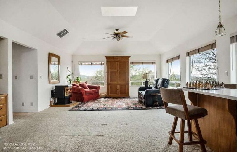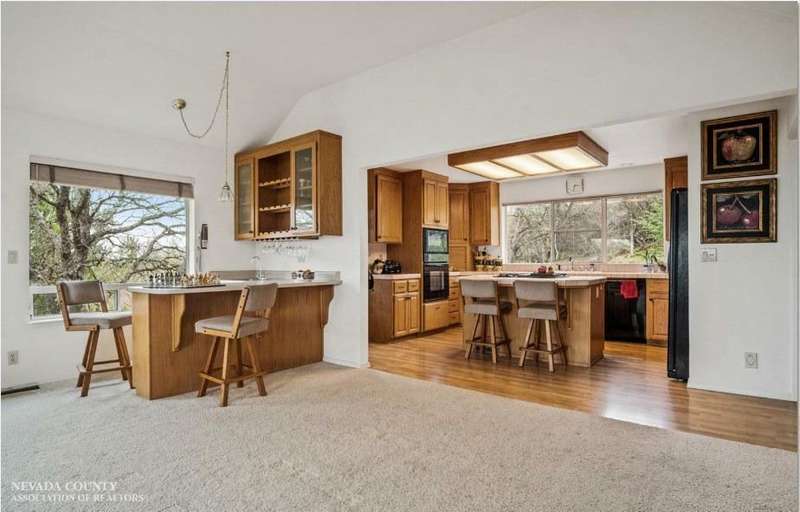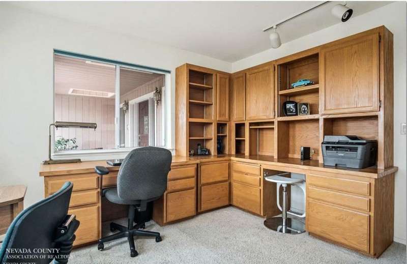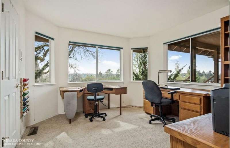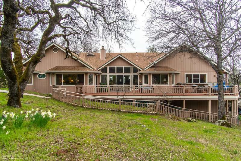 Amazing views, expansive and inspiring! This beautiful home offers vaulted ceilings, large windows, cozy spaces within each room, a pellet stove in the sitting room and a fireplace in the living room with views of the green belt. Boasting Walnut cabinetry and custom touches throughout, book cases, built-in office space, kitchen cabinets, wet-bar, and bathroom vanities. Located in the private, gated community of Lake Wildwood with great amenities.