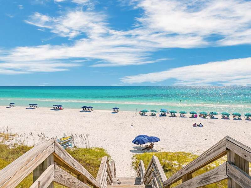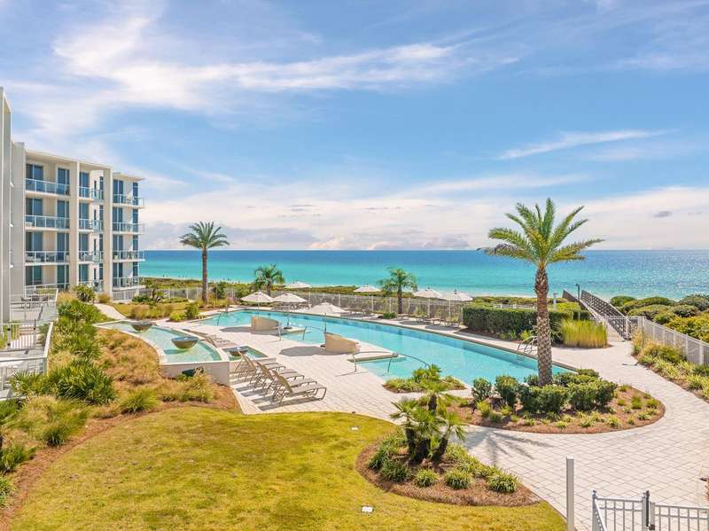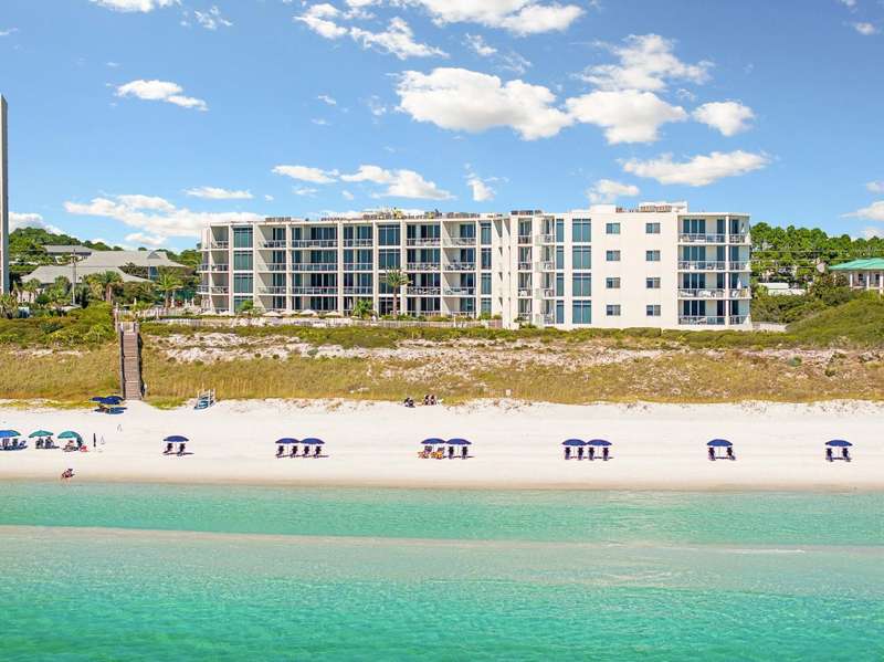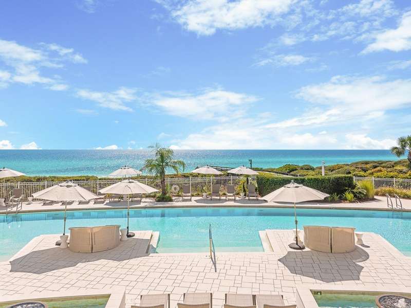 A rare opportunity for resort-style Gulf-front living with ground-level convenience at Thirty One on 30A. Residence 105 provides direct access to the pool deck & beach plus an extended balcony that doubles the outdoor living space? a feature unique to this floor. This property offers secure dedicated garage parking & storage only steps from the private elevator leading into the home. Inside, you'll find custom window treatments, added barn doors at the office, built-out closets including shelves in the laundry room, Sonos-integrated TVs, glass shelving at the wet bar, a zero-entry shower, & designer lighting throughout. Also, note the kitchen features SubZero & Wolf appliances surrounded by a full wall tile backsplash. Enjoy added peace of mind with a Halo water detection system, on-site beach chair service, & a full-time building manager. Thirty One provides 335' of beach frontage shared by 27 residences, and other amenities include an enlarged pool, outdoor kitchen & fireplace, fitness center & owners lounge. Offered unfurnished in Seagrove's premier non-rental Gulf-front community.