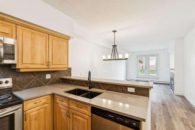 OPEN HOUSE - Sunday, Nov 16 from 100PM to 300PM. Discover a great blend of comfort, style, and convenience in this highly desirable SW location. Step into a home that offers a bright, open-concept layout, creating an inviting atmosphere from the moment you enter. With new paint, newer LVP flooring and pride of ownership discover how this charming 1 bedroom, 1 bathroom apartment can bring peace of mind and joy into your new lifestyle. Located in the sought-after Milestone building, you'll find everything you need just moments away. Start your mornings with coffee, meet friends for dinner at nearby restaurants, enjoy scenic walks with your favourite four legged friend, jump on your bike for a cruise to the river, or hop on the LRT, all just short walks from your door. You are greeted by well kept gardens and buildings suggesting earnest management of this condominium corporation, newly painted walls and newly carpeted hallways offer pride as you take the short walk to your main floor unit from the front door and elevator. You are greeted with a bright floor plan ready for your inspiration featuring large primary rooms. The living room is anchored with a warm gas fireplace, perfect for late fall nights as the leaves change colours outside of your garden doors. The primary bedroom is generous with a ceiling fan and large walk-in closet. Your clothes neatly aligned for you to take on your day ahead. The four piece bath offers additional storage and room for your necessities. Lastly, you have a large laundry area. This unit includes a titled parking stall and storage locker. A perfect blend of location, warmth and functionality. Book your tour today.