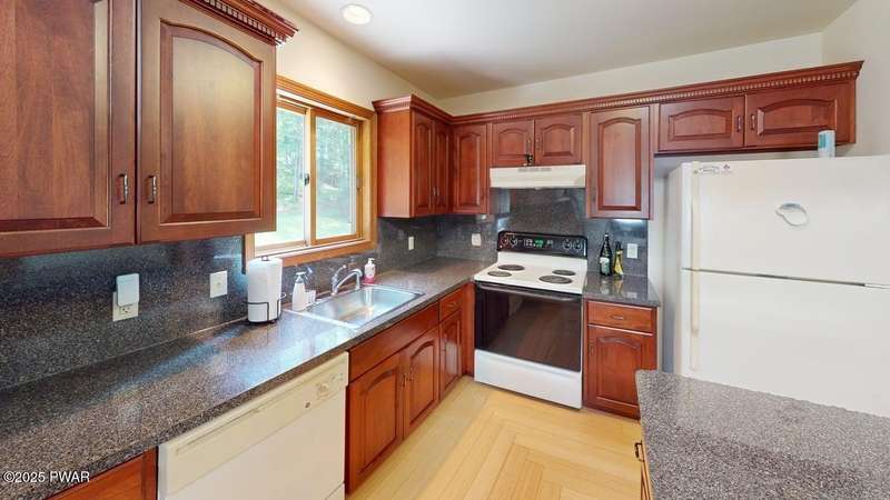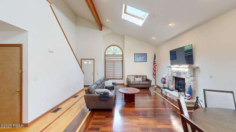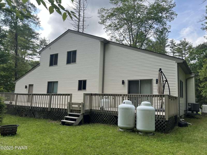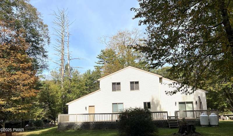 Great location in Pocono Mt Lake Estate community with a club house, beautiful outdoor pool, tennis courts in NE PA, in close proximity to Delaware State Forest, ideal for hiking in Bushkill Falls, Toms Creek, Delaware Water Gap and several other hiking trails, .This home offers you an open floor plan with cathedral ceilings, a living room with a stone fireplace, modern kitchen, 5 bedrooms, 3.5 bathrooms, a great private deck and a beautiful backyard to entertain your family and friends.